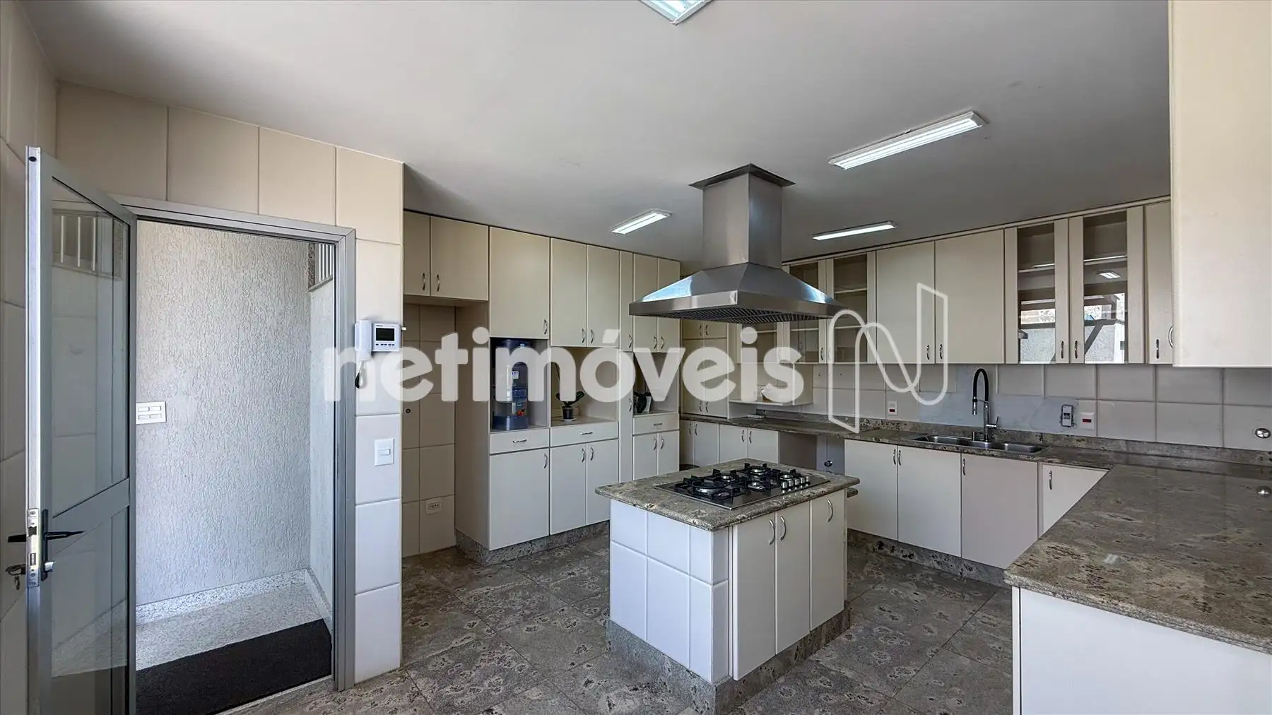 - Cozinha ampla c ilha c cooktop eletromec, pia c água quente/fria, armários