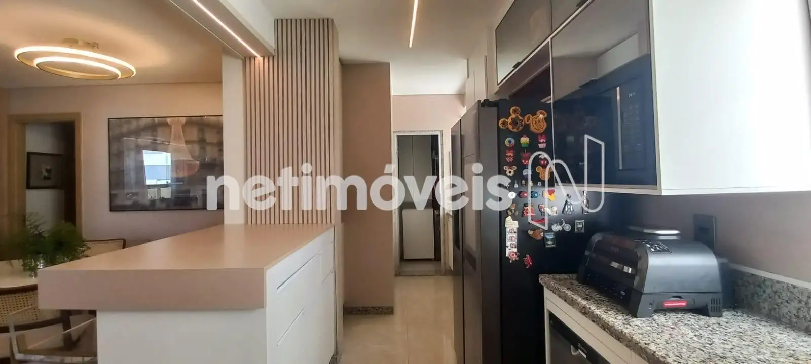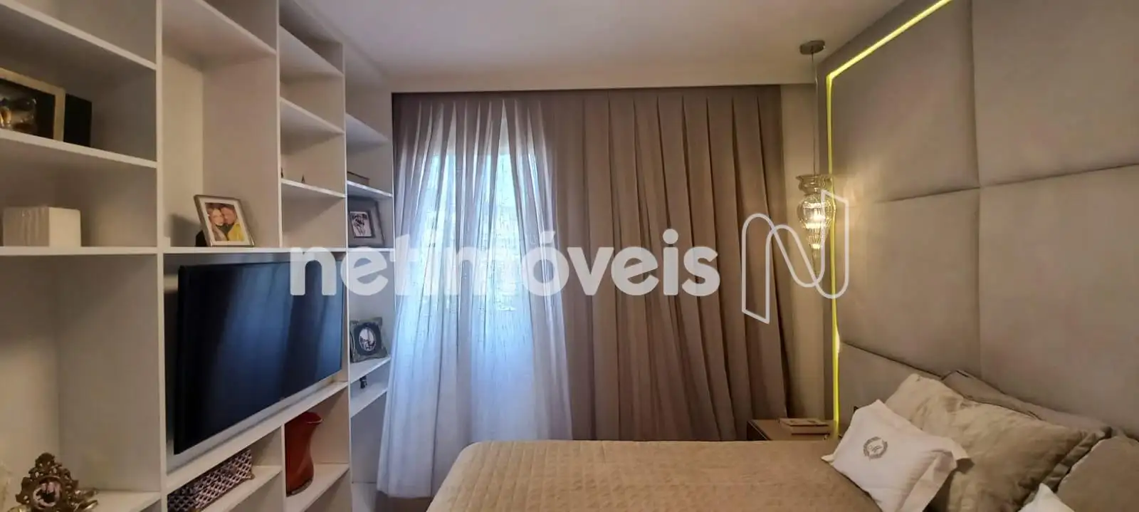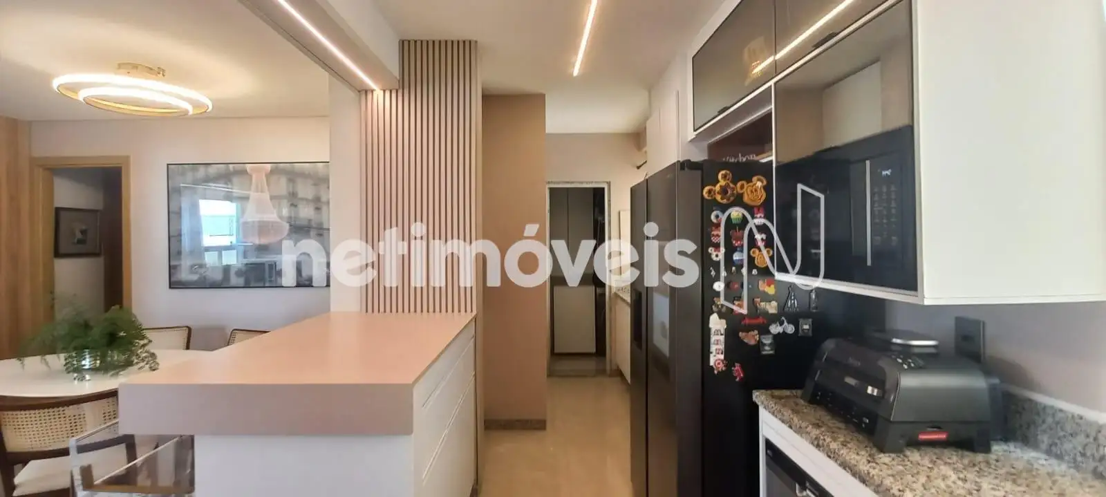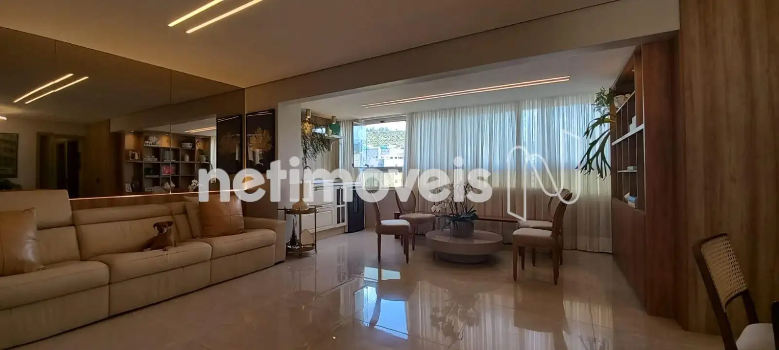 O apartamento apresenta uma sala de estar ampla, com integração harmoniosa à varanda, onde o espaço gourmet já está montado e pronto para uso. Os janelões valorizam a entrada de luz natural e proporcionam excelente ventilação cruzada. O projeto luminotécnico, aliado à cristaleira cuidadosamente planejada, cria um ambiente moderno, acolhedor e perfeito para receber.