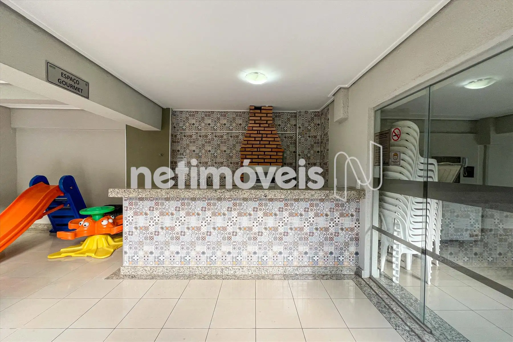 - O prédio oferece elevador social, portaria 24 horas, área gourmet, salão de festas, playground e piscina adulto e infantil, garantindo lazer completo no condomínio.
