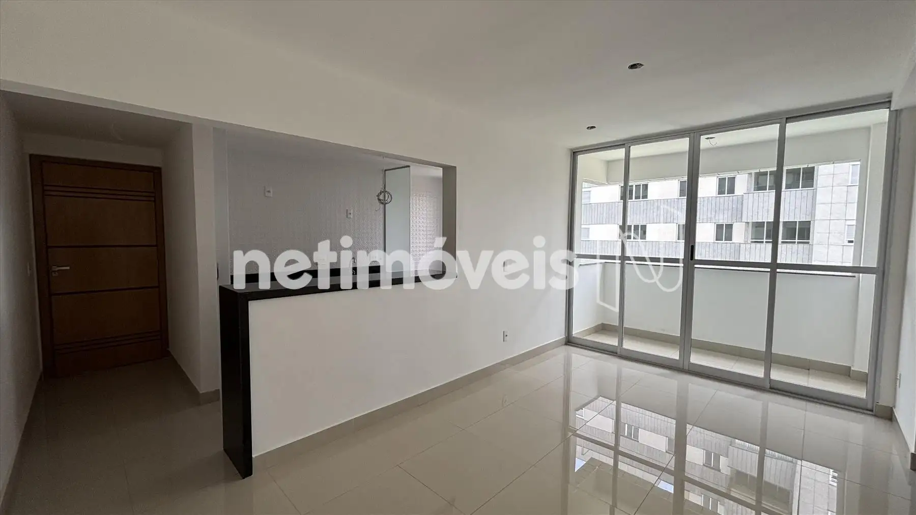 Apartamento: Sala ampla para 02 ambientes com varanda, cozinha americana integrada à área de serviço, 02 quartos sendo 01 suíte, banheiro social.