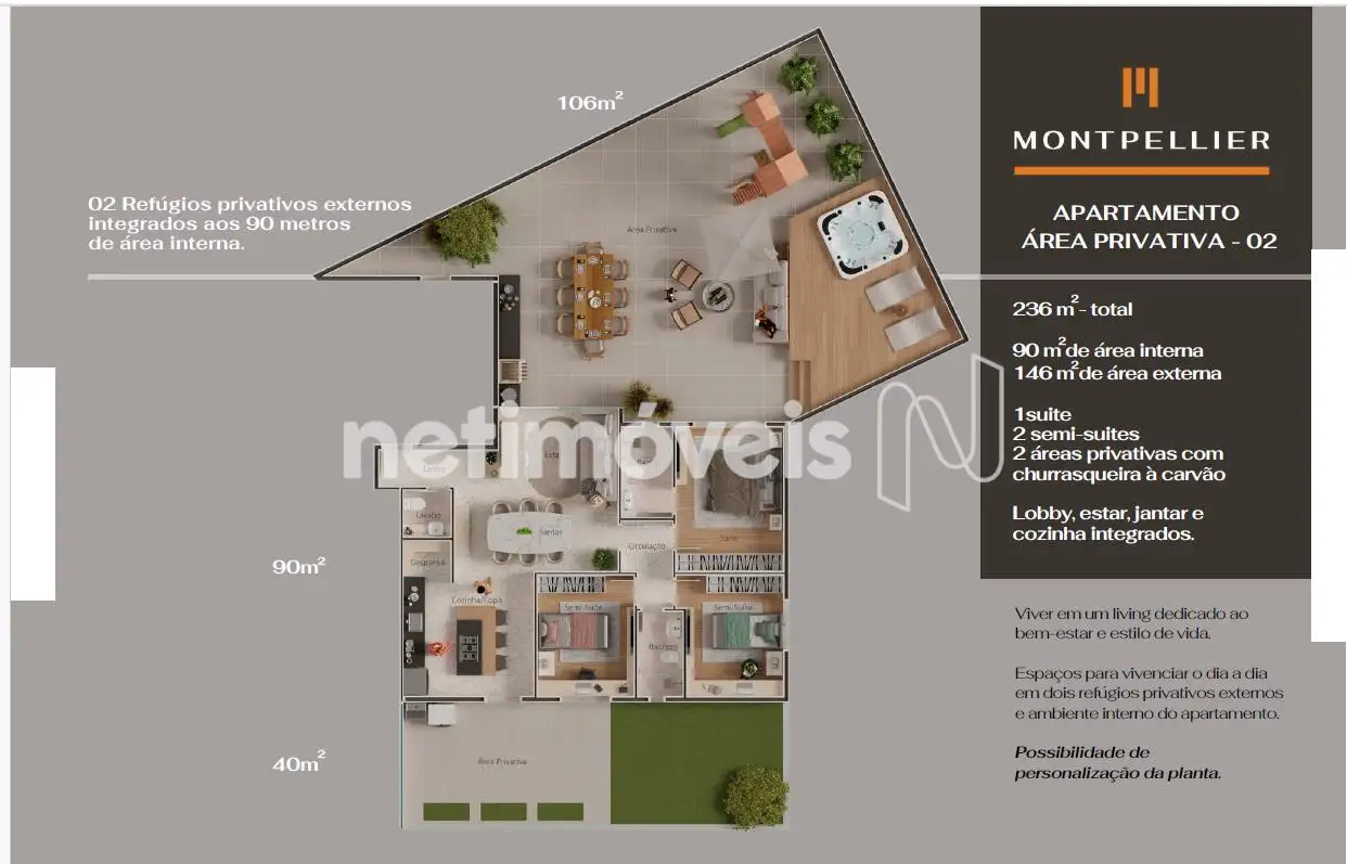 90 m2Privativos
