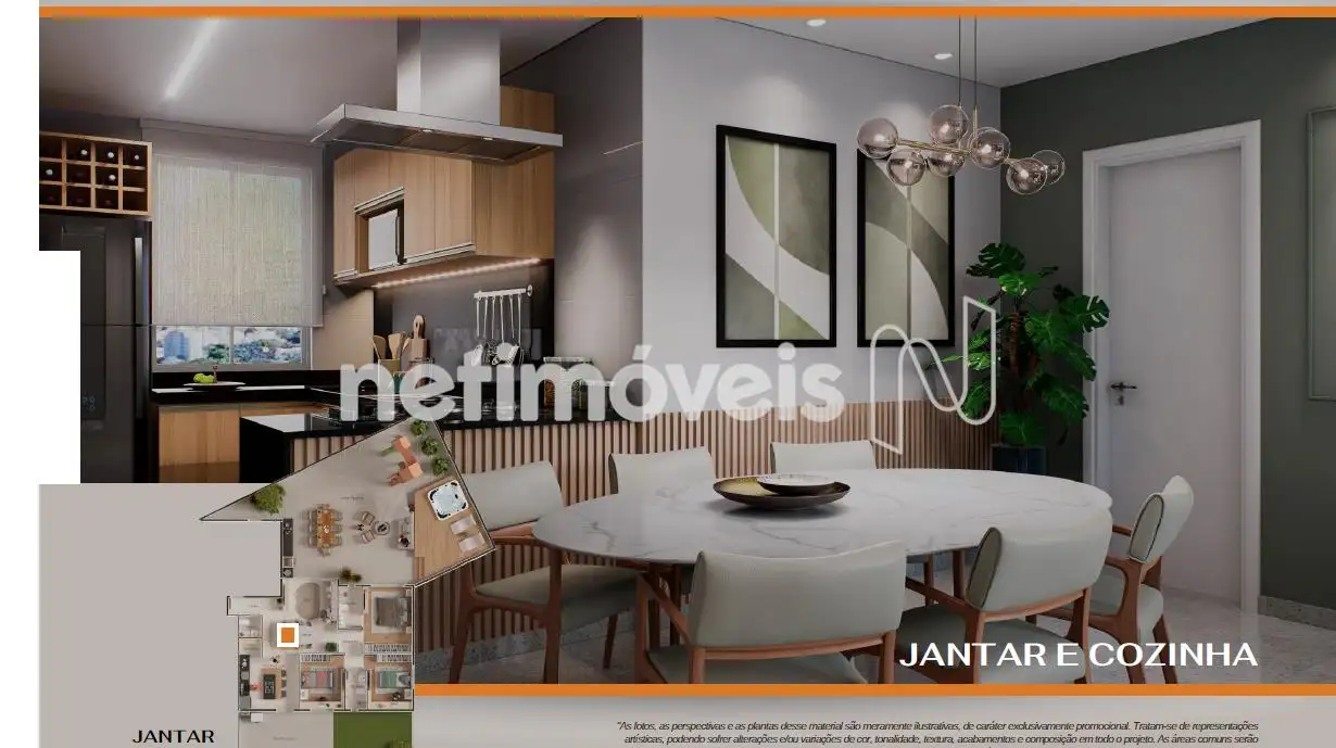 - Cozinha em ilha integrada a sala de jantar.