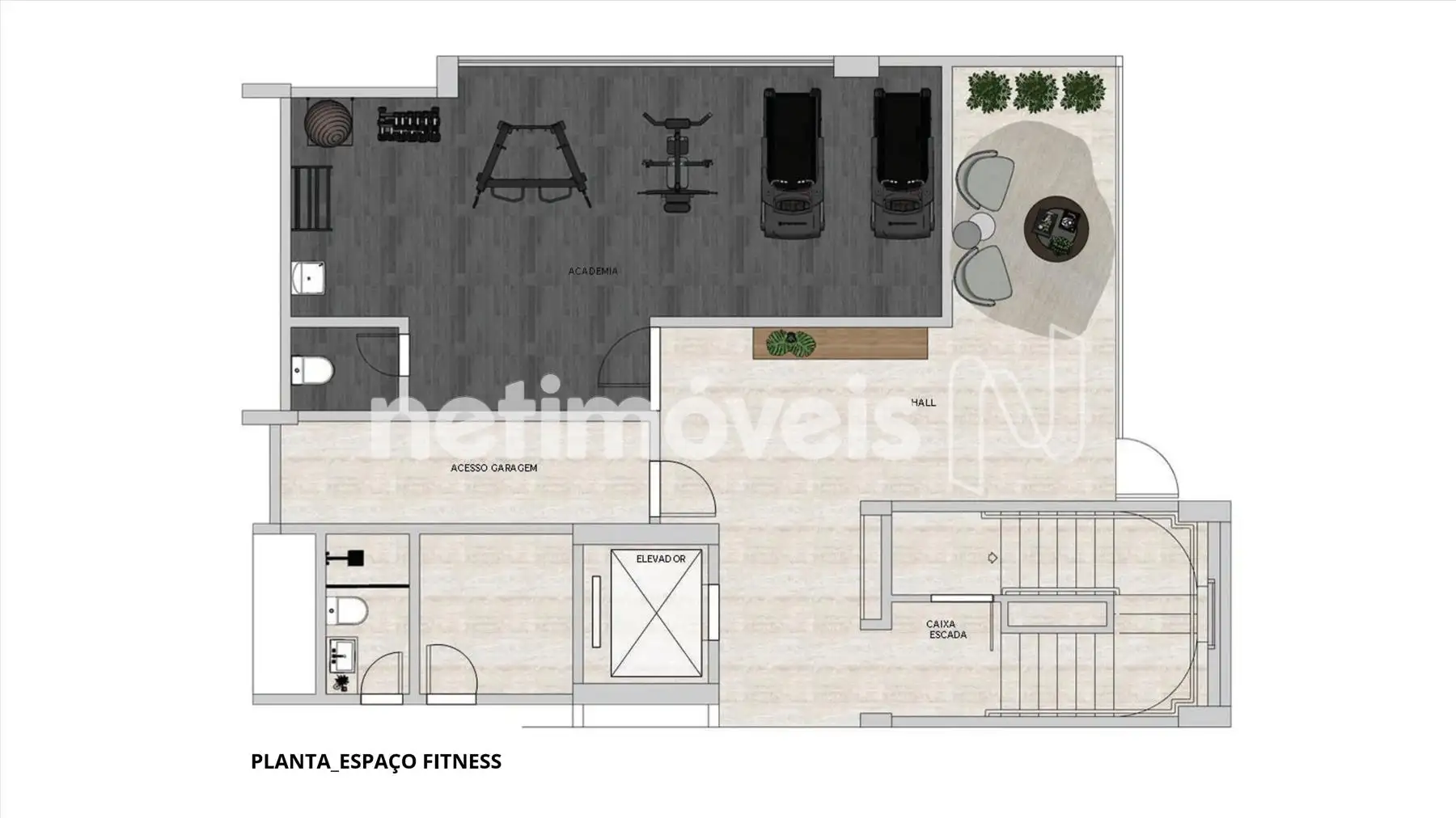 - Ambientes verdes e mobiliados para contemplação e relaxamento