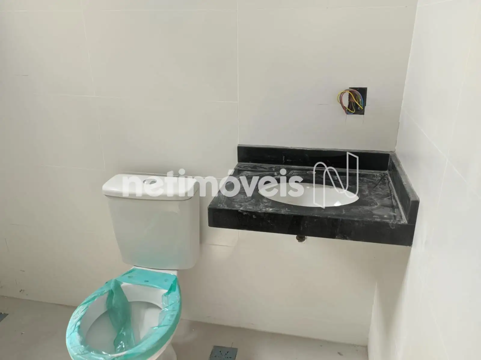Banho social com bancadas em granito e piso em porcelanato;