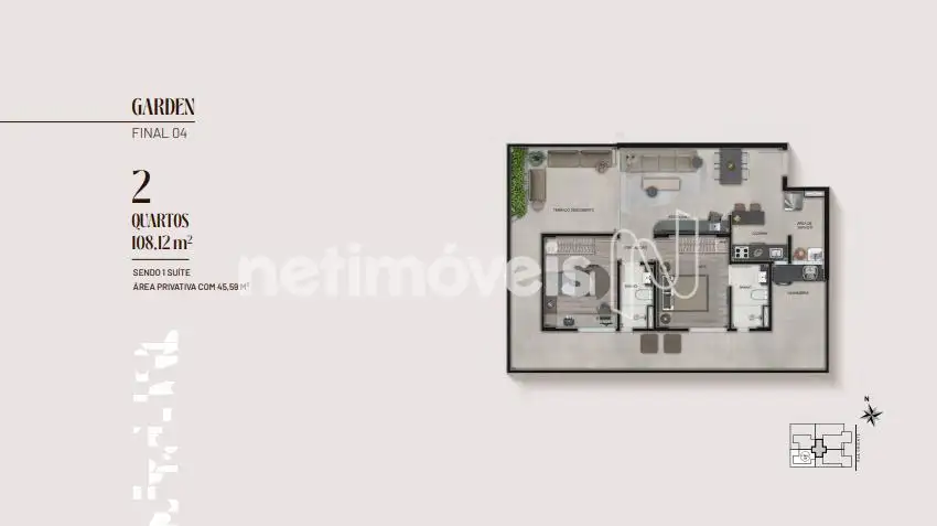 Apartamento tipo com três quartos e duas vagas à venda na Serra