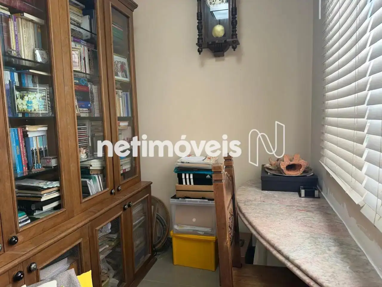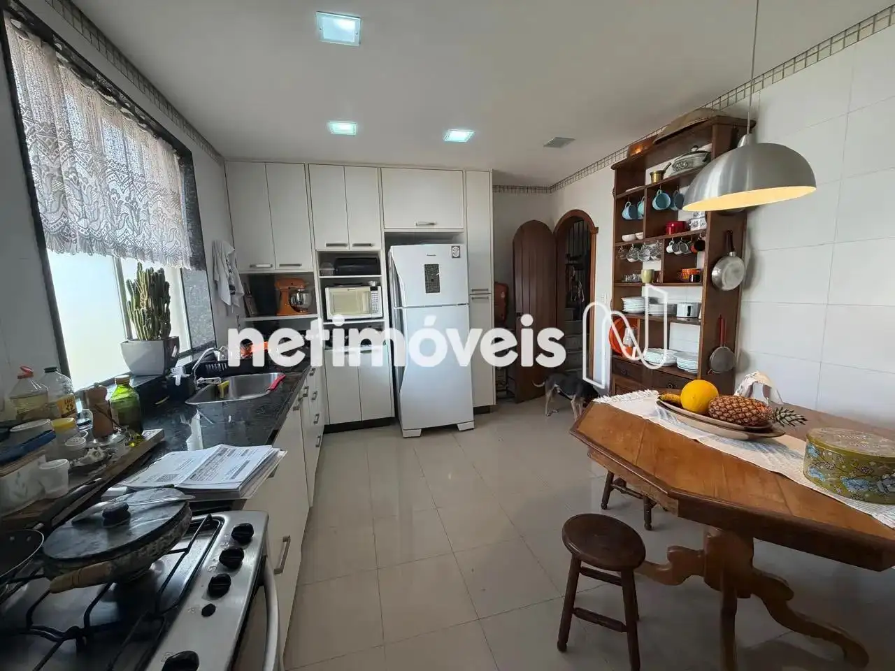 No primeiro nível, o imóvel conta com 2 salas amplas, lavabo, 4 quartos equipados com armários, sendo 1 suíte, e 2 banheiros, ambos reformados. A cozinha é moderna e equipada com armários, além de incluir uma área de serviço ampla, um escritório e um banheiro de serviço.