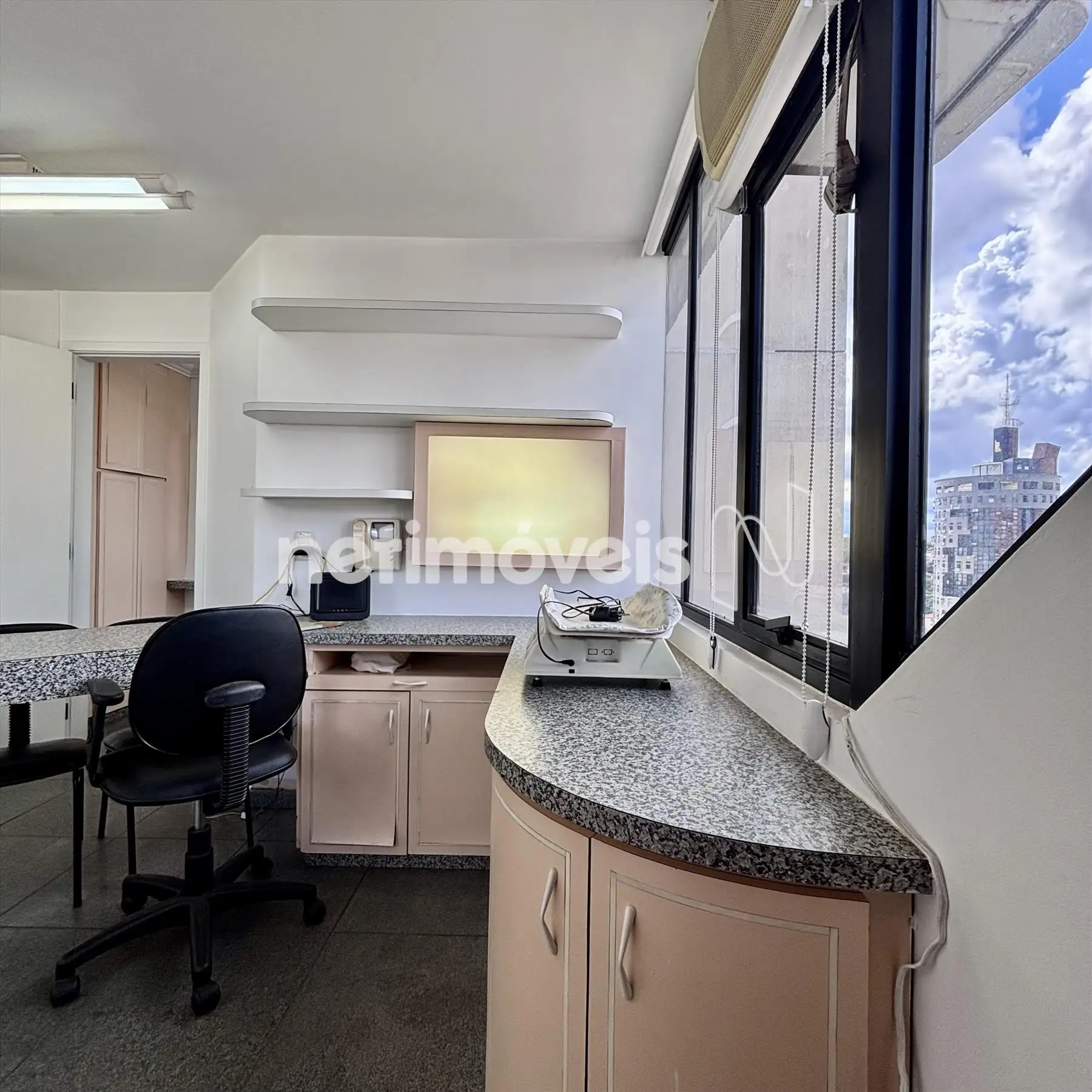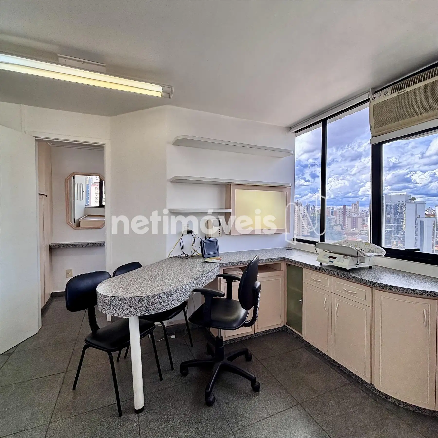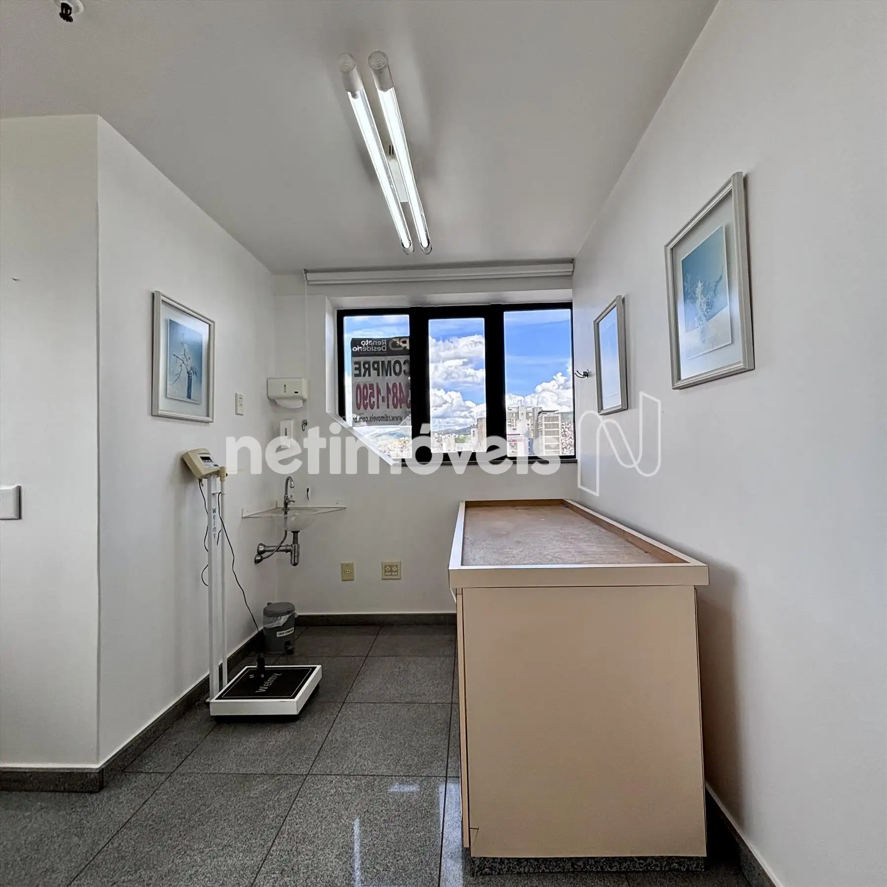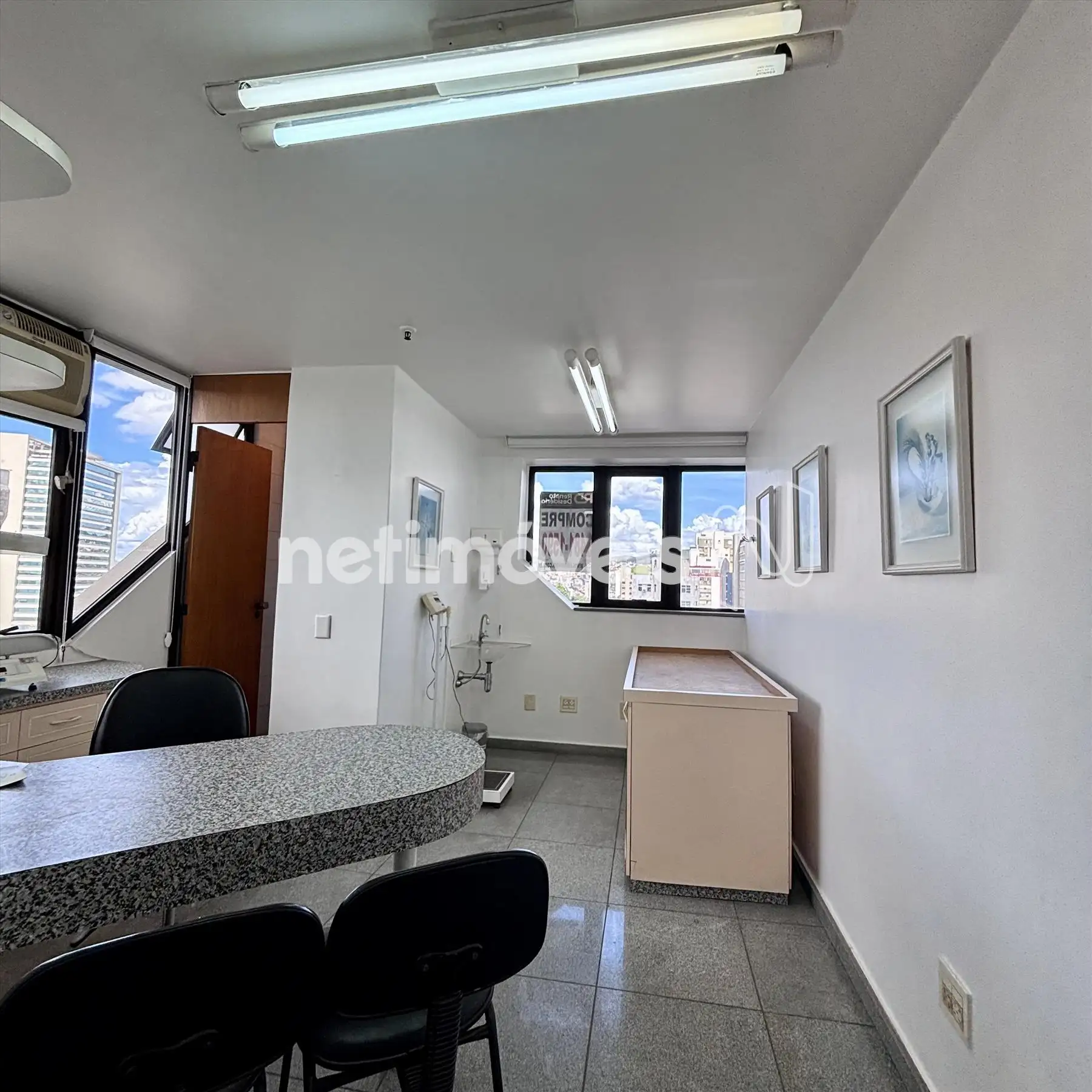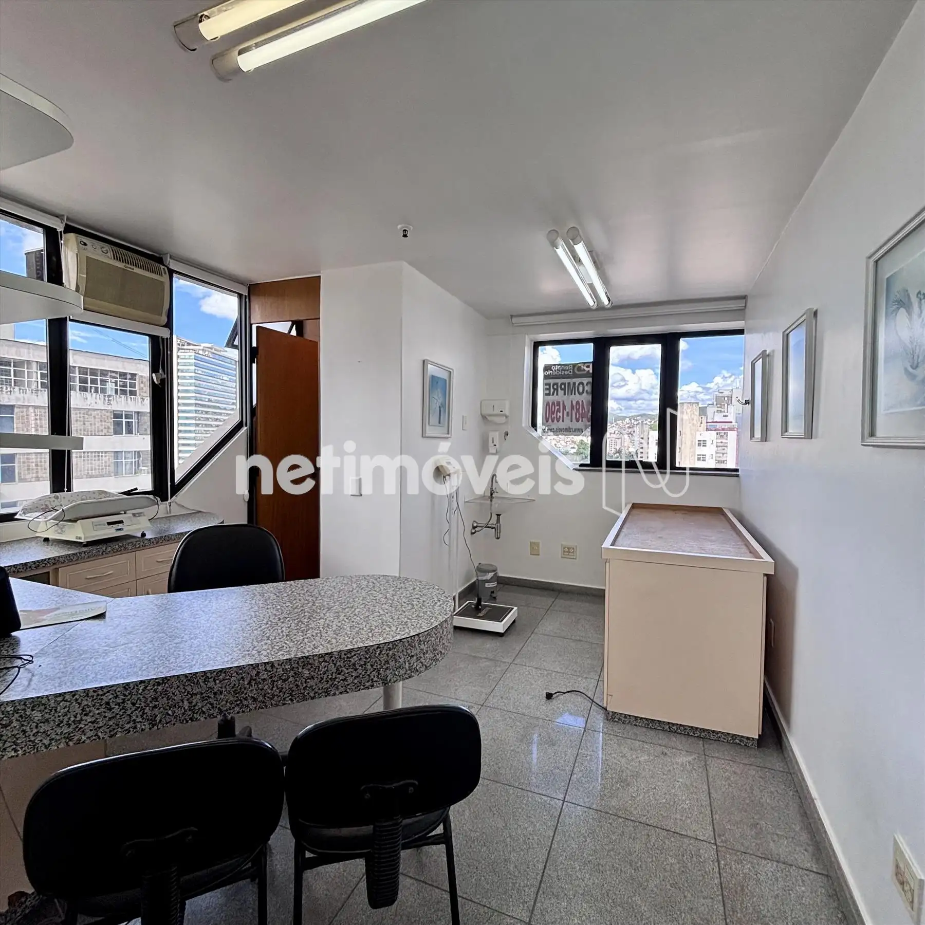 - Sala ampla, arejada, bancadas de consultório Medico.