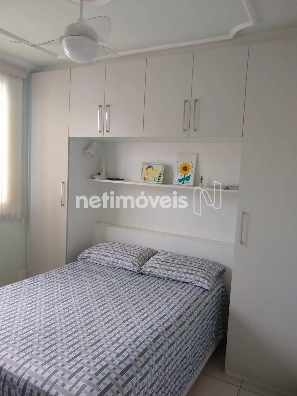 • 2 quartos arejados, com armários planejados e ventilador de teto