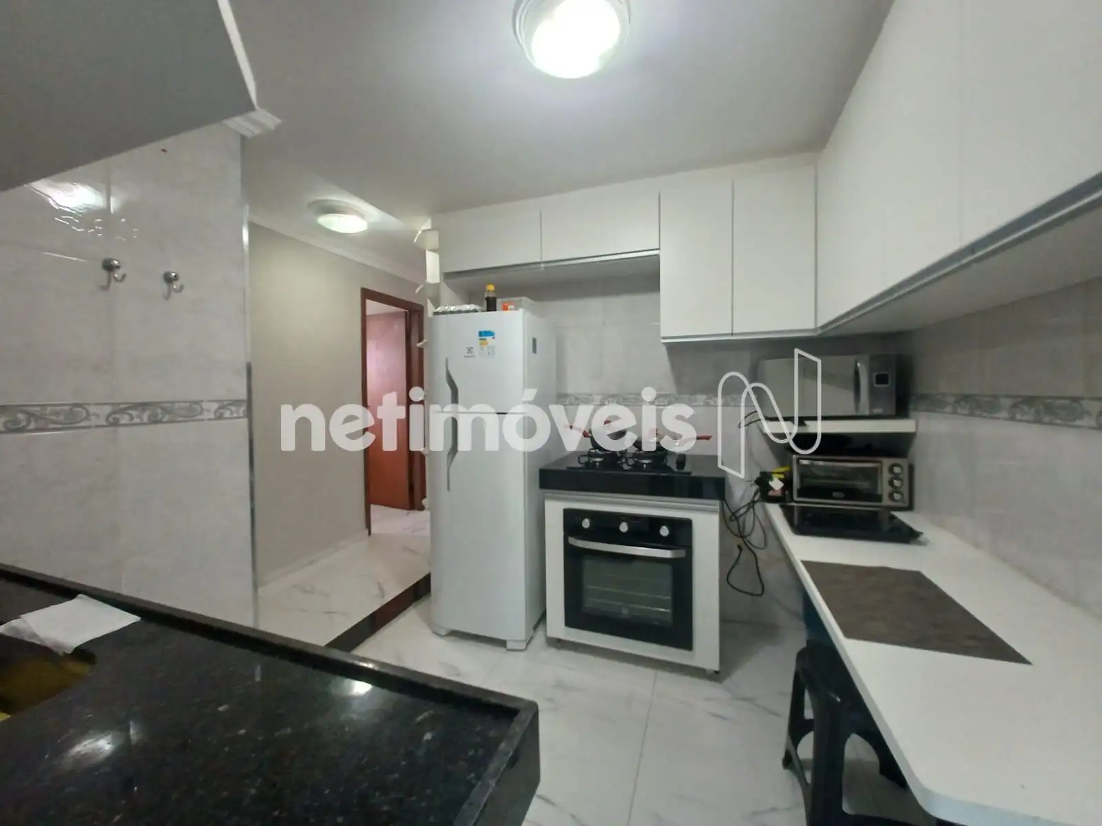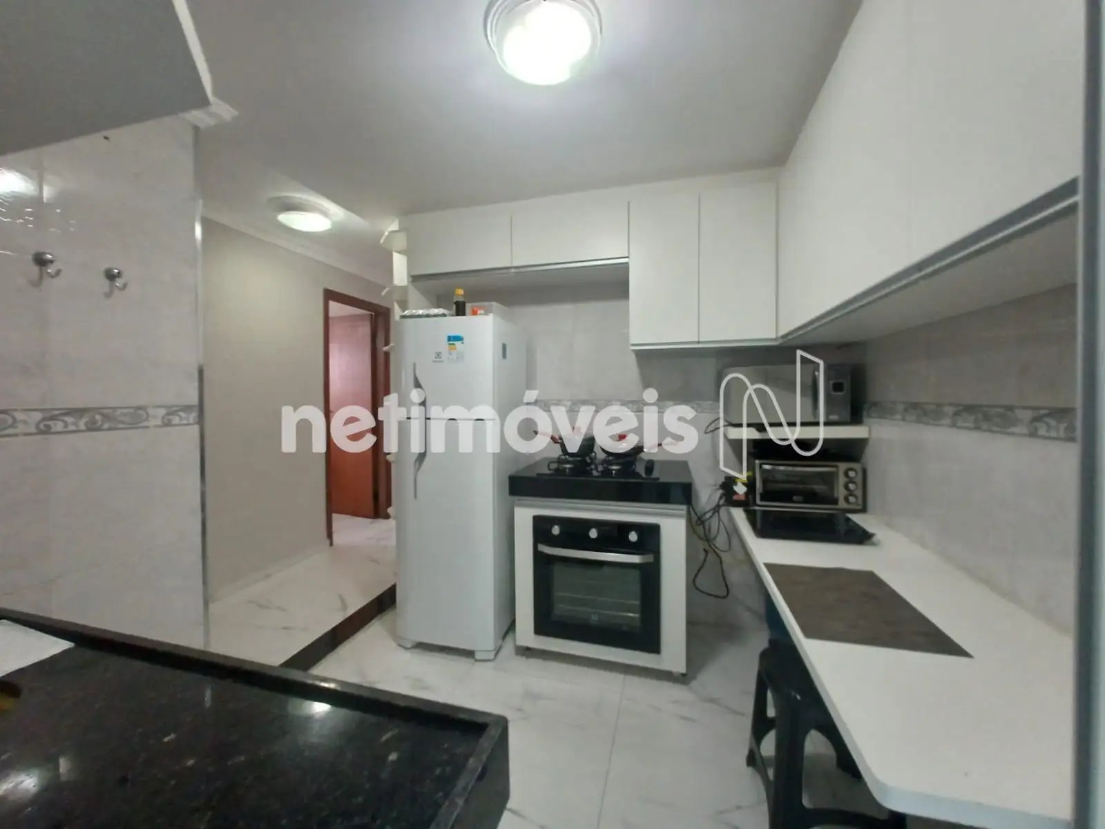 Cozinha ampla com bancada em granito e armários planejados