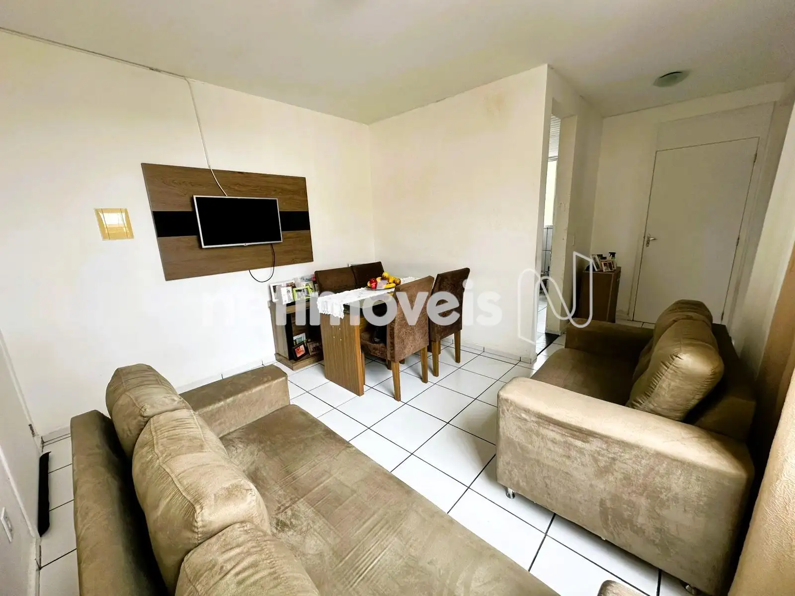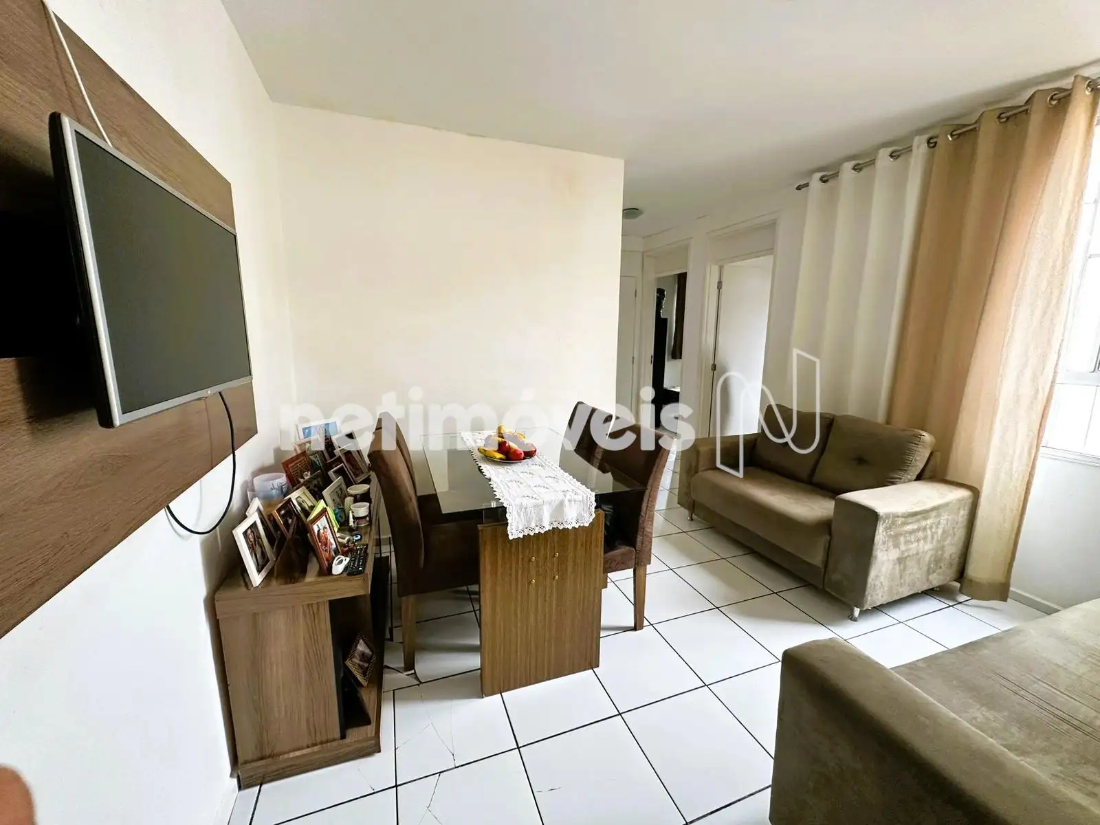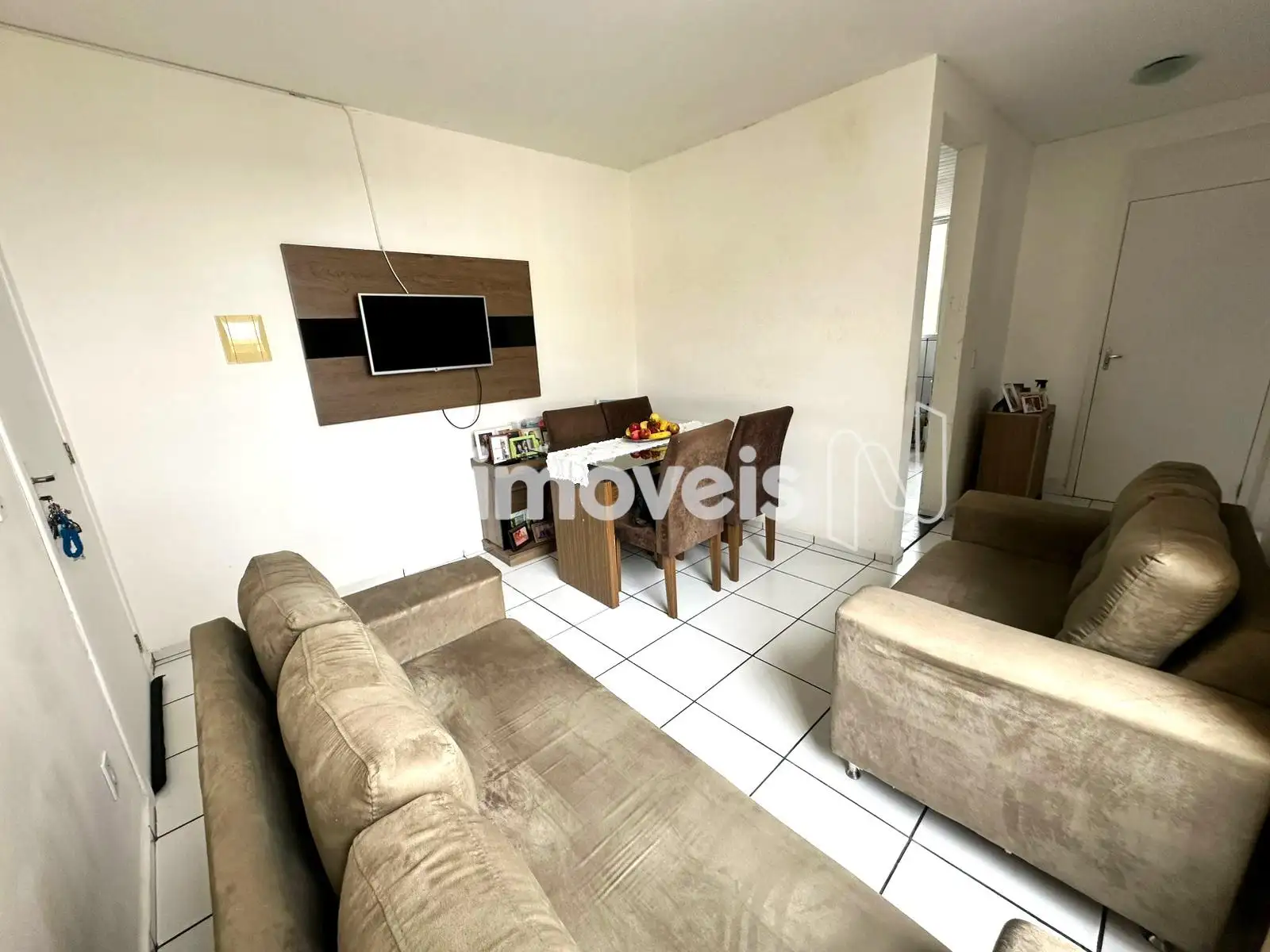 Piso em cerâmica, dois quartos com iluminação do sol da manhã, vista para a mata, sala confortável para dois ambientes, banho social e cozinha integrada à área de serviço.