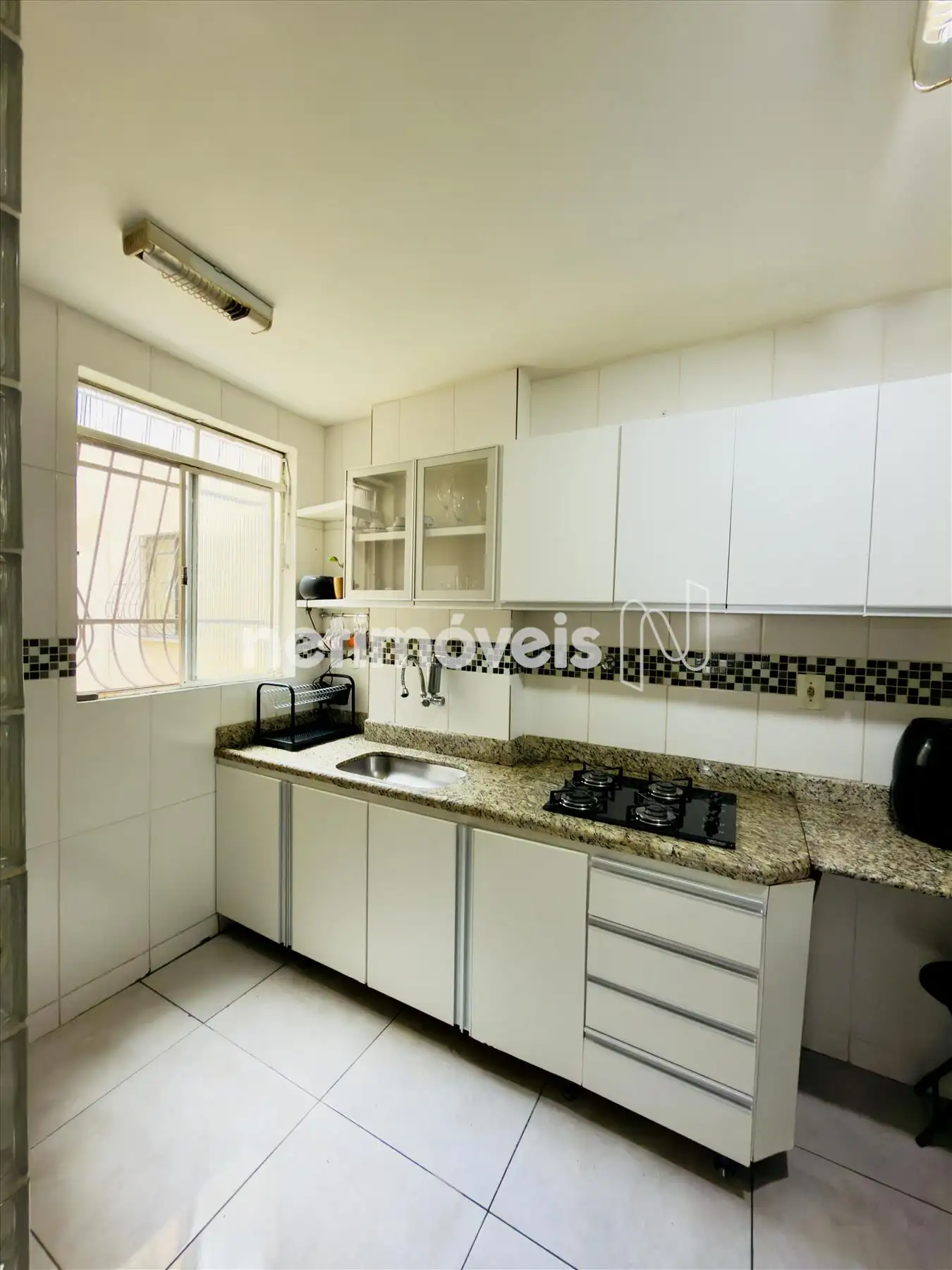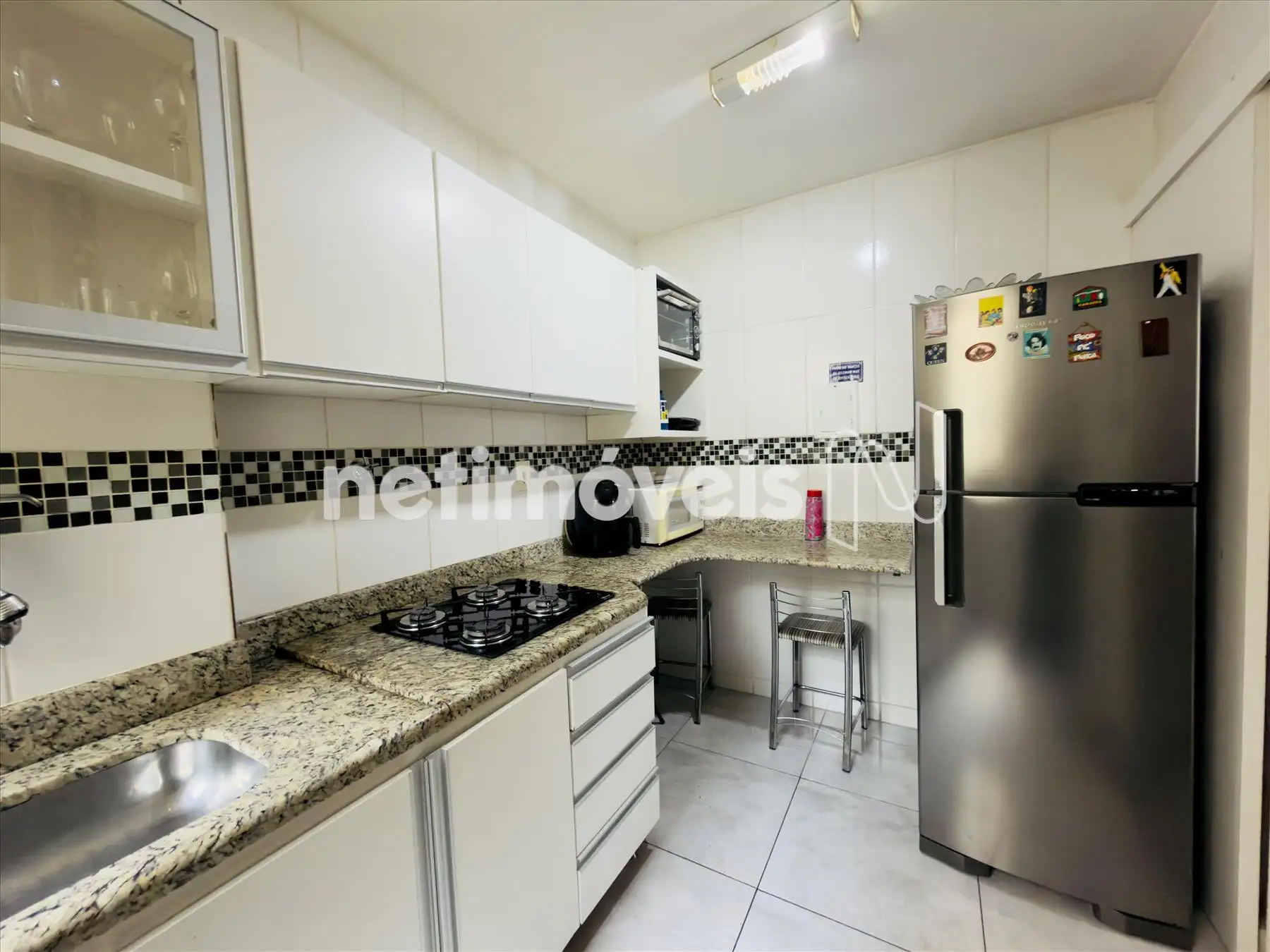 - Cozinha com armários planejados e bancada em granito.