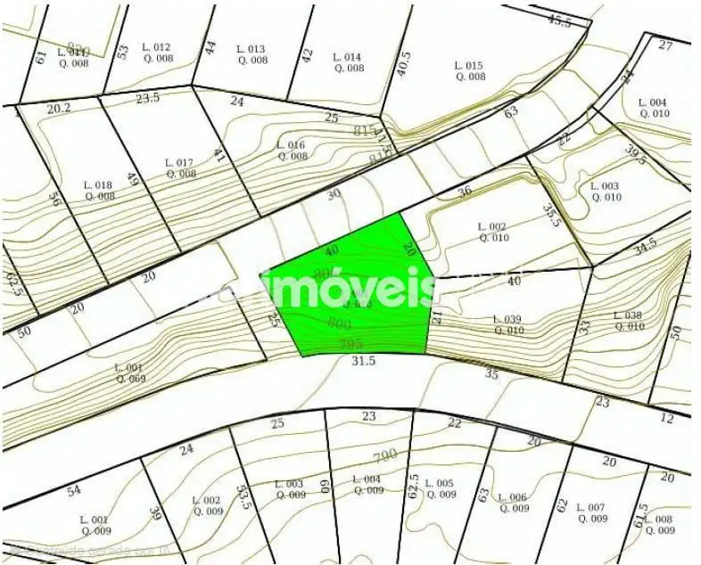 Lote com 1.211m², possuindo três frentes (31,5m, 40m e 25m), localizado em vias de caráter misto, residencial e arterial.