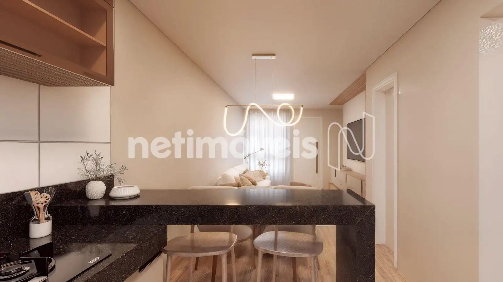 - Sala de estar conjugada com a cozinha,