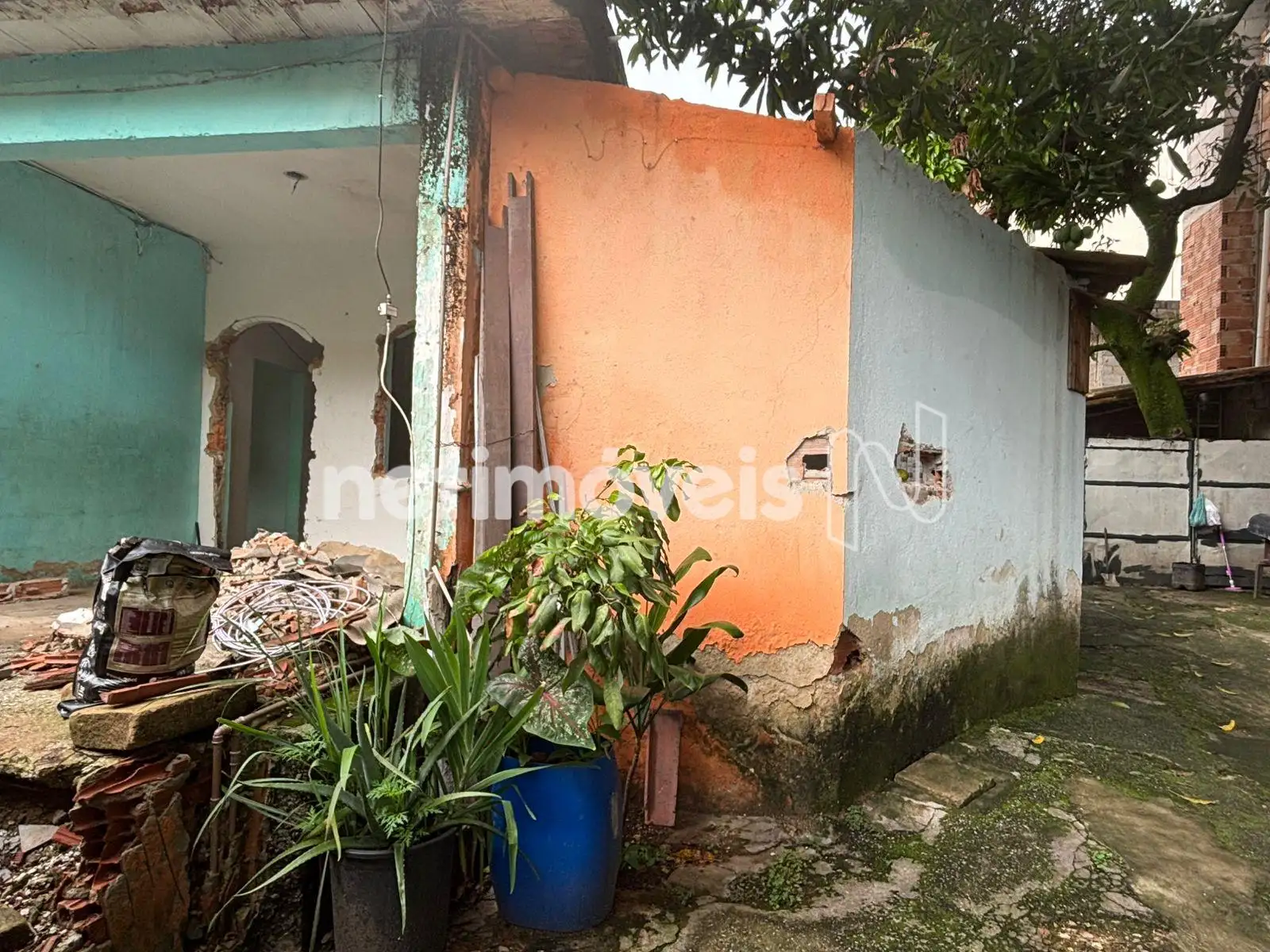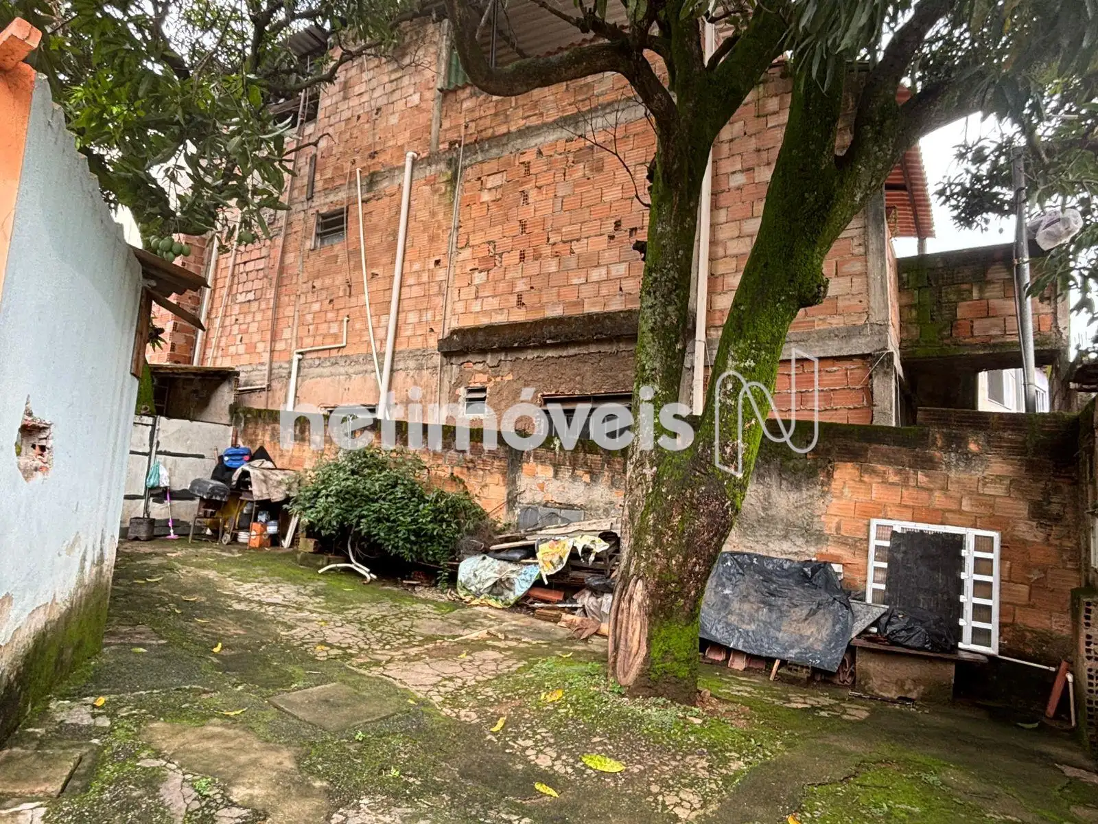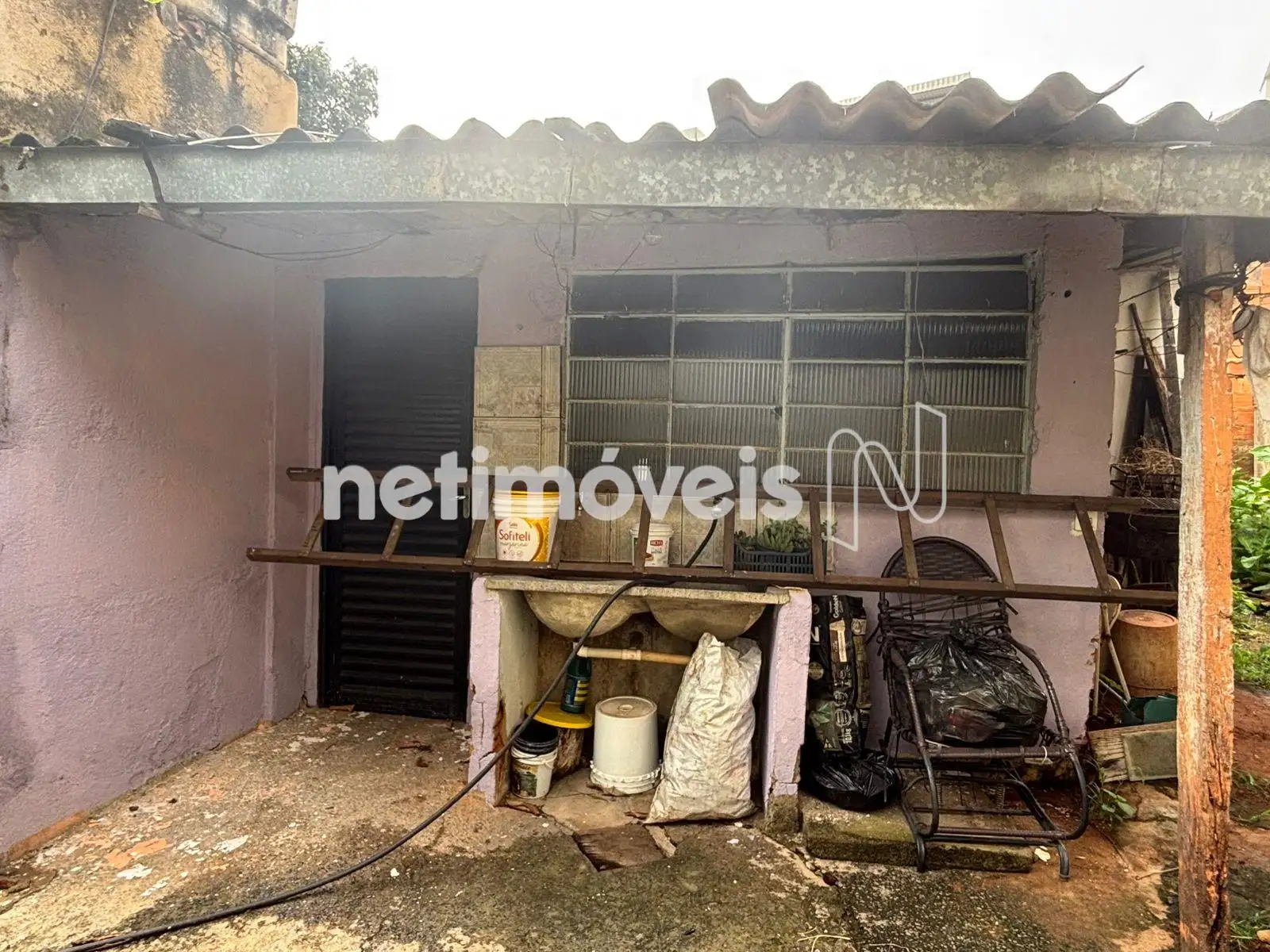 Casa principal, com janelas retiradas para reforma — obra que não foi concluída pelo proprietário, representando uma oportunidade para revitalização conforme seu projeto.