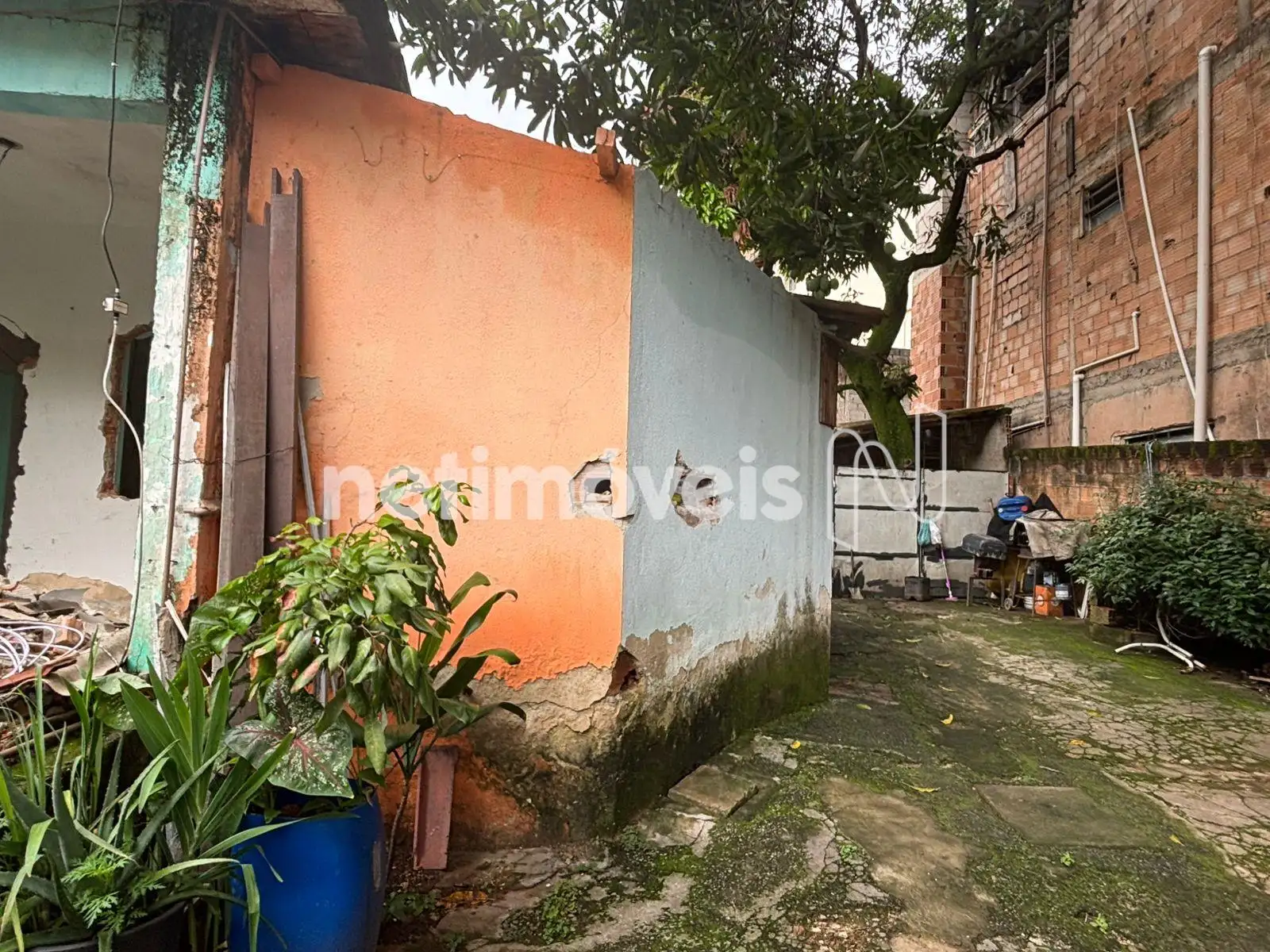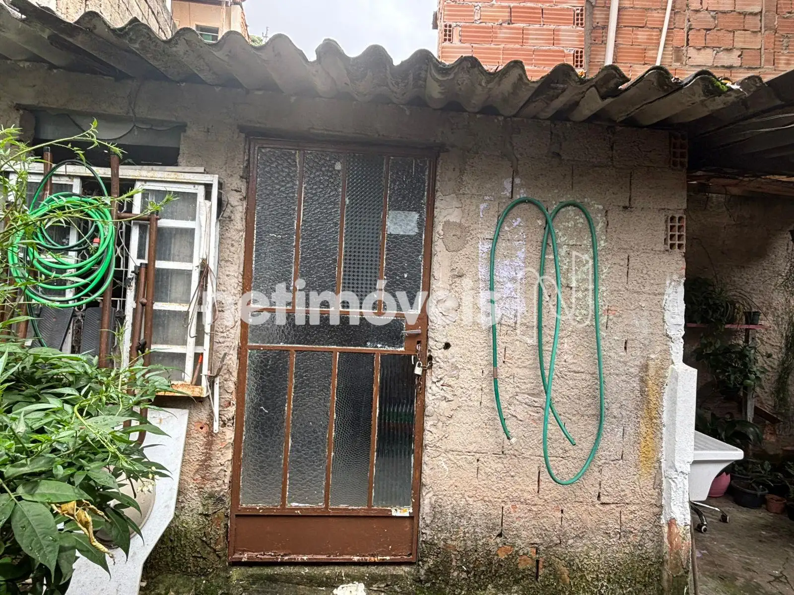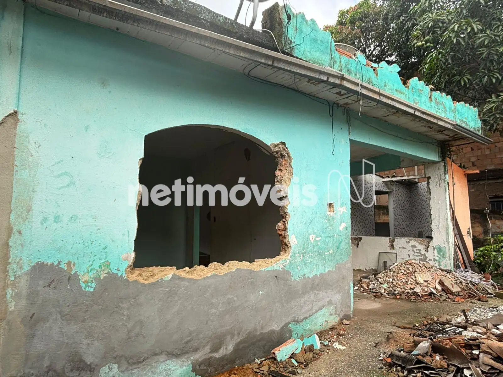 Casa principal, com janelas retiradas para reforma — obra que não foi concluída pelo proprietário, representando uma oportunidade para revitalização conforme seu projeto.