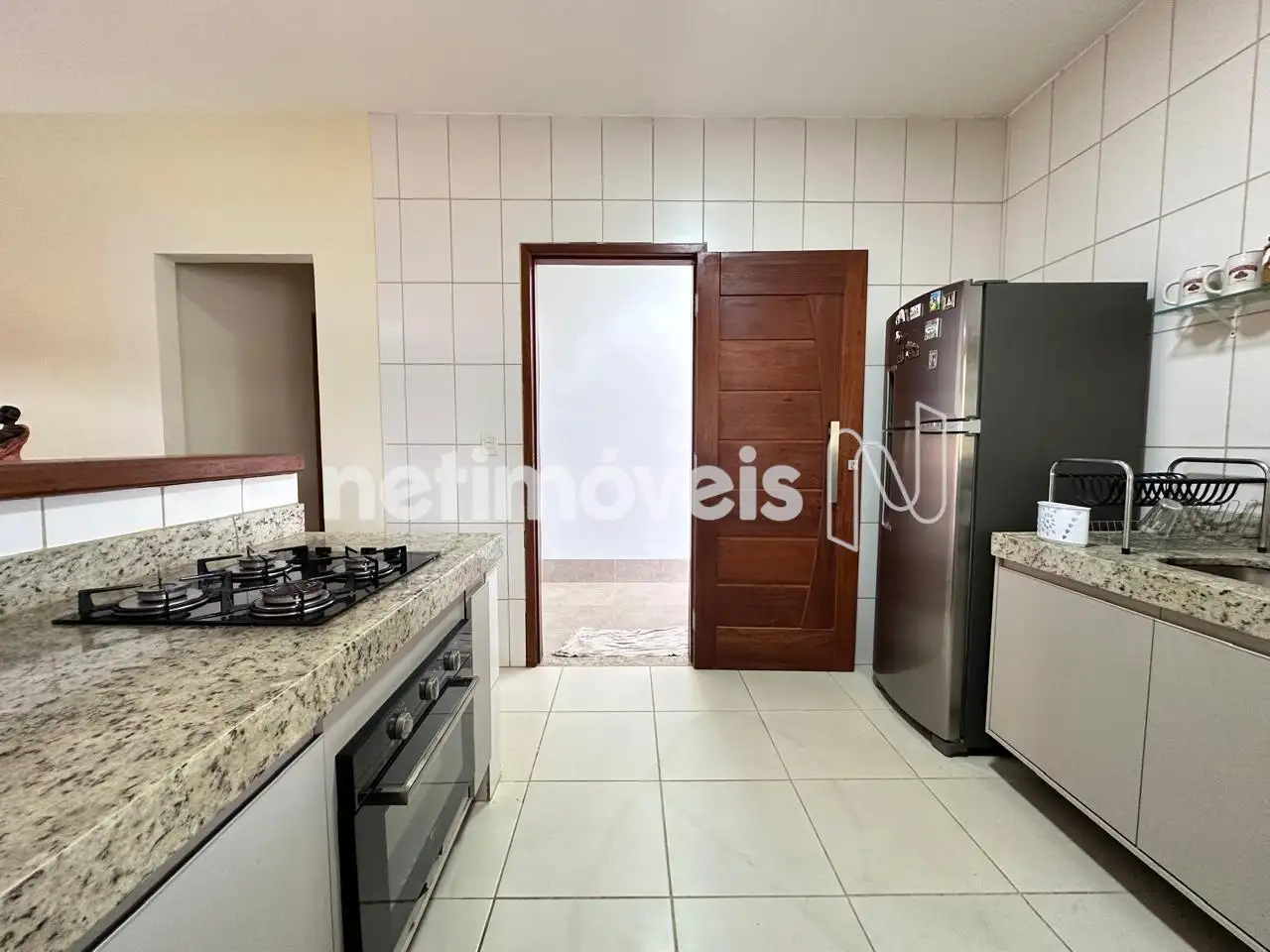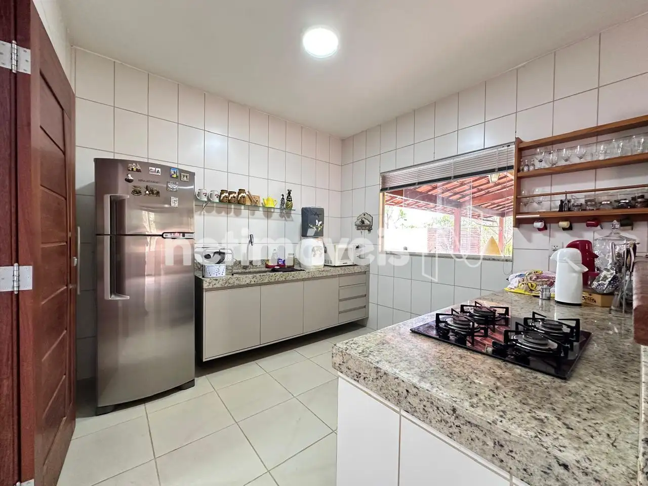 Cozinha Americana – Com armários planejados, bancadas em granito, e uma ampla área de serviço.