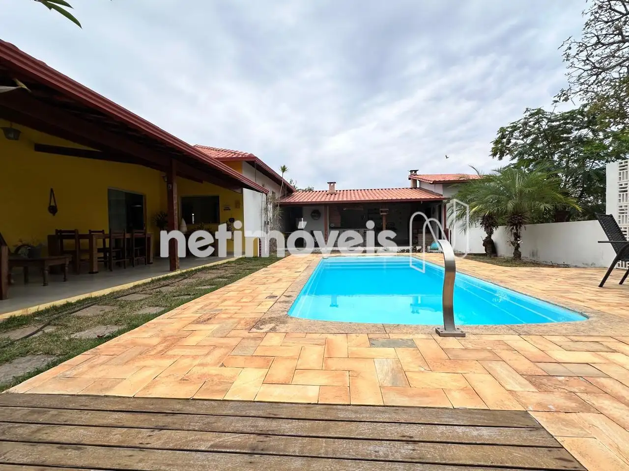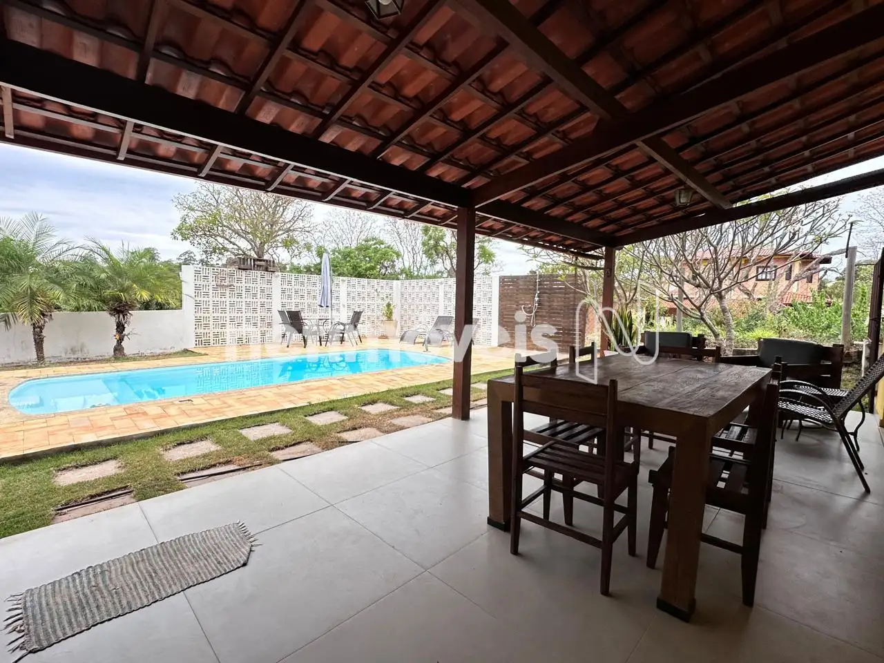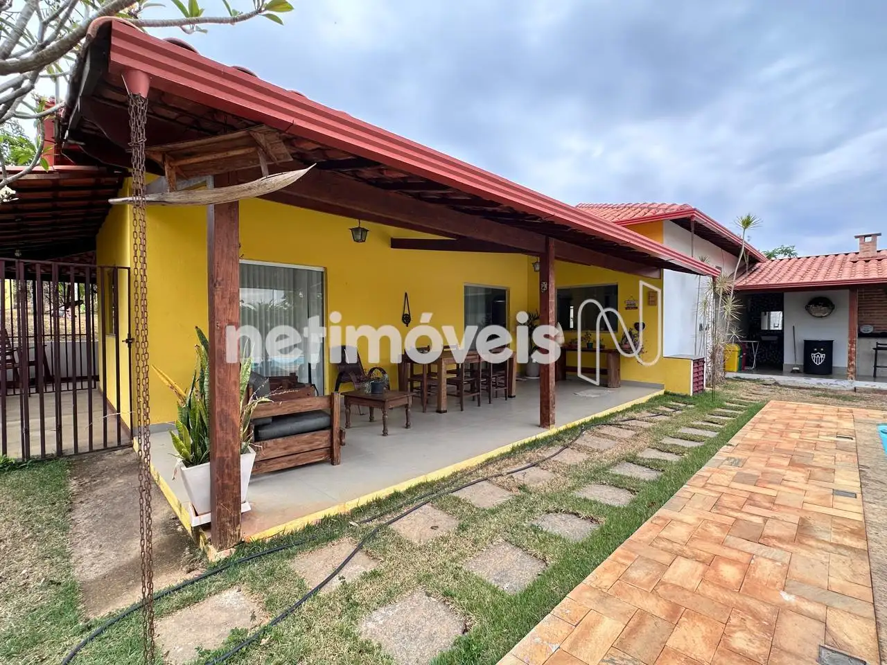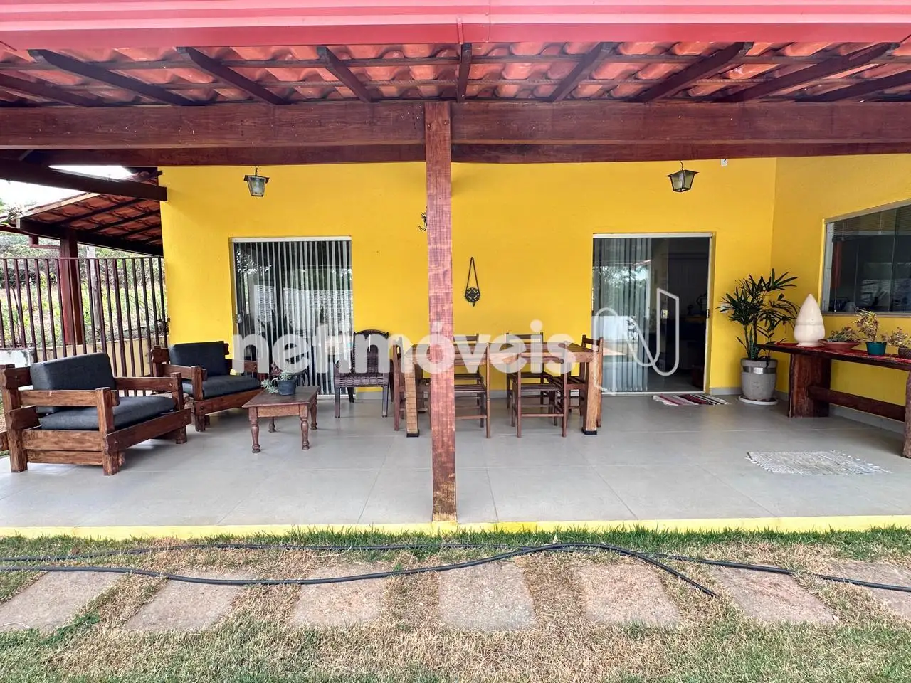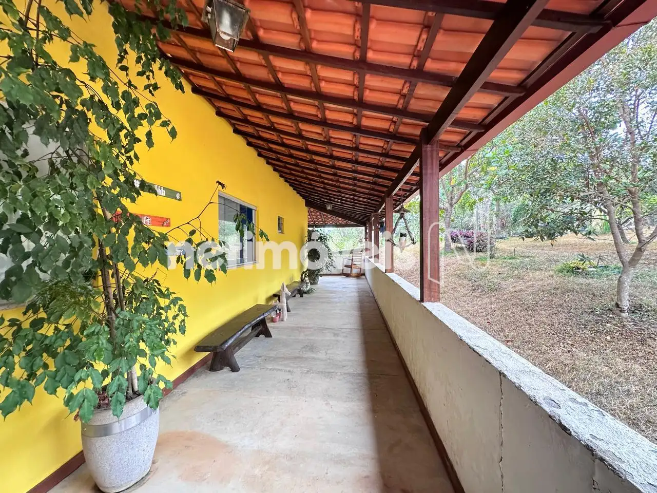 Varanda ampla na frente da casa.