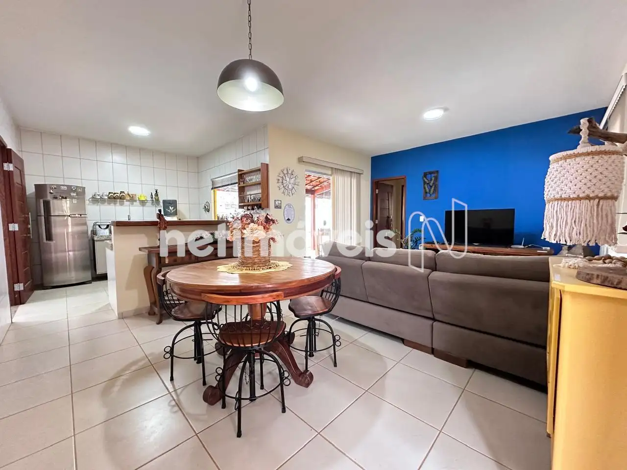 Sala Ampla ambientes integrados para sala de estar, jantar e TV, com piso em cerâmica.