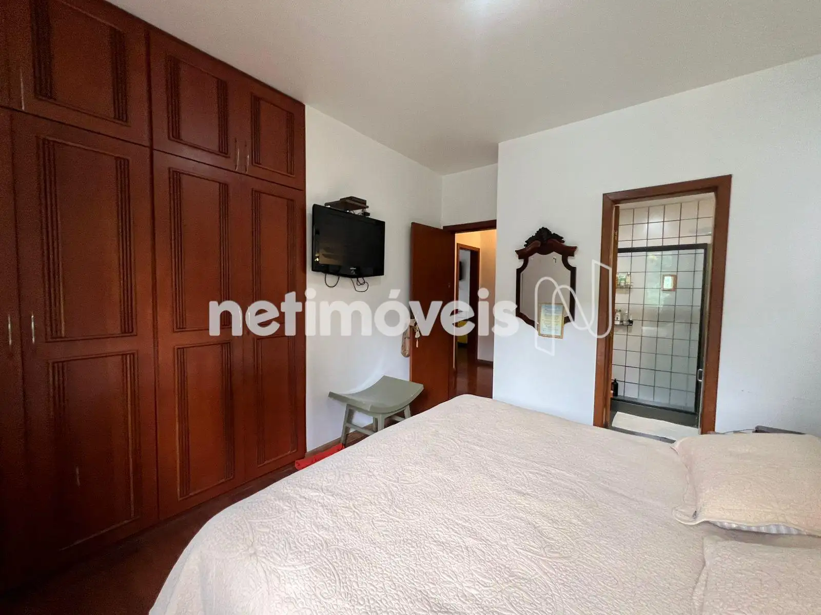 - 03 quartos, sendo 1 suíte. Todos com armários. Piso dos quartos em tábua de madeira.