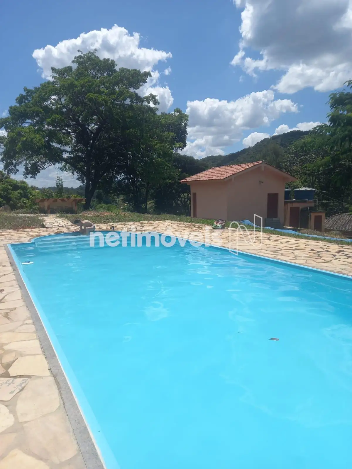 Área gourmet, açude e piscina de 50 mil litros.