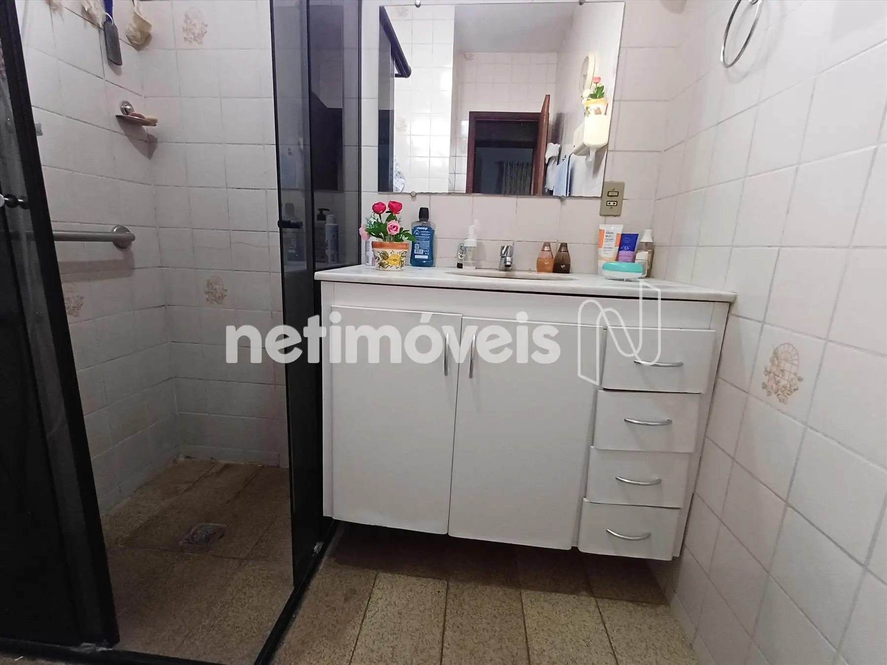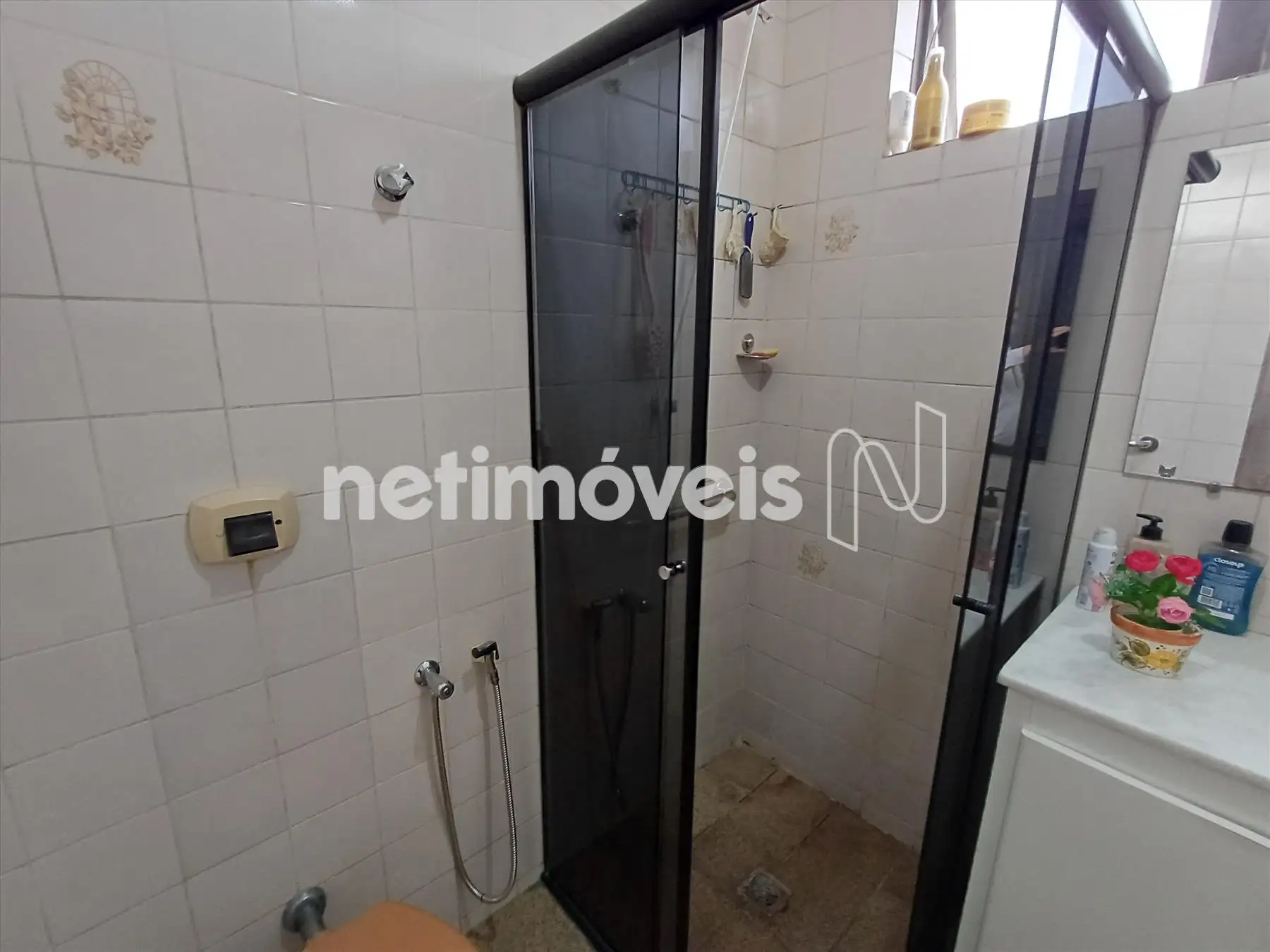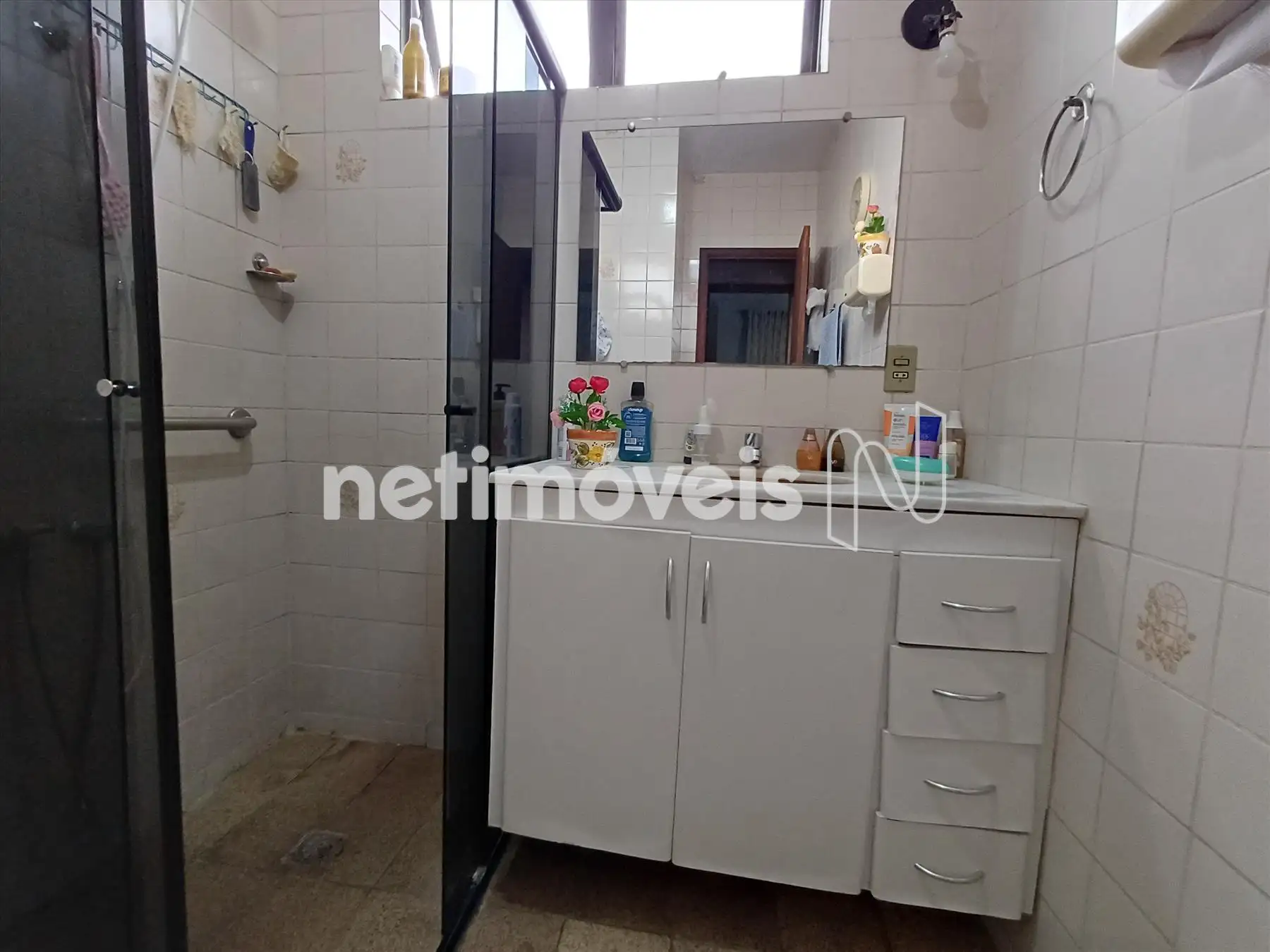 Banho social com box em vidro temperado, funcional e bem conservado;