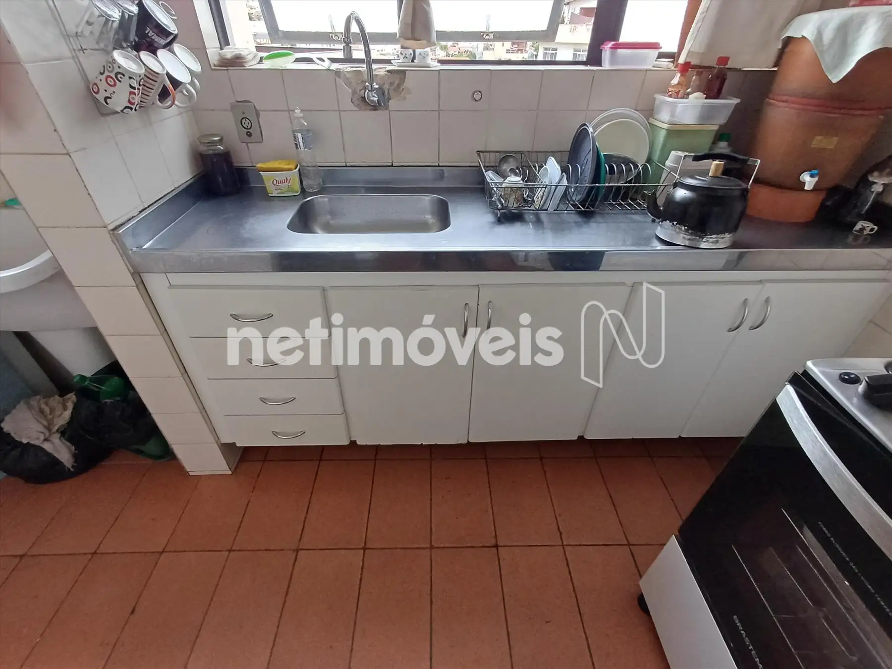 Cozinha com armários planejados, prática e bem aproveitada;