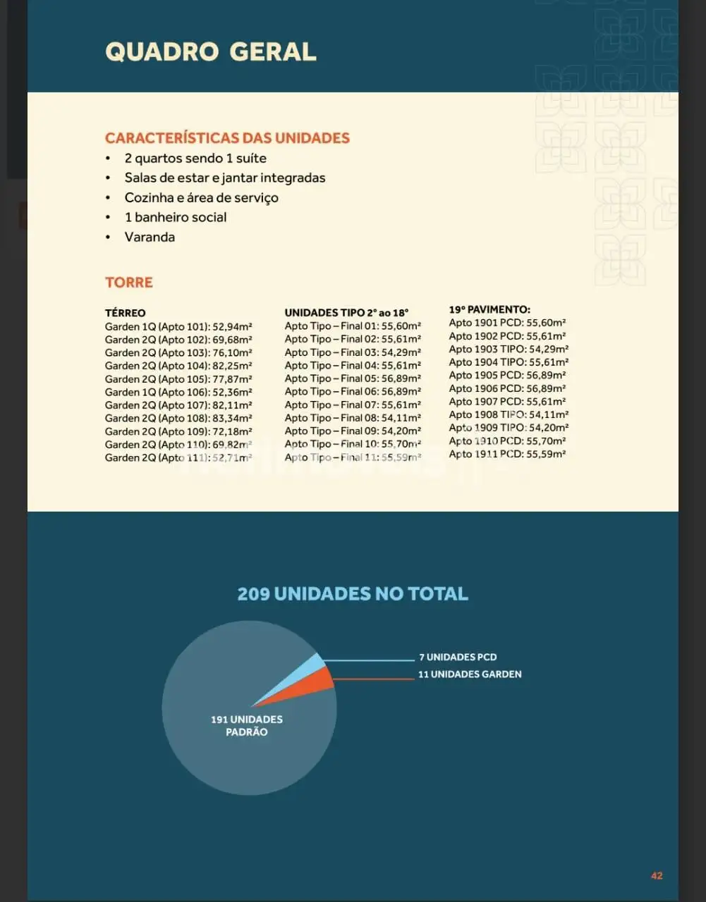 - Apartamentos de 1 ou 2 quartos, com suíte e varada: 54,11 m² a 56,89m²