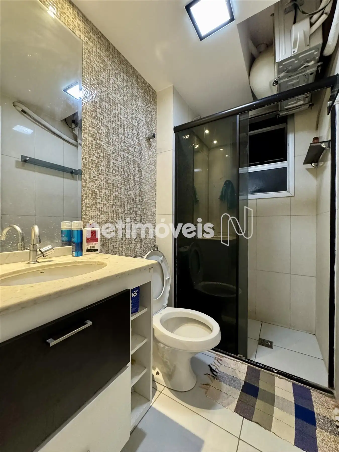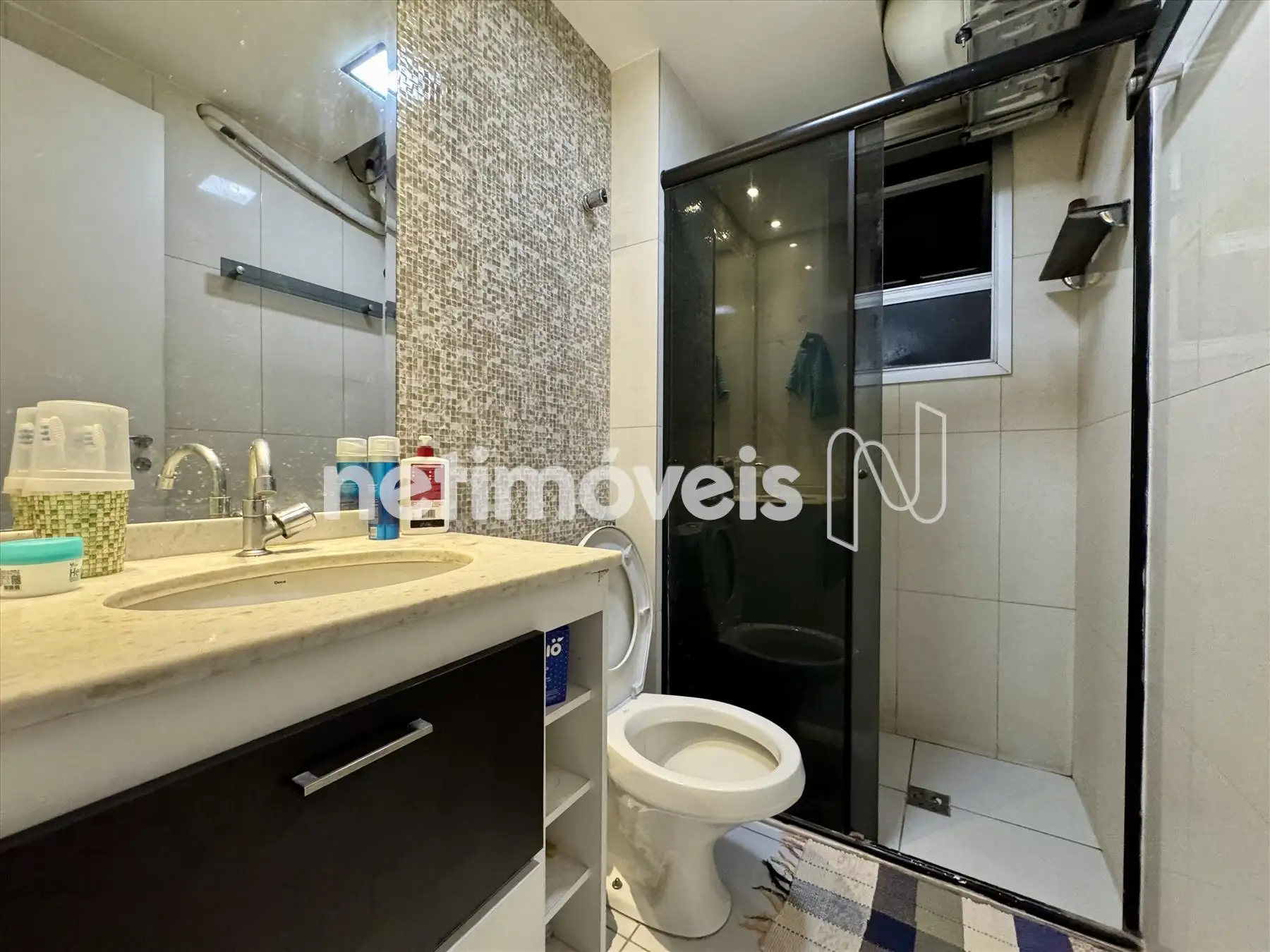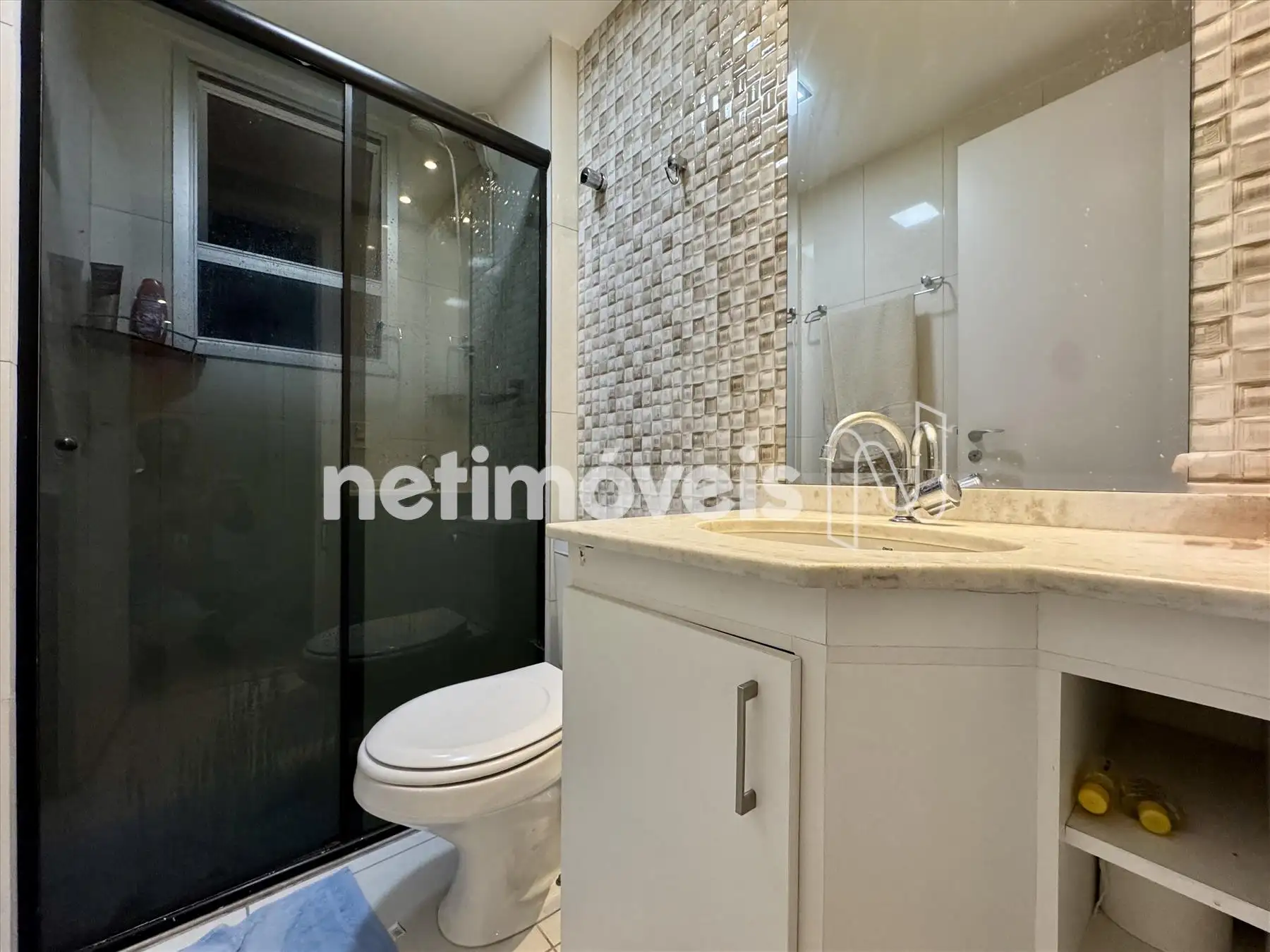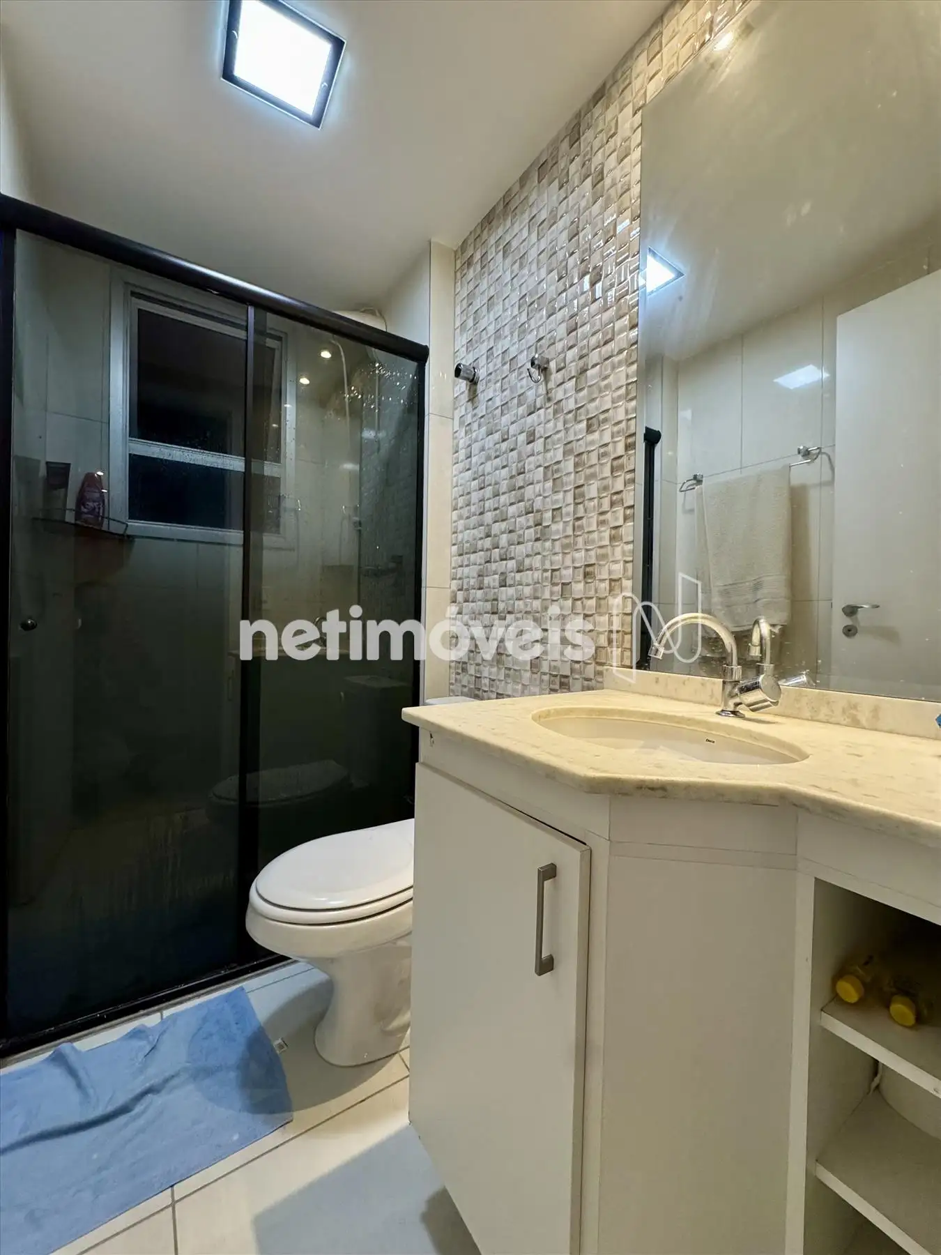 - Banheiro social com box blindex e armários planejados;