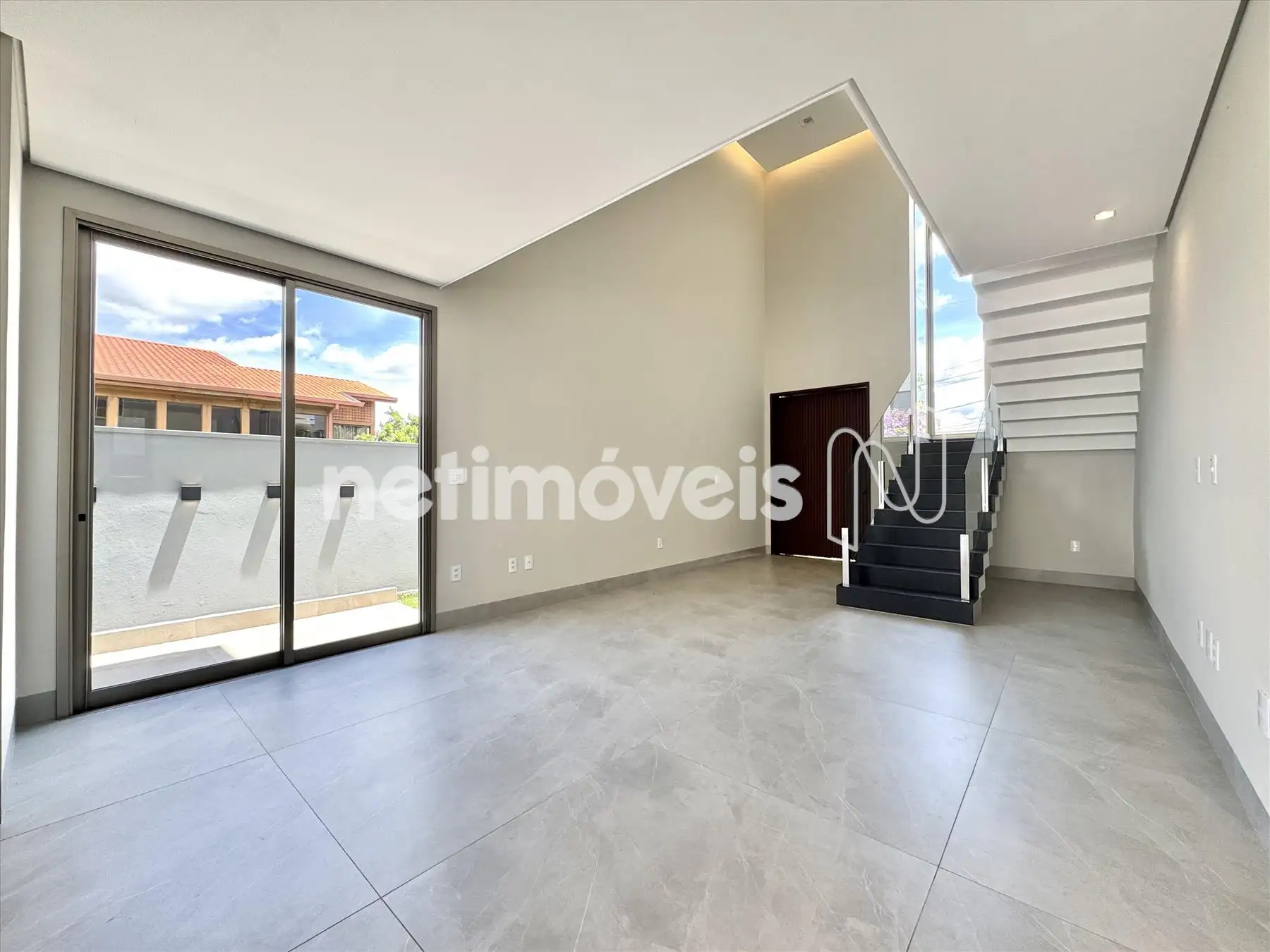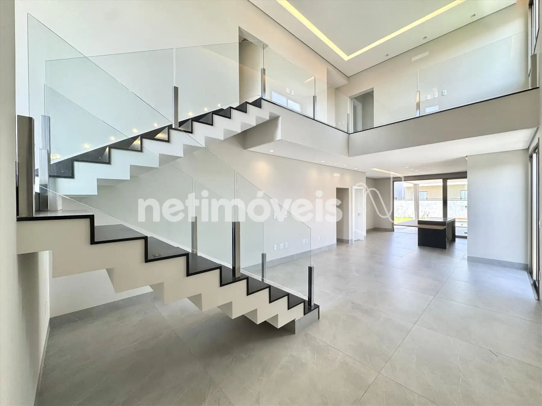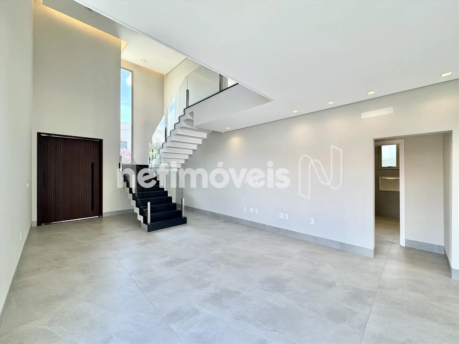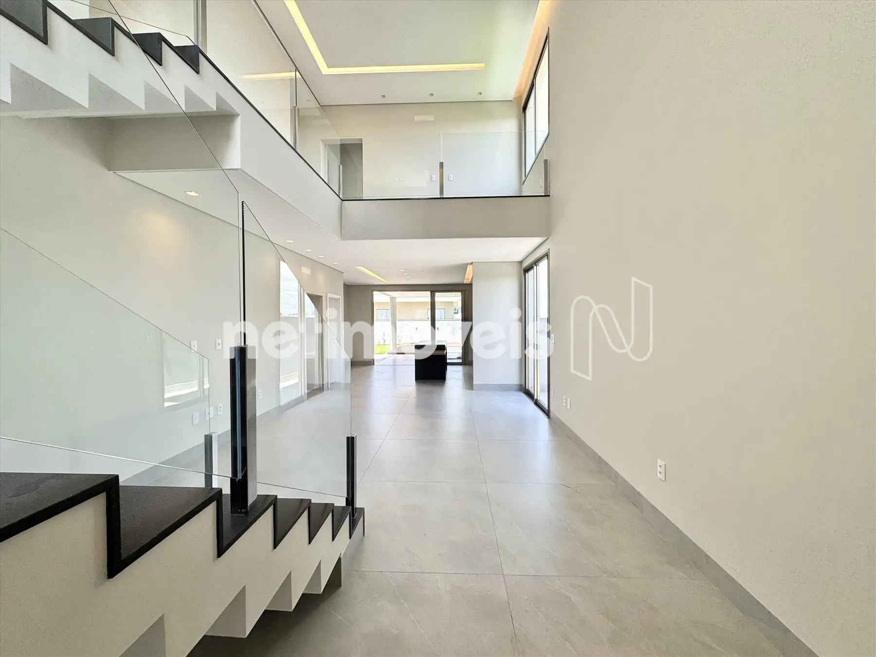 Sala ampla com pé direito duplo;