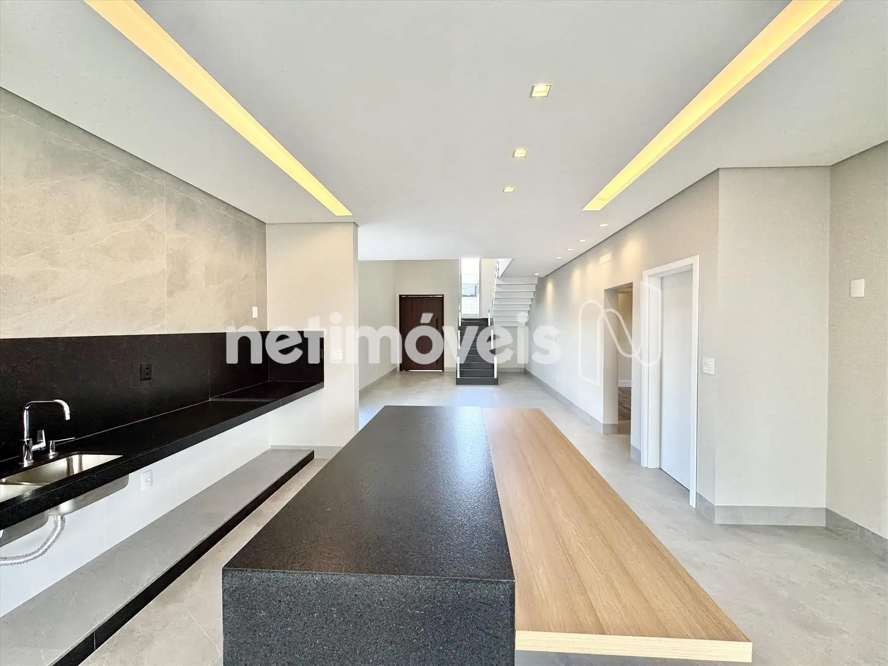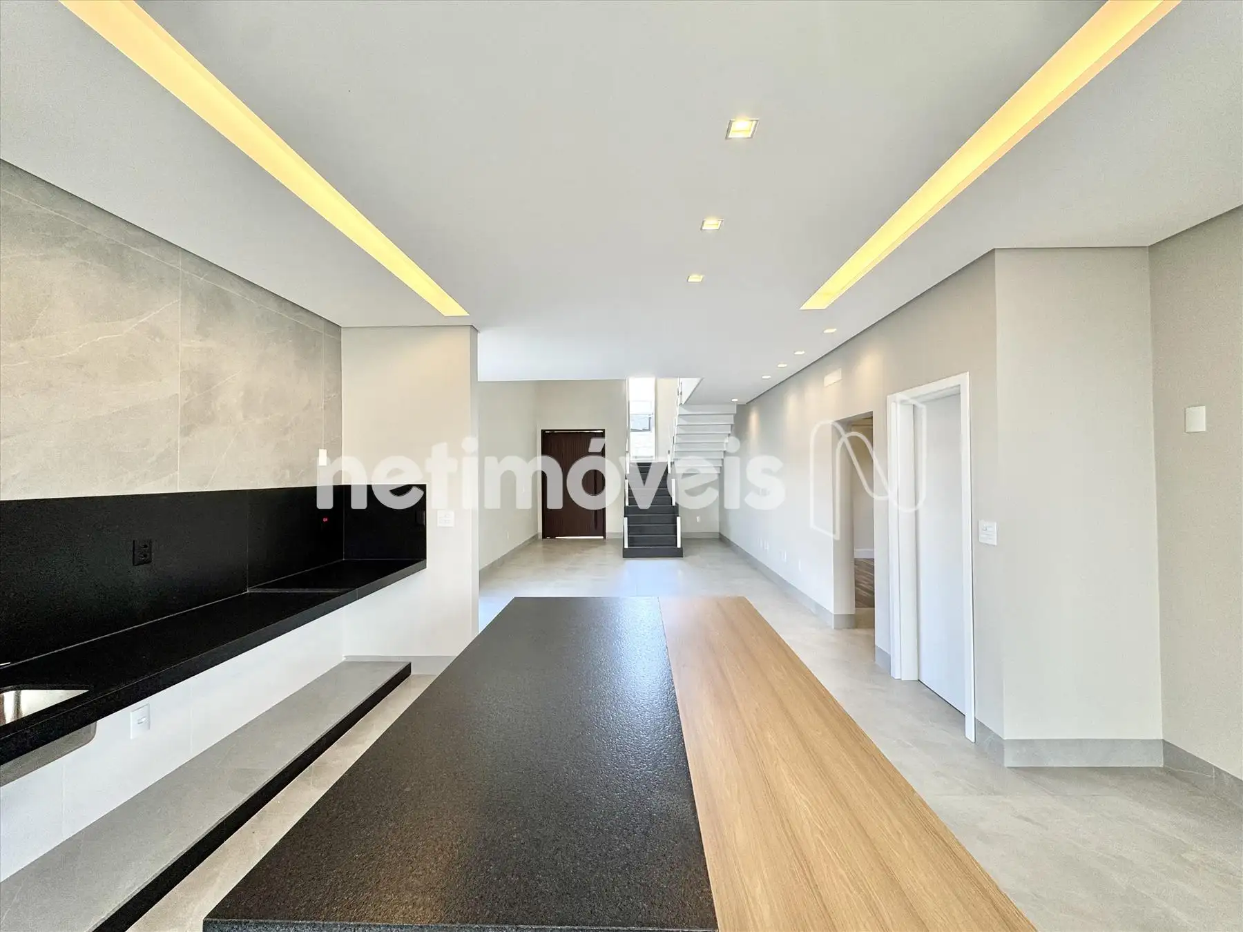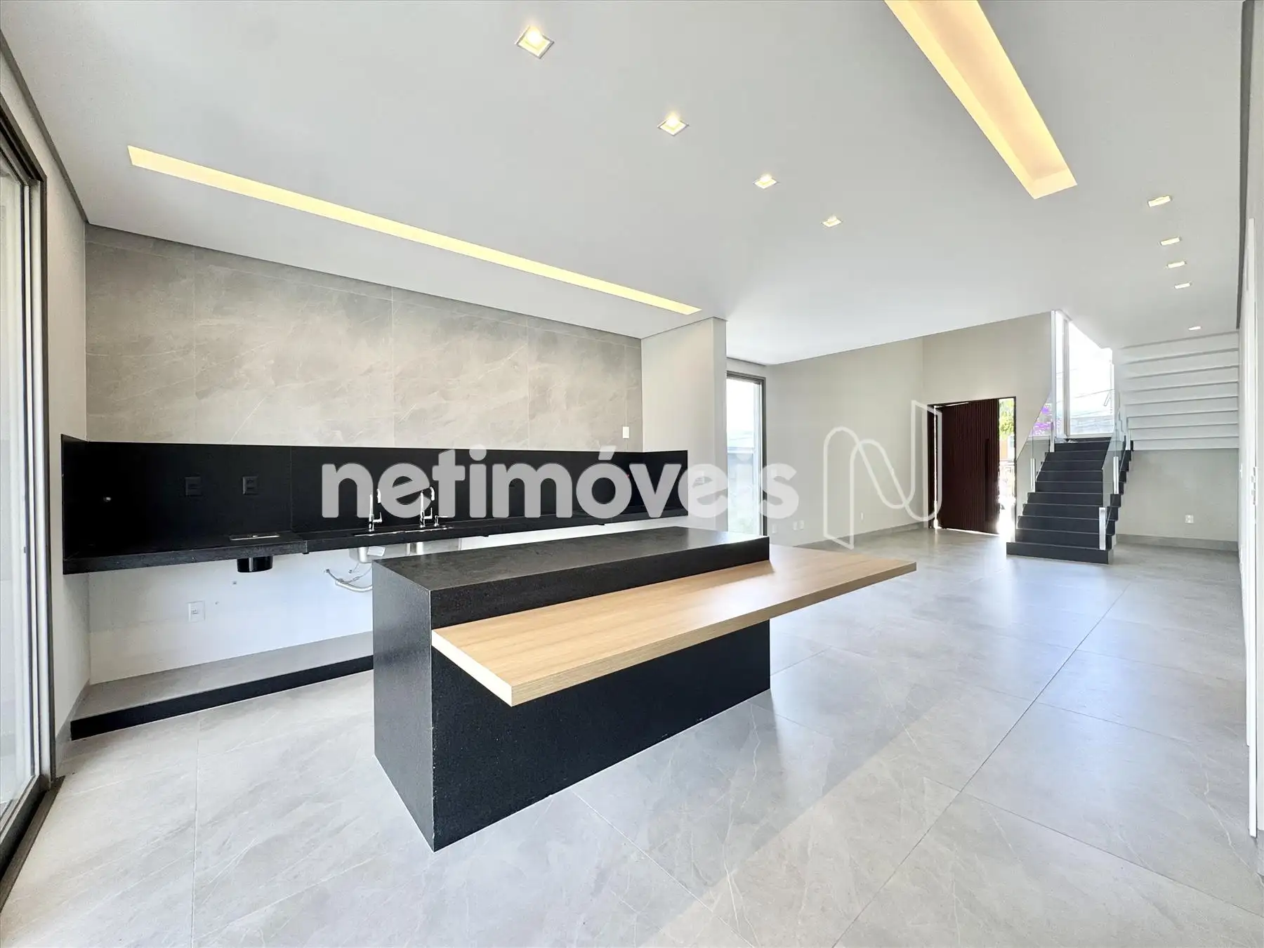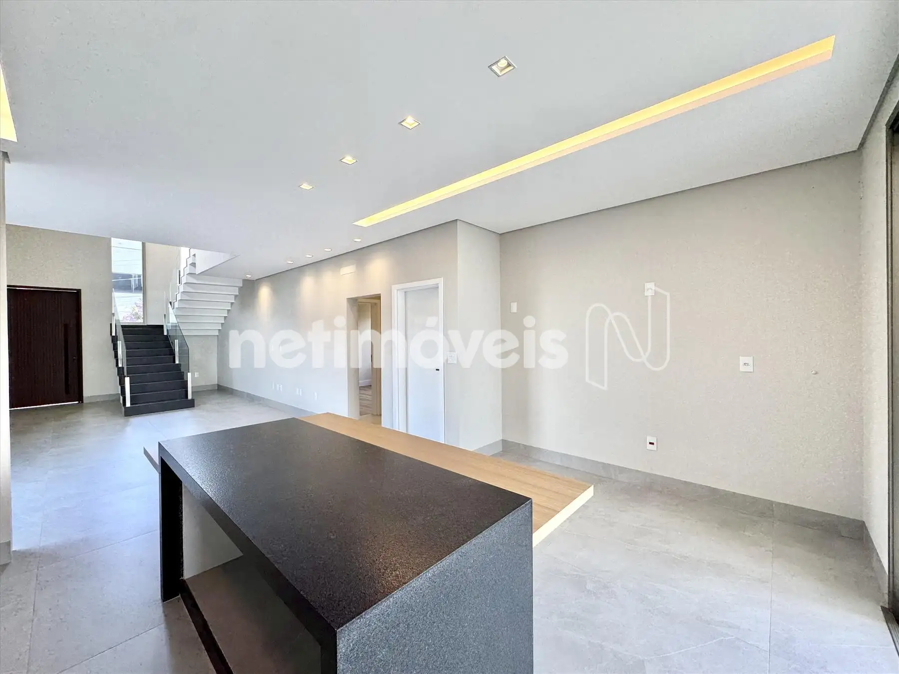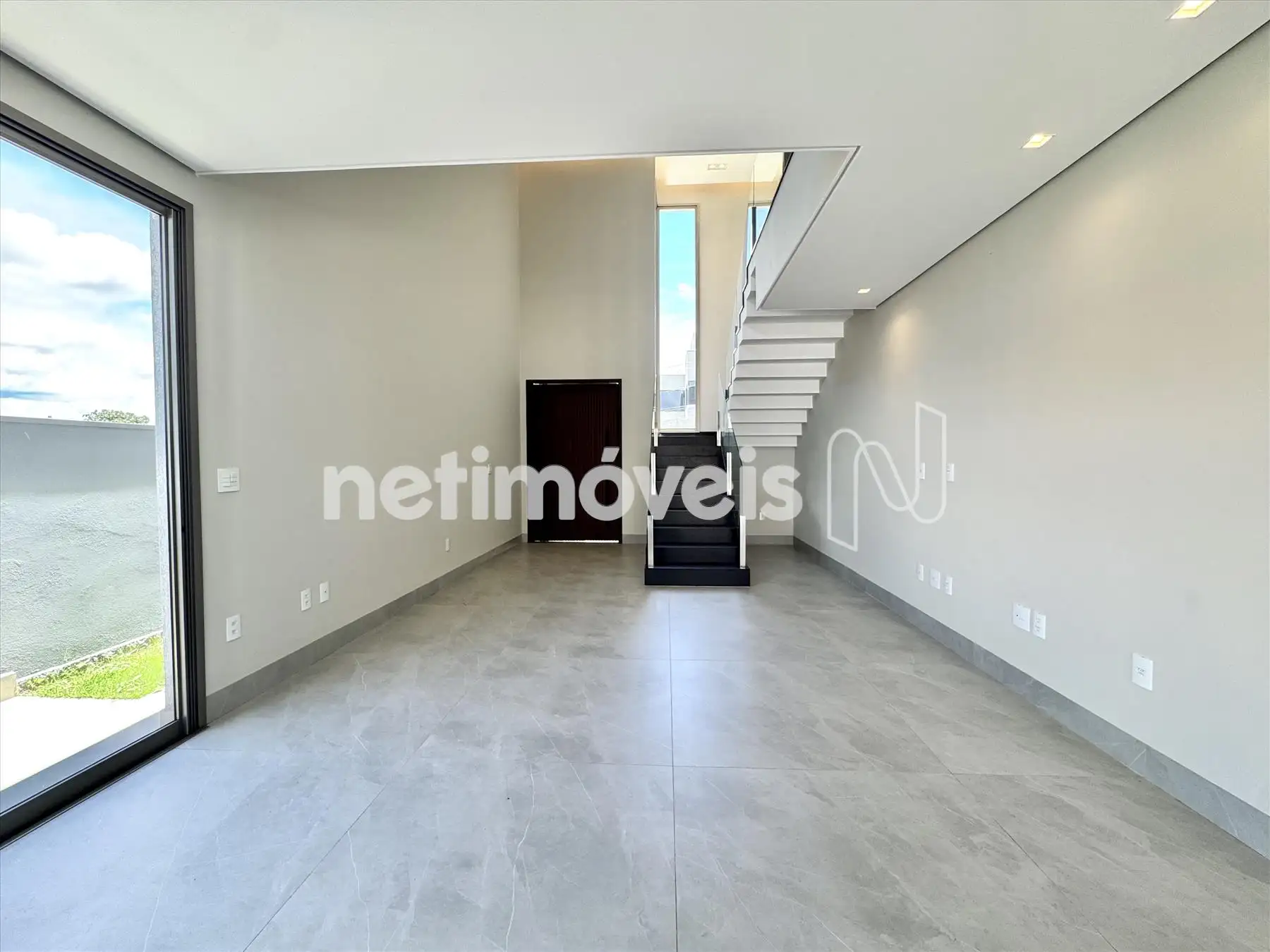 Sala ampla com pé direito duplo;