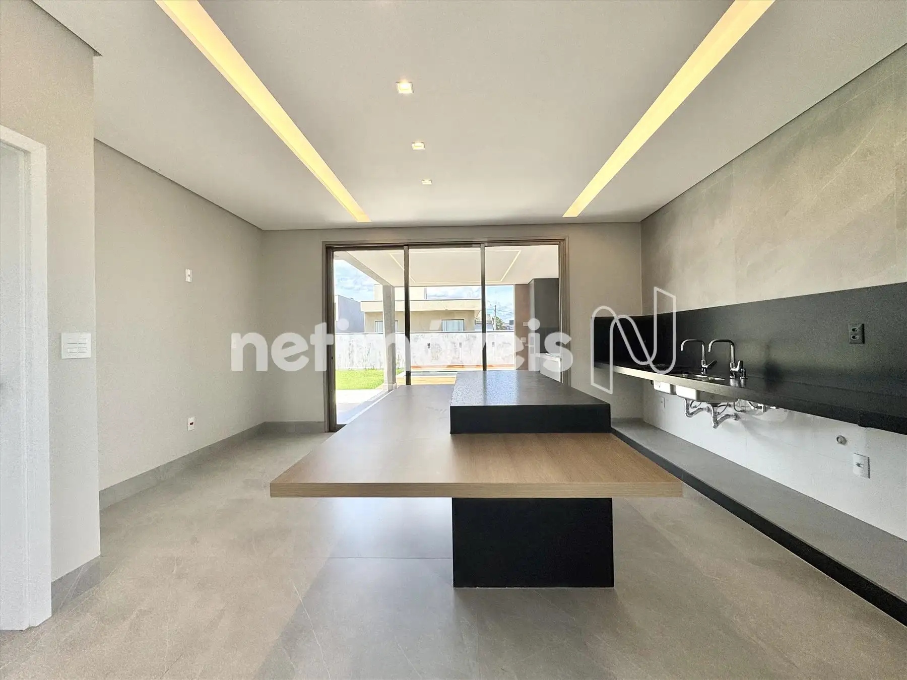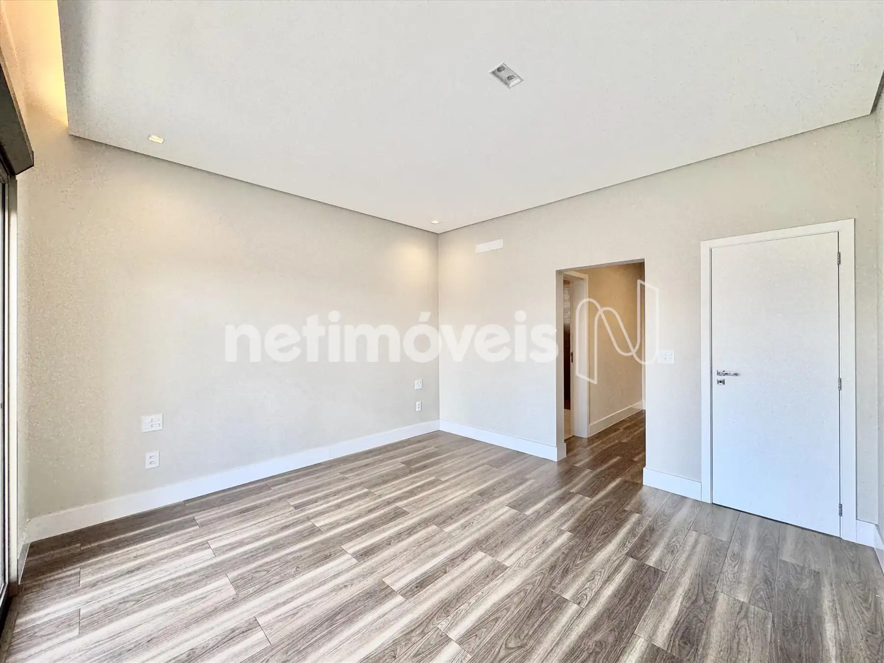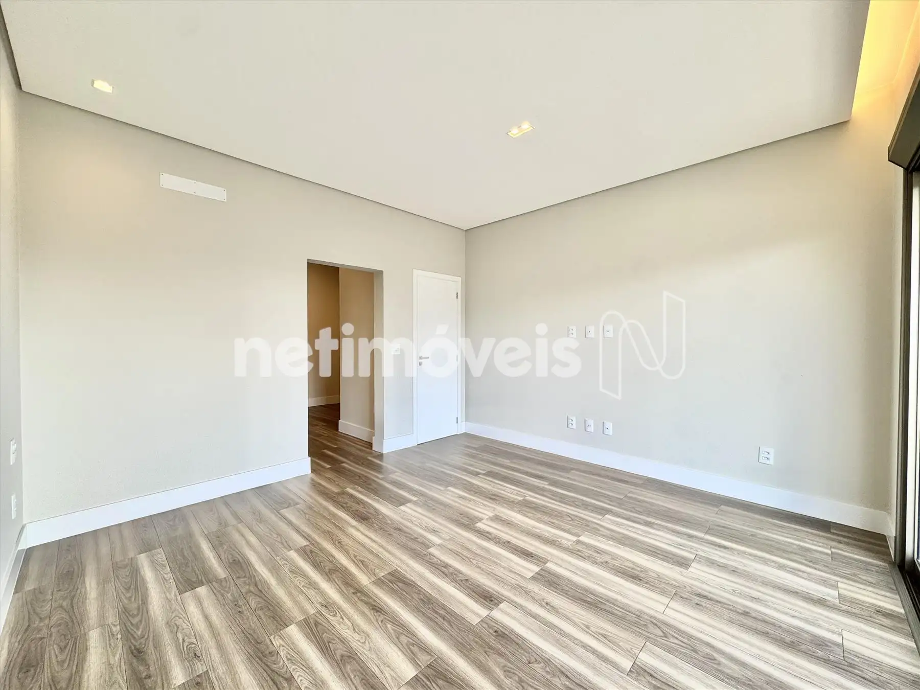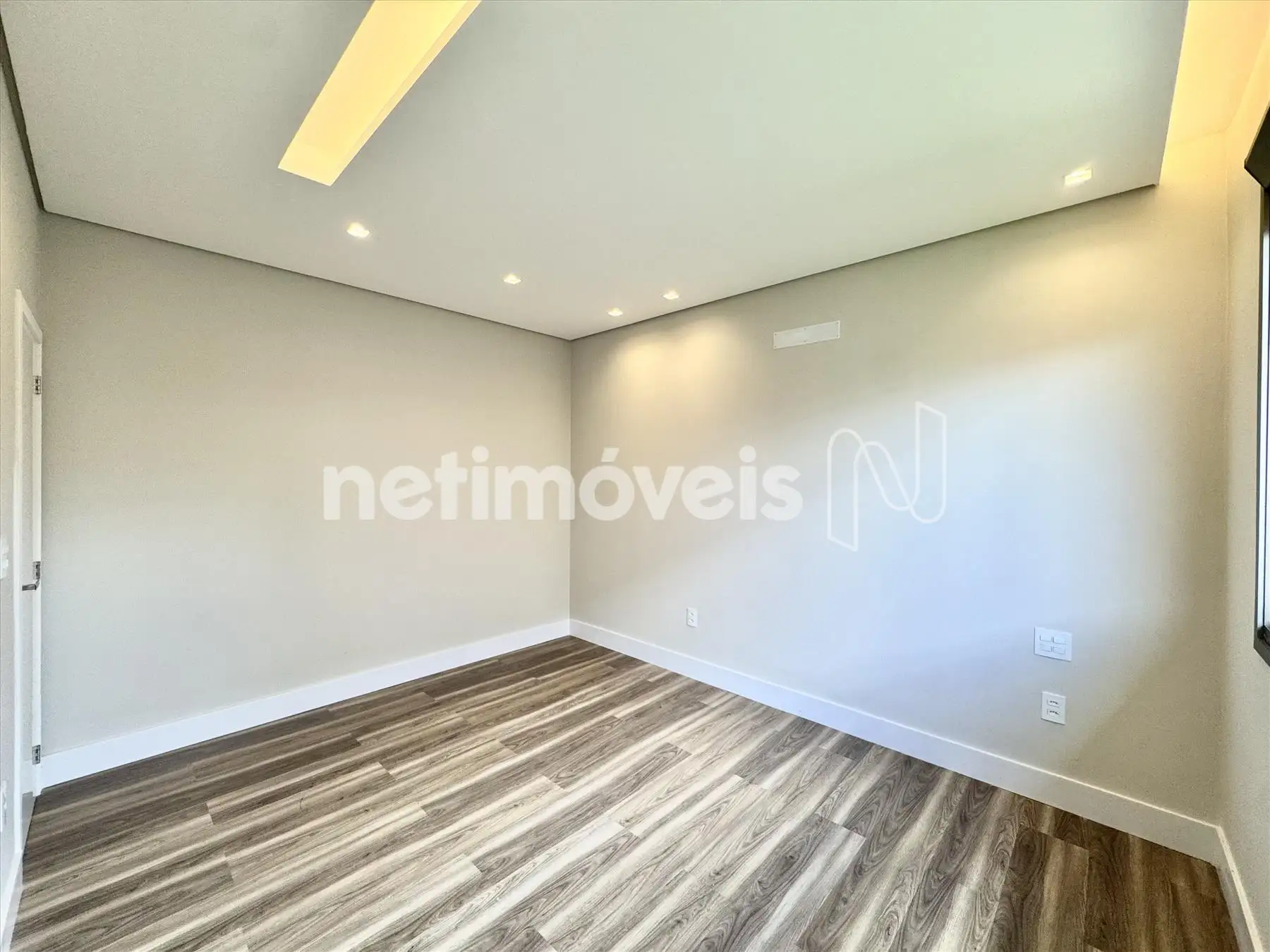 Sala ampla com pé direito duplo;