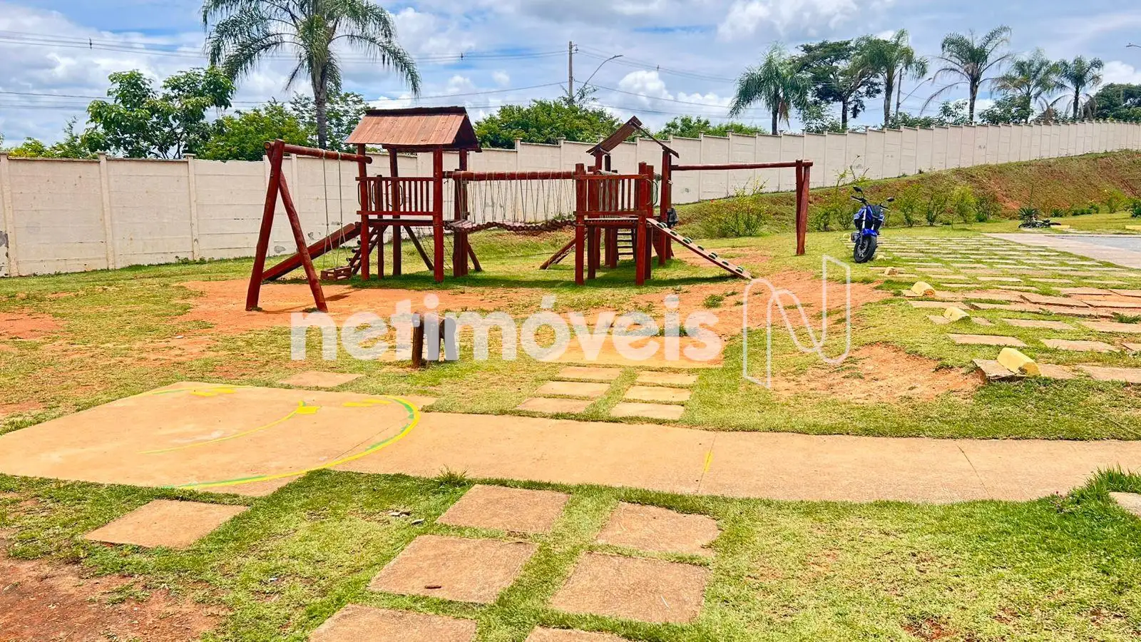 Condomínio fechado com guarita, equipada com equipamento de biometria facial, lazer com churrasqueiras, brinquedos de madeira.