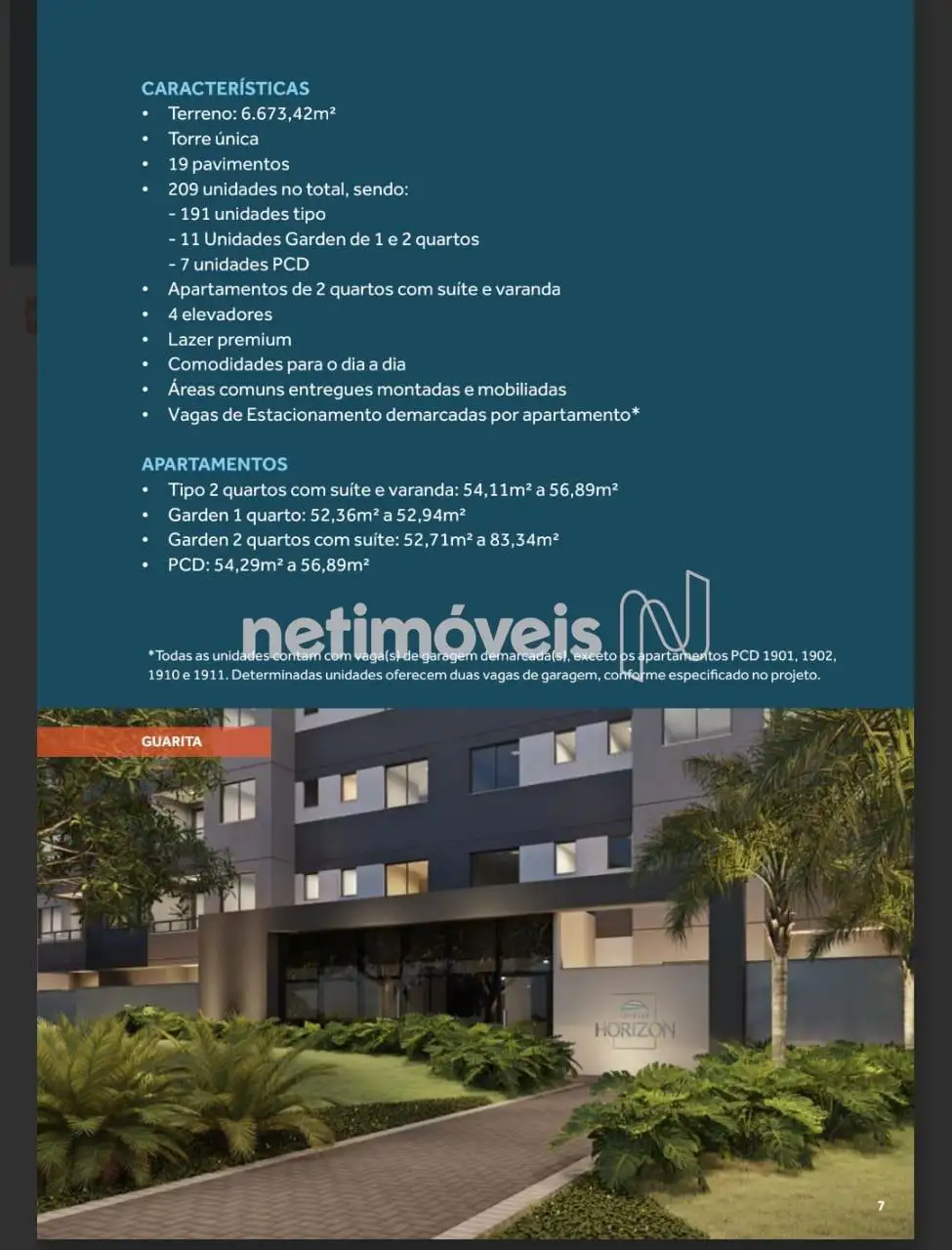 - Área Privativa 1 quarto: de 52,36m² a 83,34m²