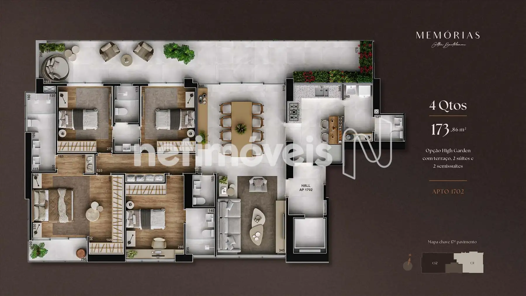 - 3 apartamentos nos 20º ao 22º pavimentos
