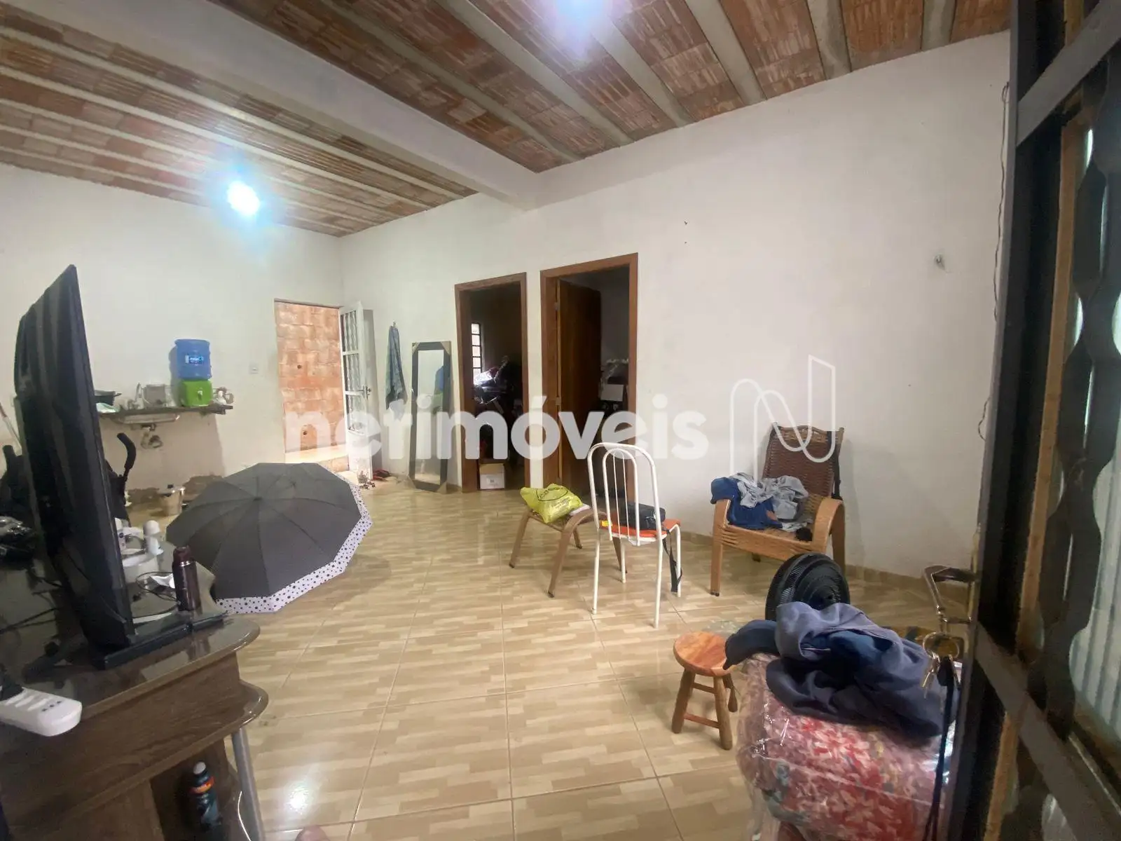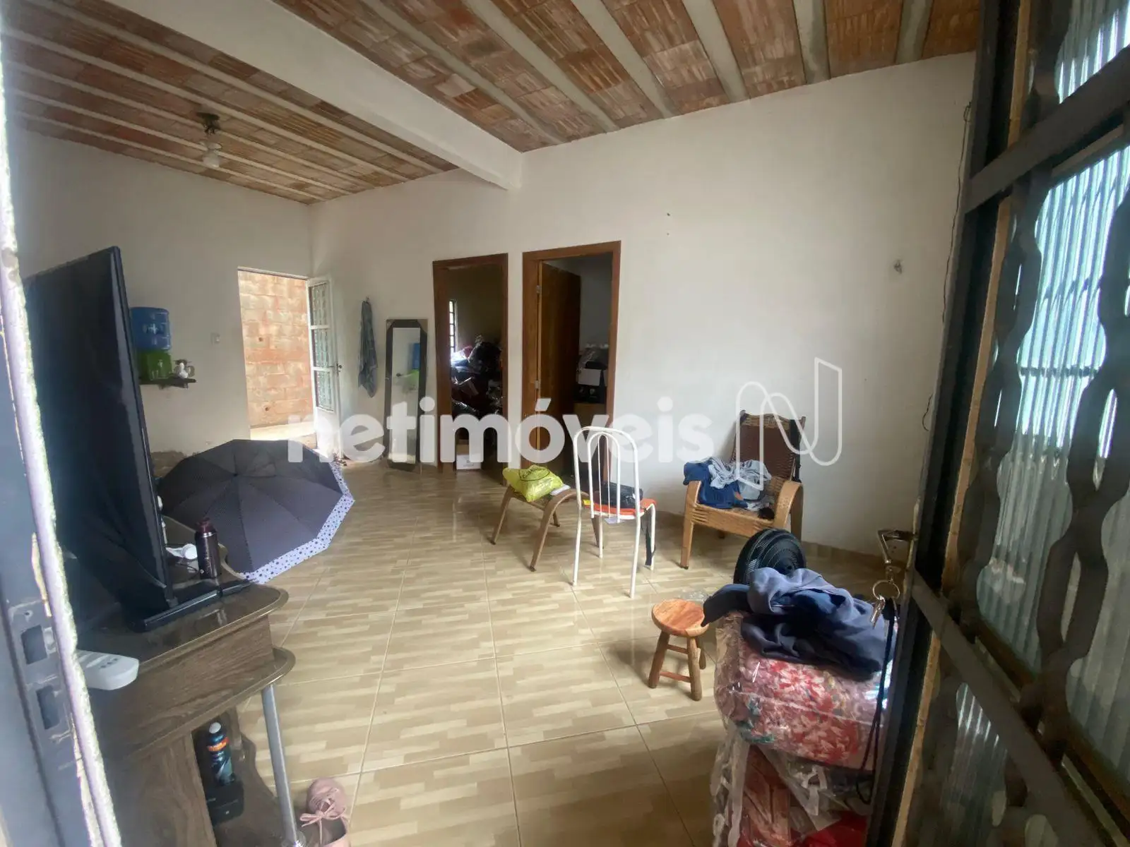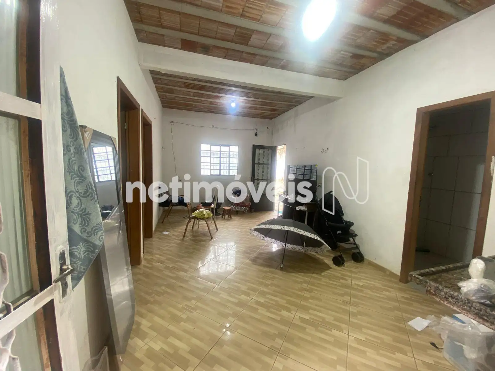 A casa térrea possui sala conjugada com a cozinha, 2 quartos, banheiro social e área de serviço, com piso em cerâmica.