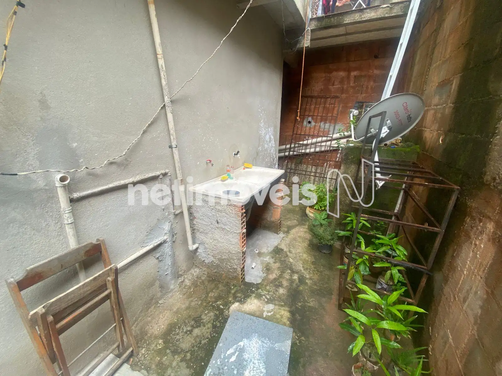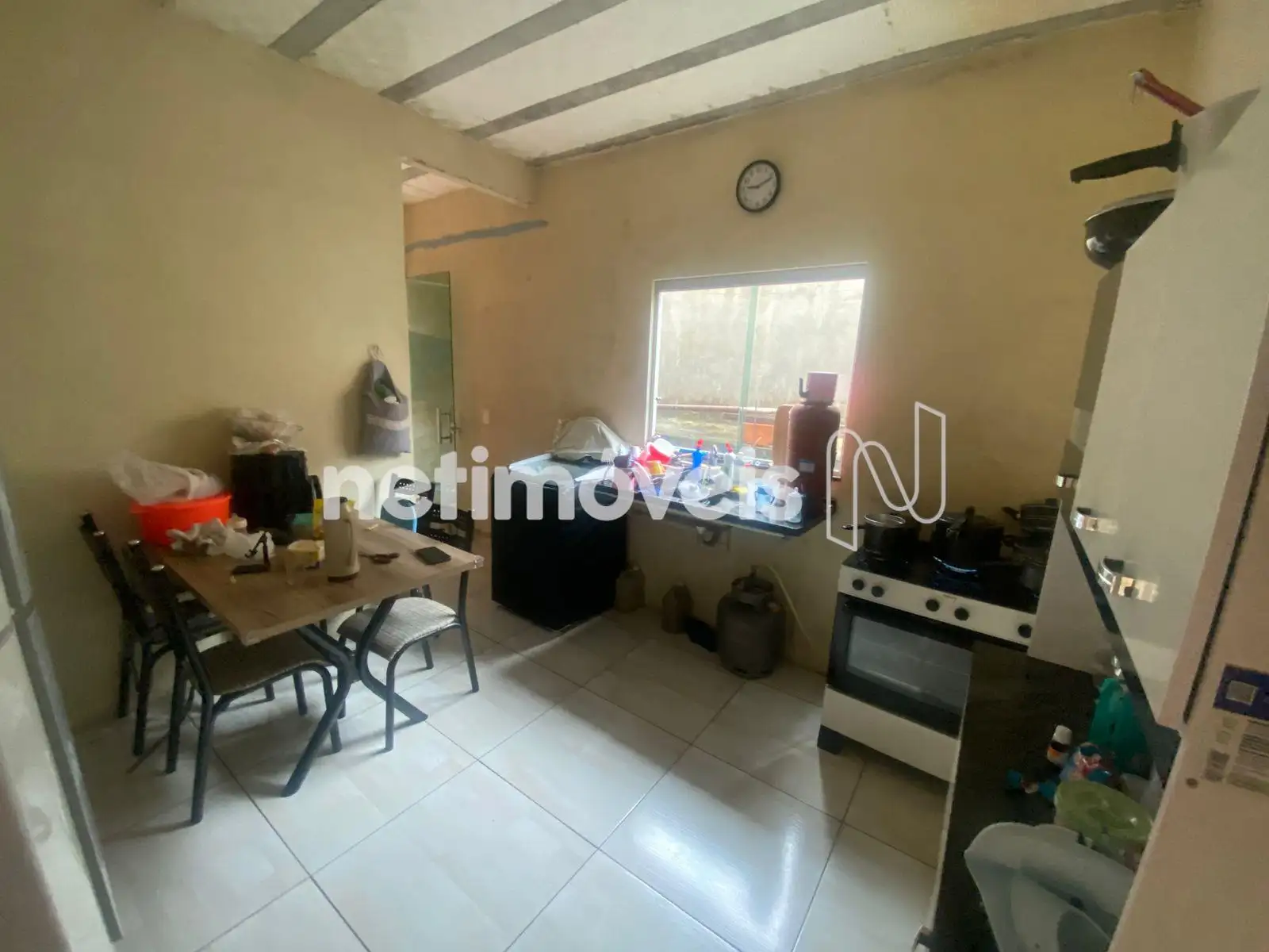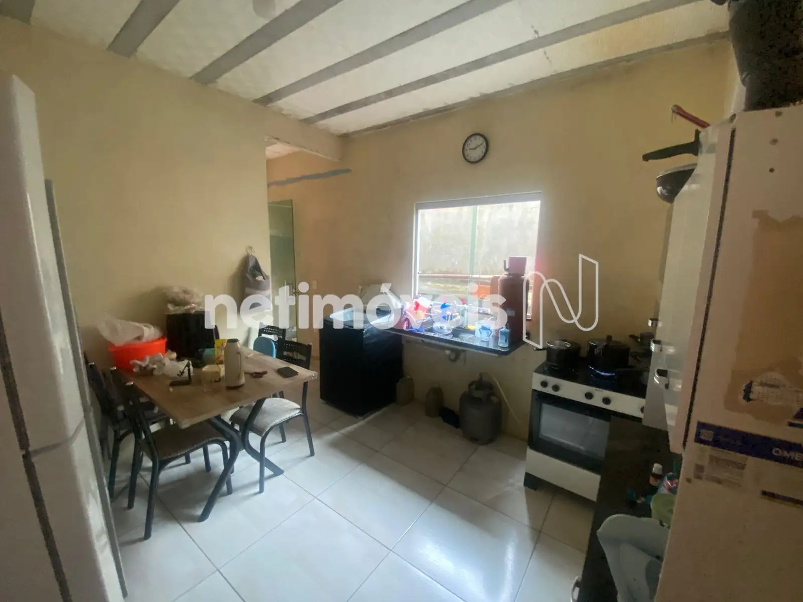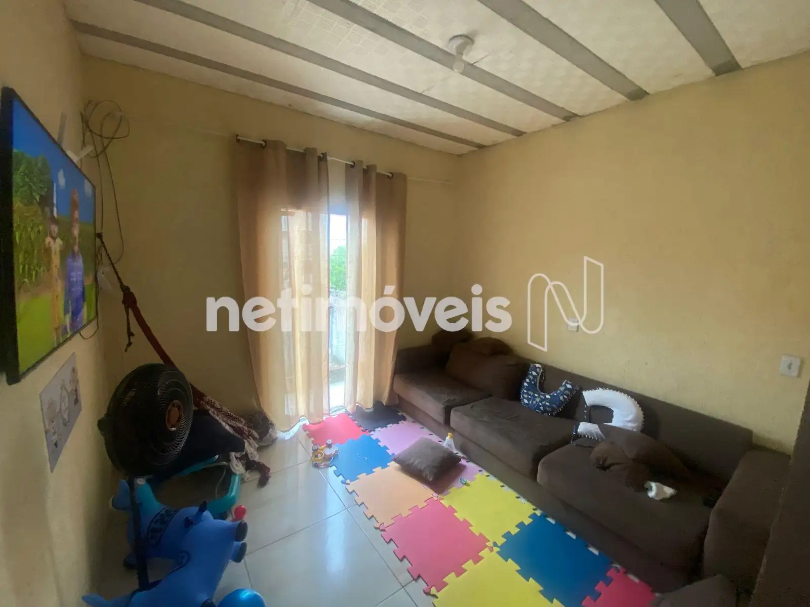 A casa térrea possui sala conjugada com a cozinha, 2 quartos, banheiro social e área de serviço, com piso em cerâmica.