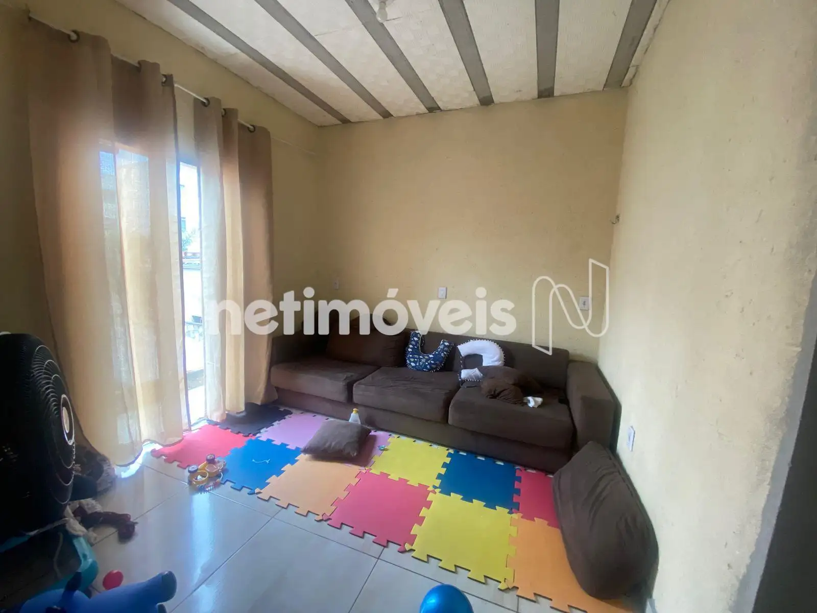 A casa no 2º piso é composta por sala, cozinha, 2 quartos, banheiro social e área de serviço, também com piso em cerâmica, bem distribuída e funcional.