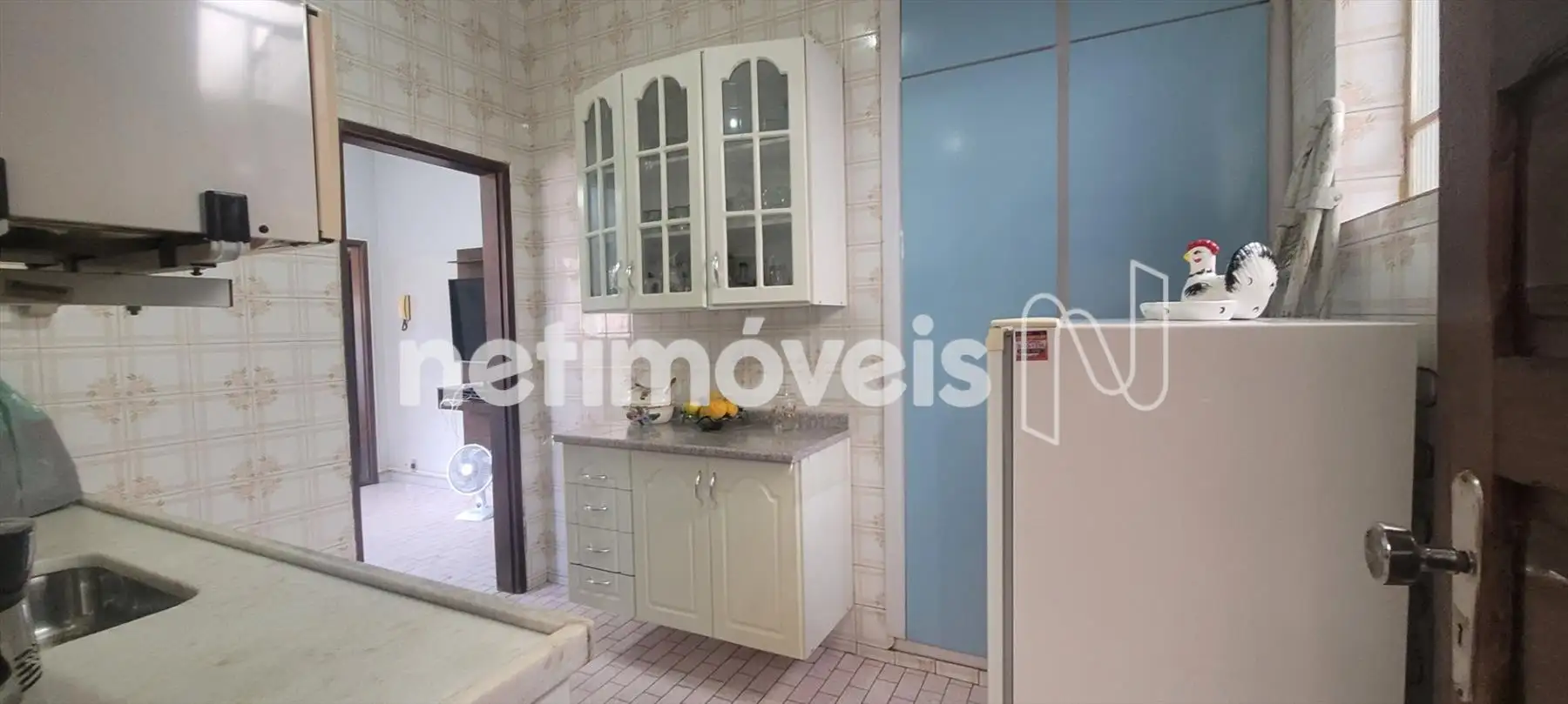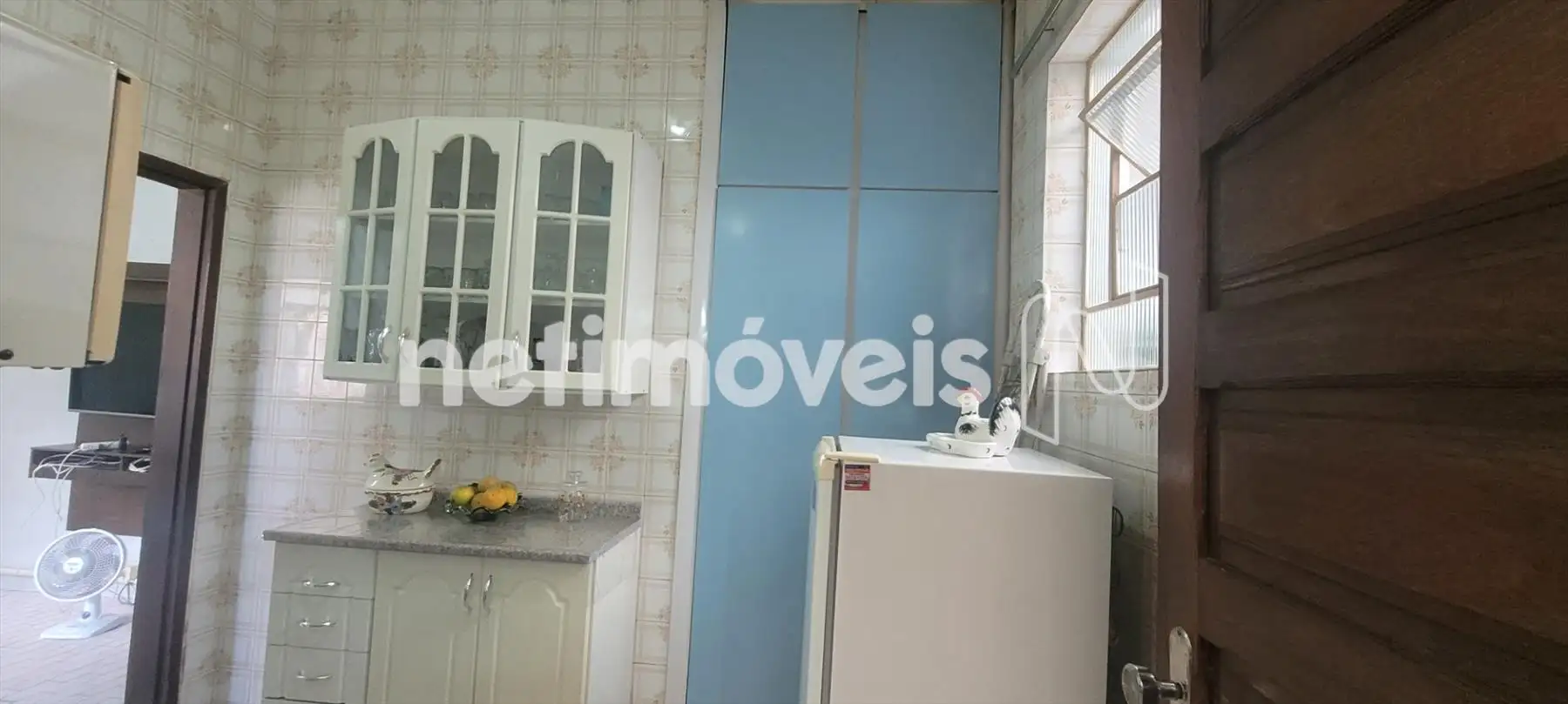 Cozinha bem ampla com piso em Cerâmica bancada em Mármore com armários.