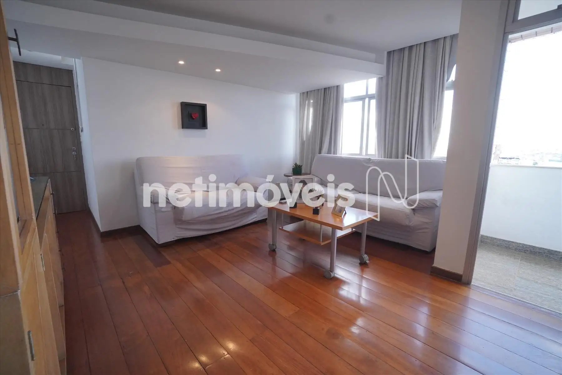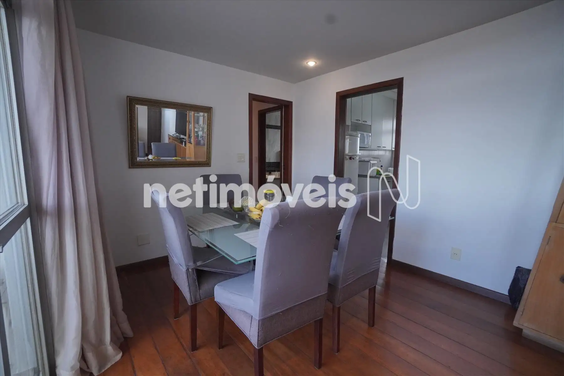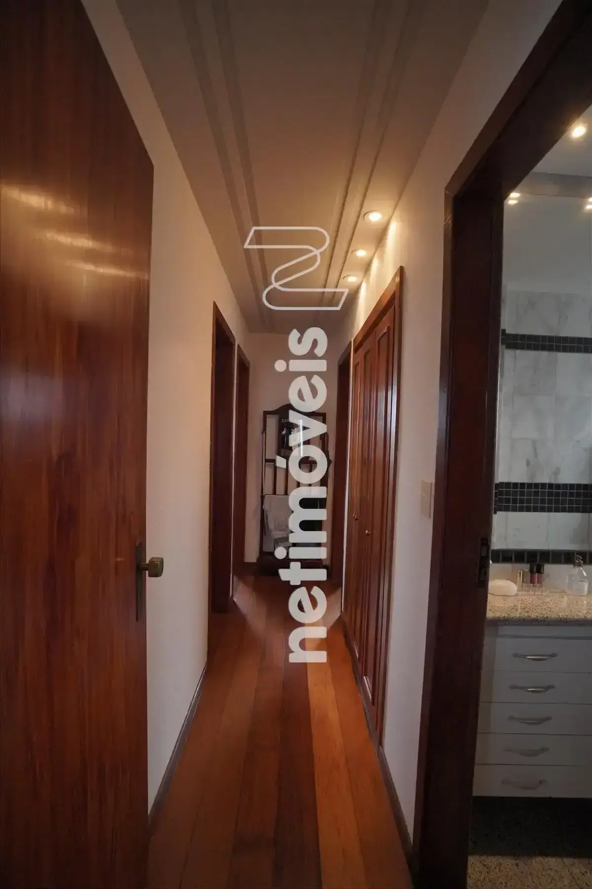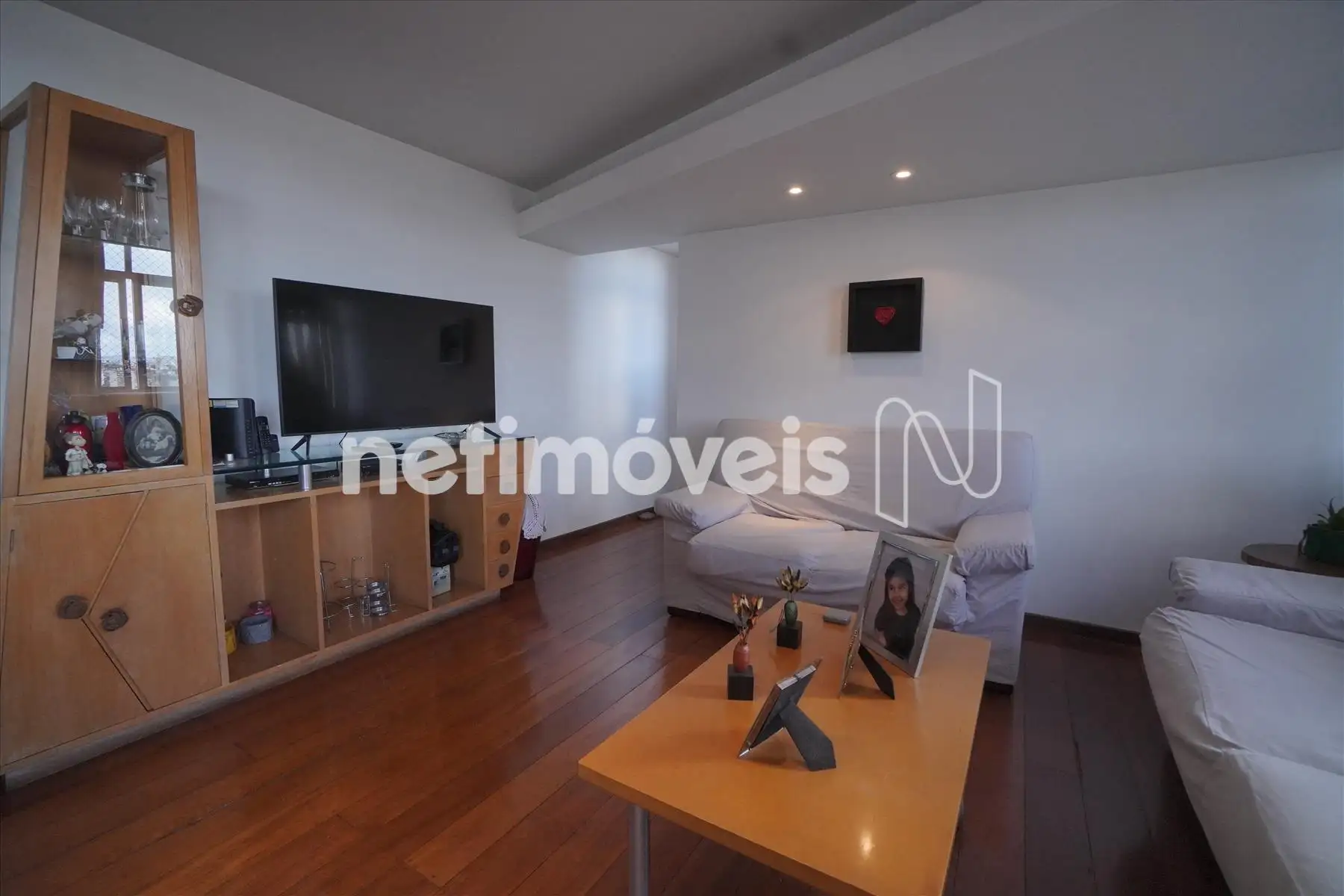 imóvel possui teto rebaixado, iluminação embutida e cortinas.