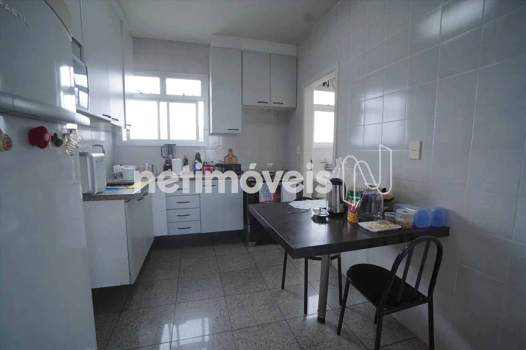 Sala ampla com 03 (três) ambientes e varanda; cozinha possui armários e bancada de granito; possui dependência completa de empregada;
