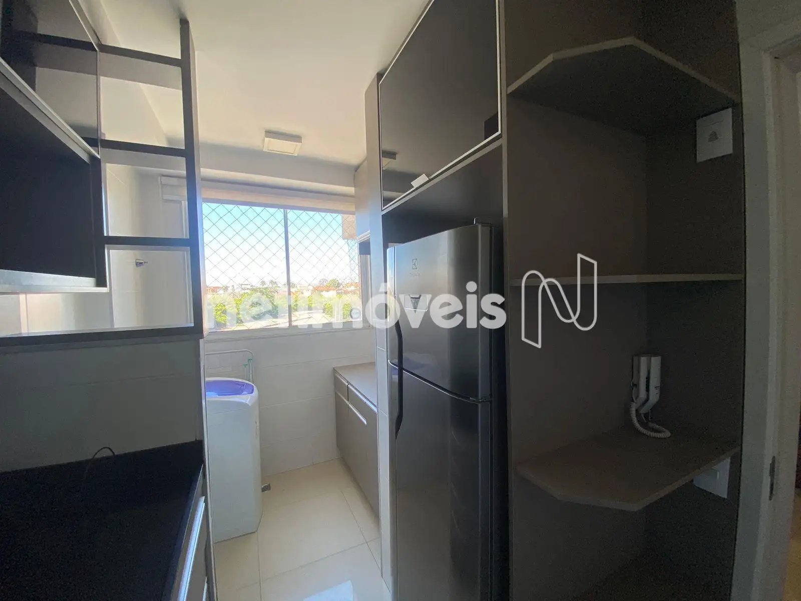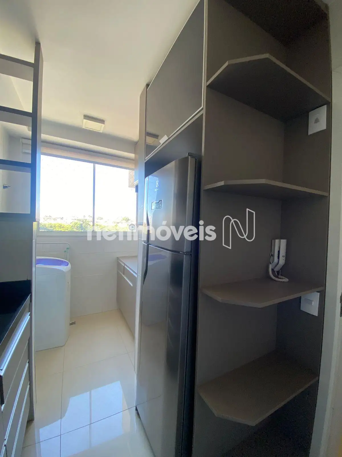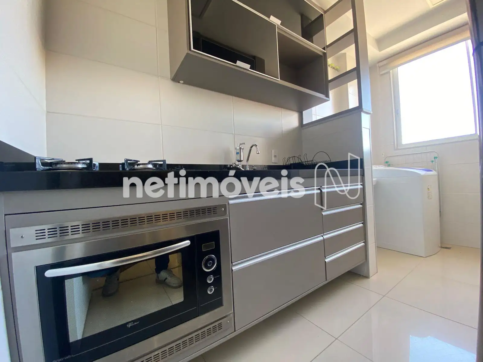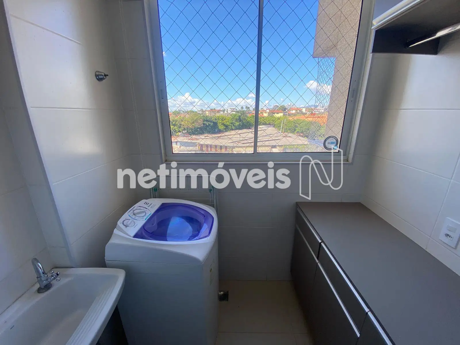 • Área de serviço com armários e máquina de lavar