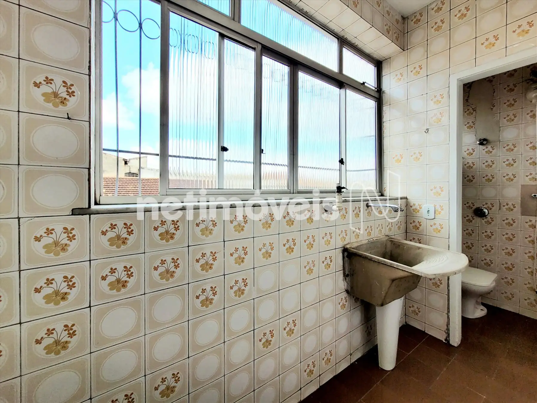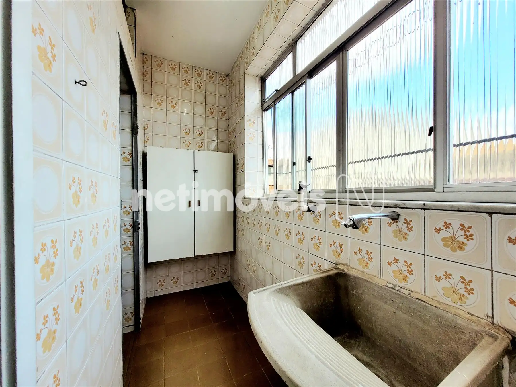 DCE: lavanderia + banheiro com pisos em cerâmica + quarto com piso em laminado vinílico.