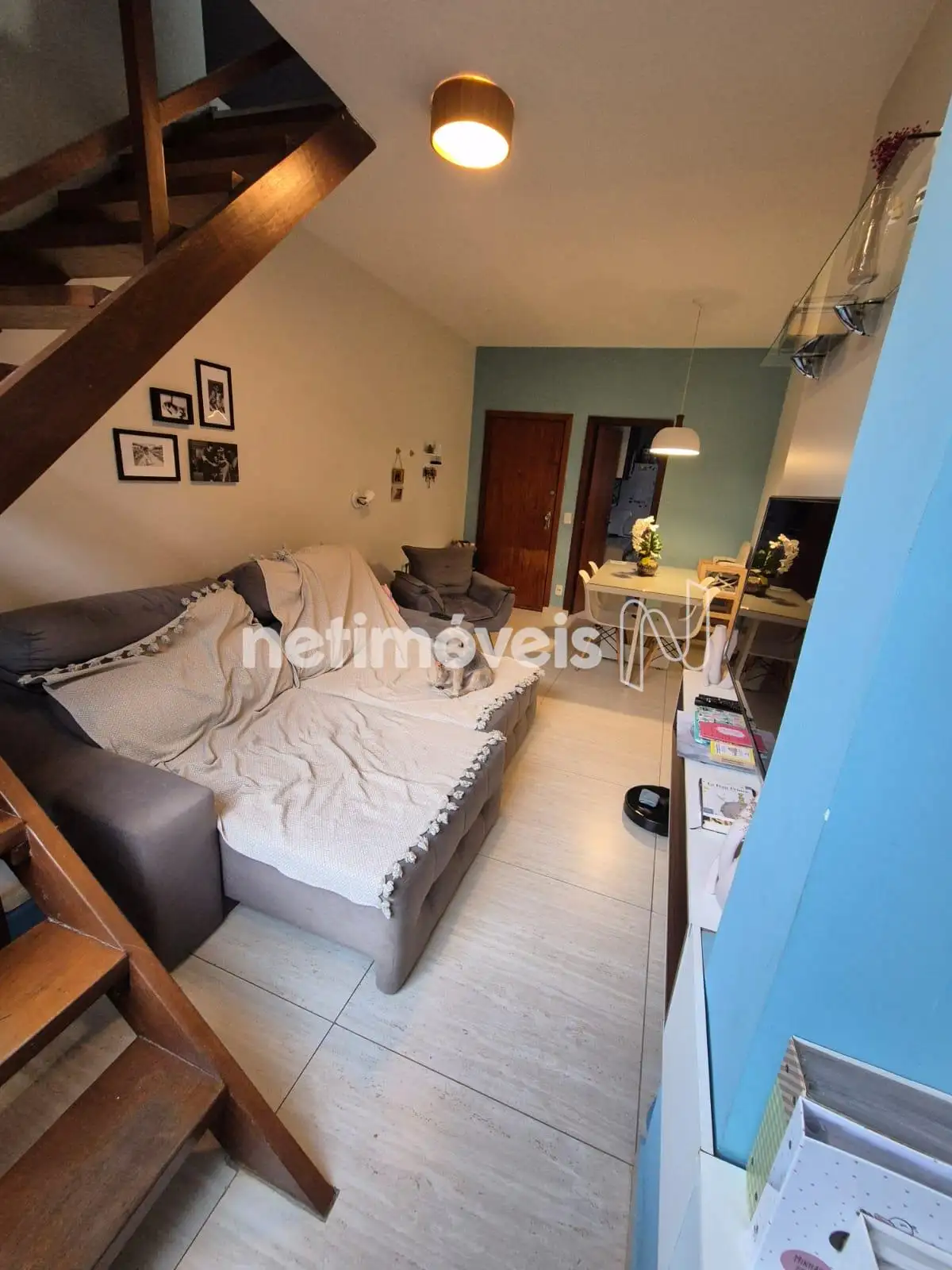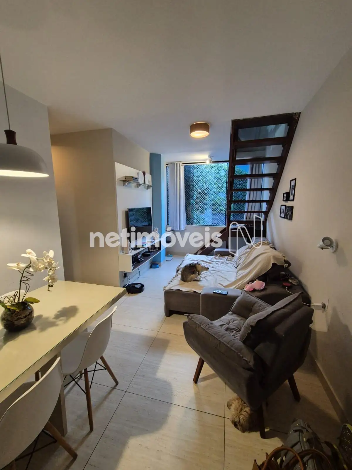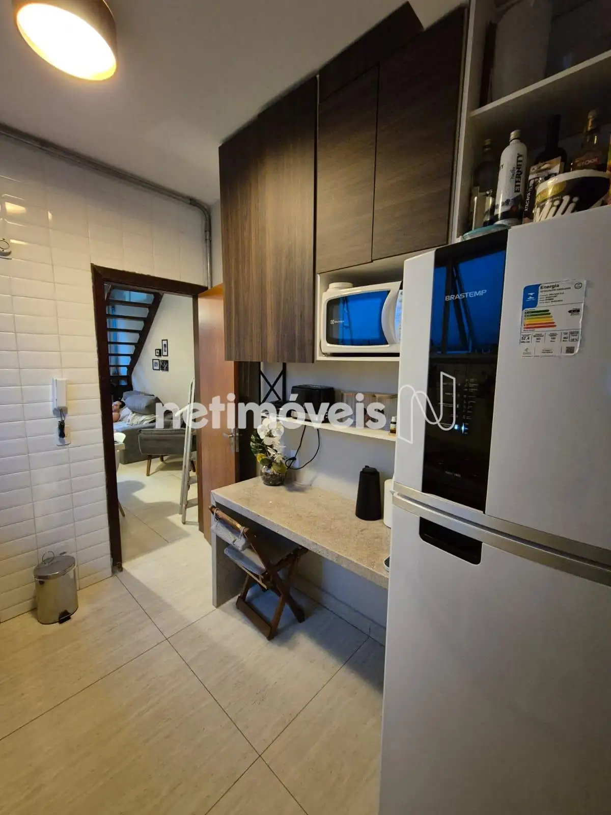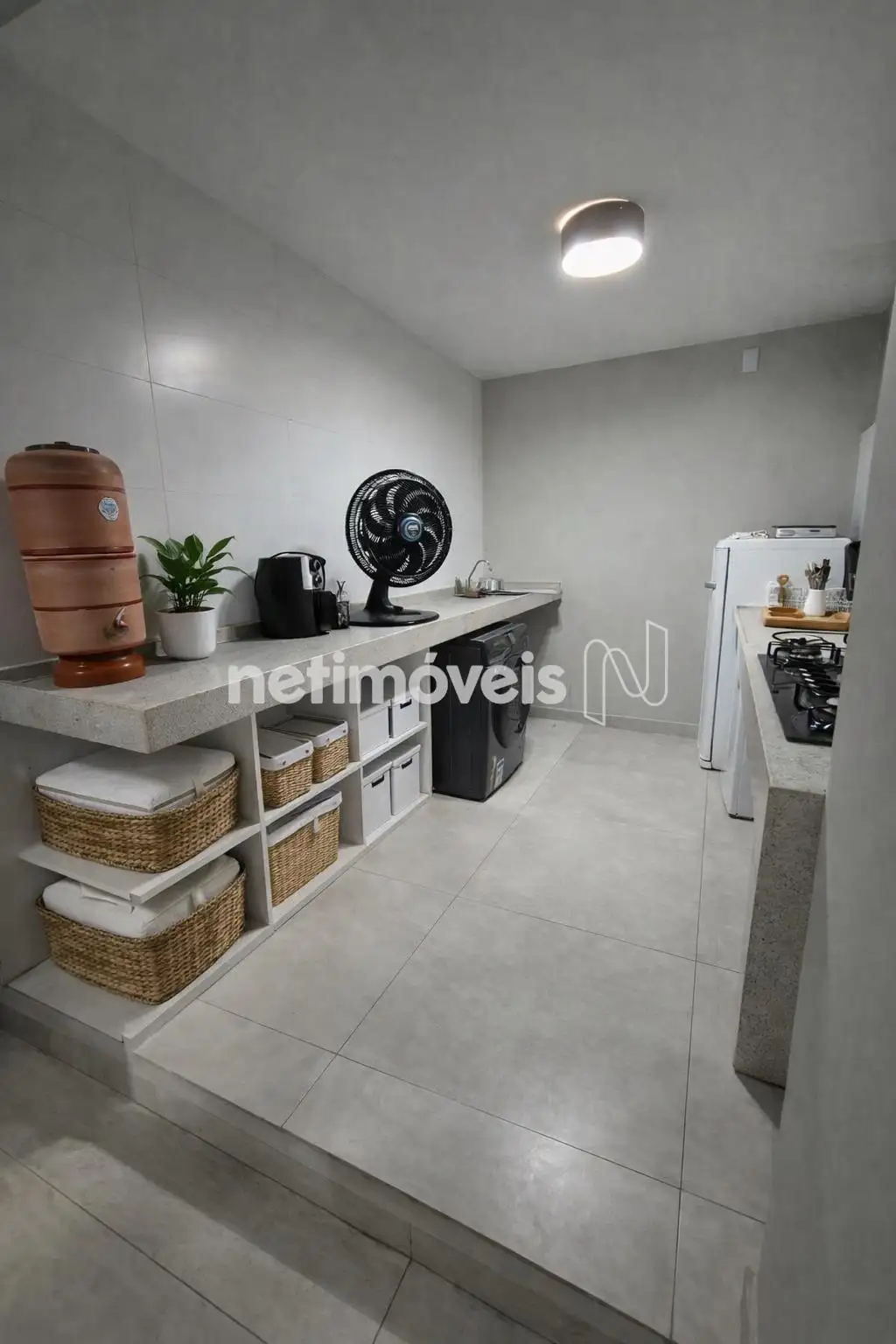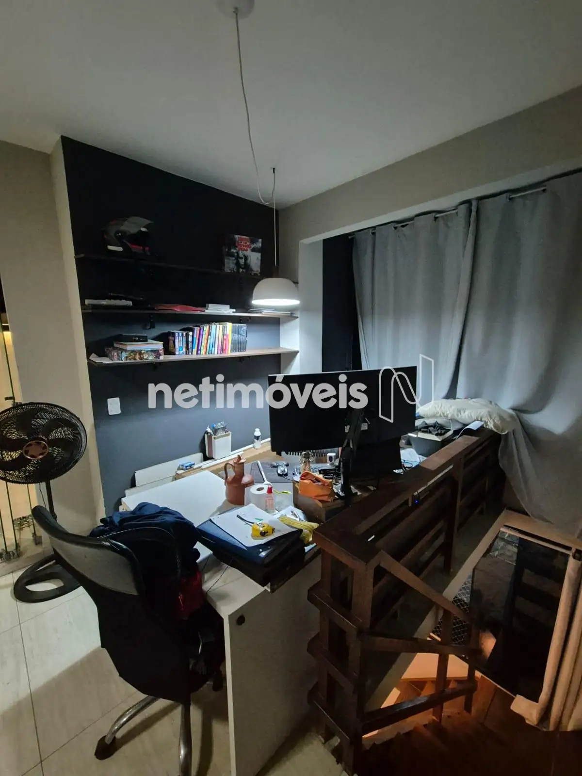 Apartamento 2 º nível: 01 sala para 02 ambientes (atualmente usada como escritório), cozinha com cooktop conjugada com área de serviço ampla, 01 banheiro e área externa parcialmente coberta com churrasqueira.