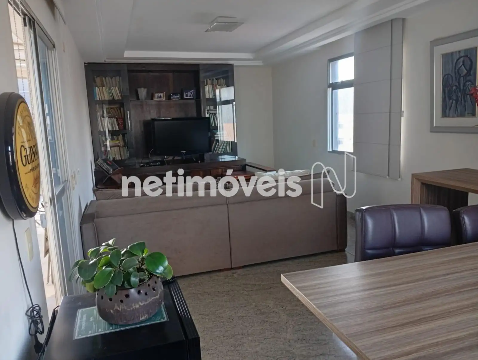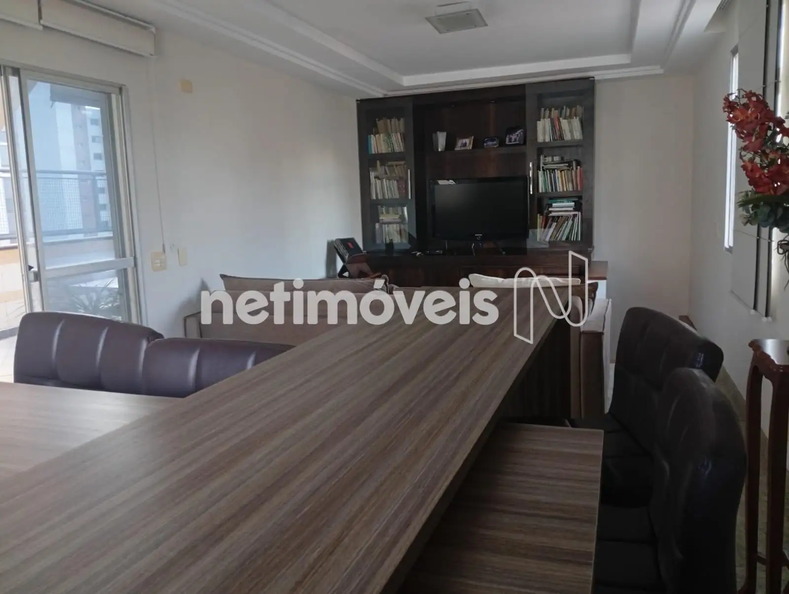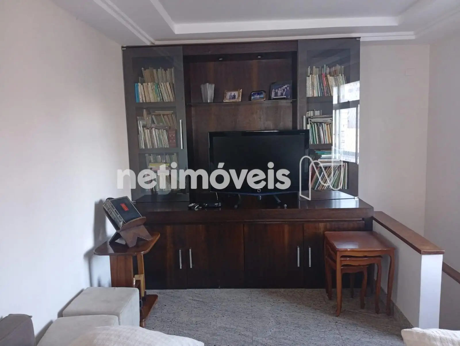 - Sala para 2 ambientes, com móvel para TV e biblioteca;
