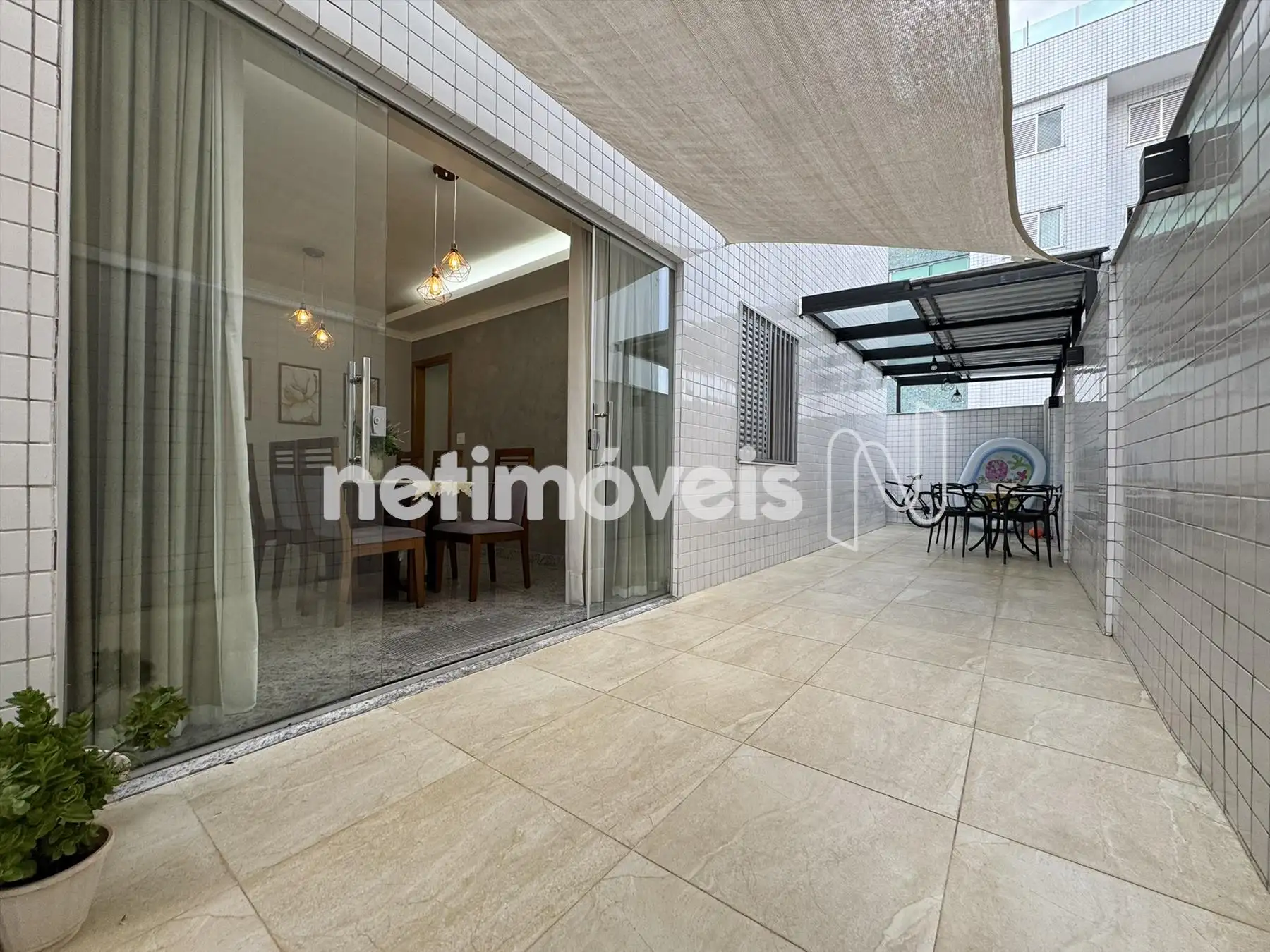 Área privativa com entrada pelas duas laterais do apartamento, pela cozinha e pela sala. Piso em porcelanato.