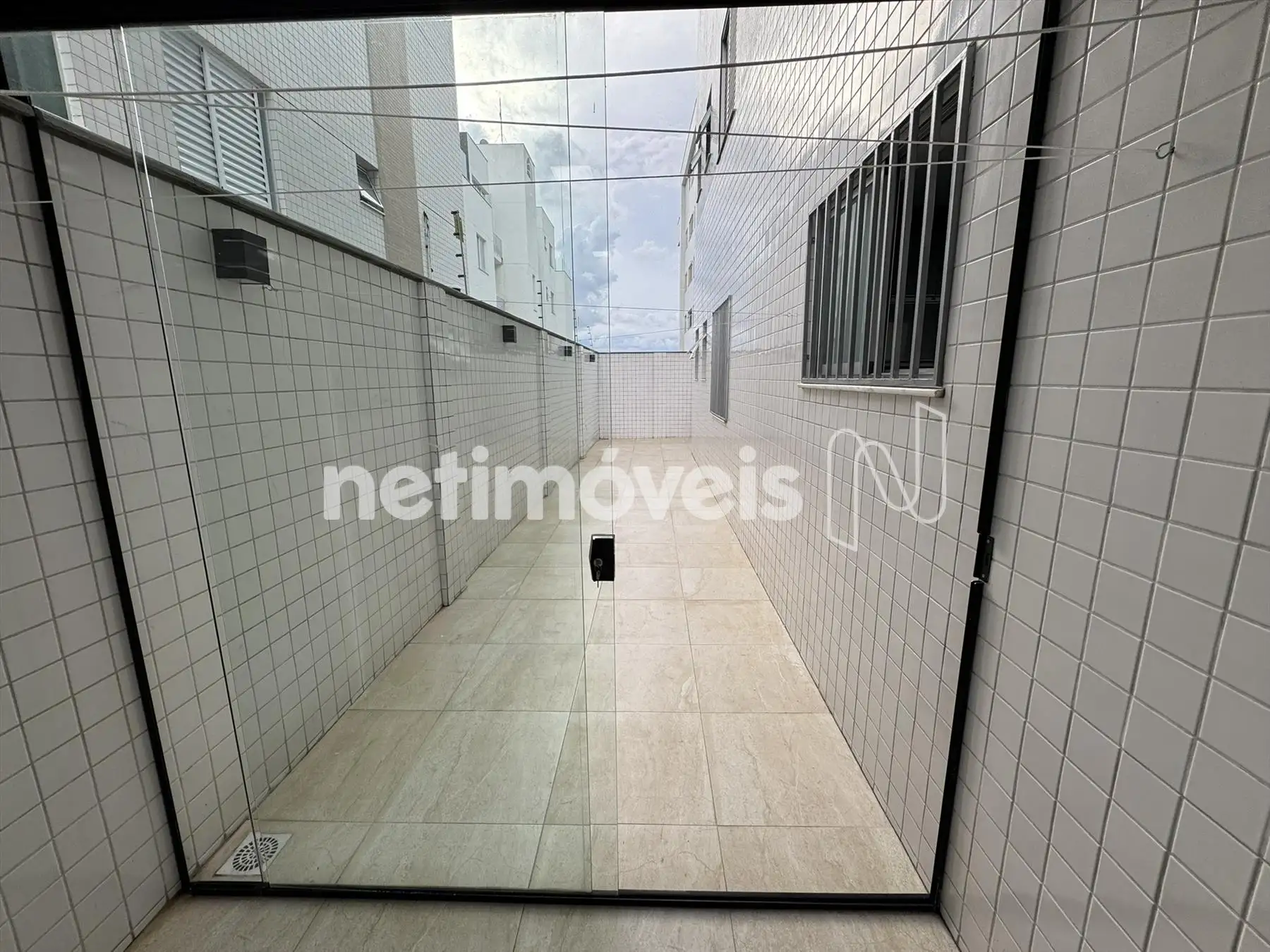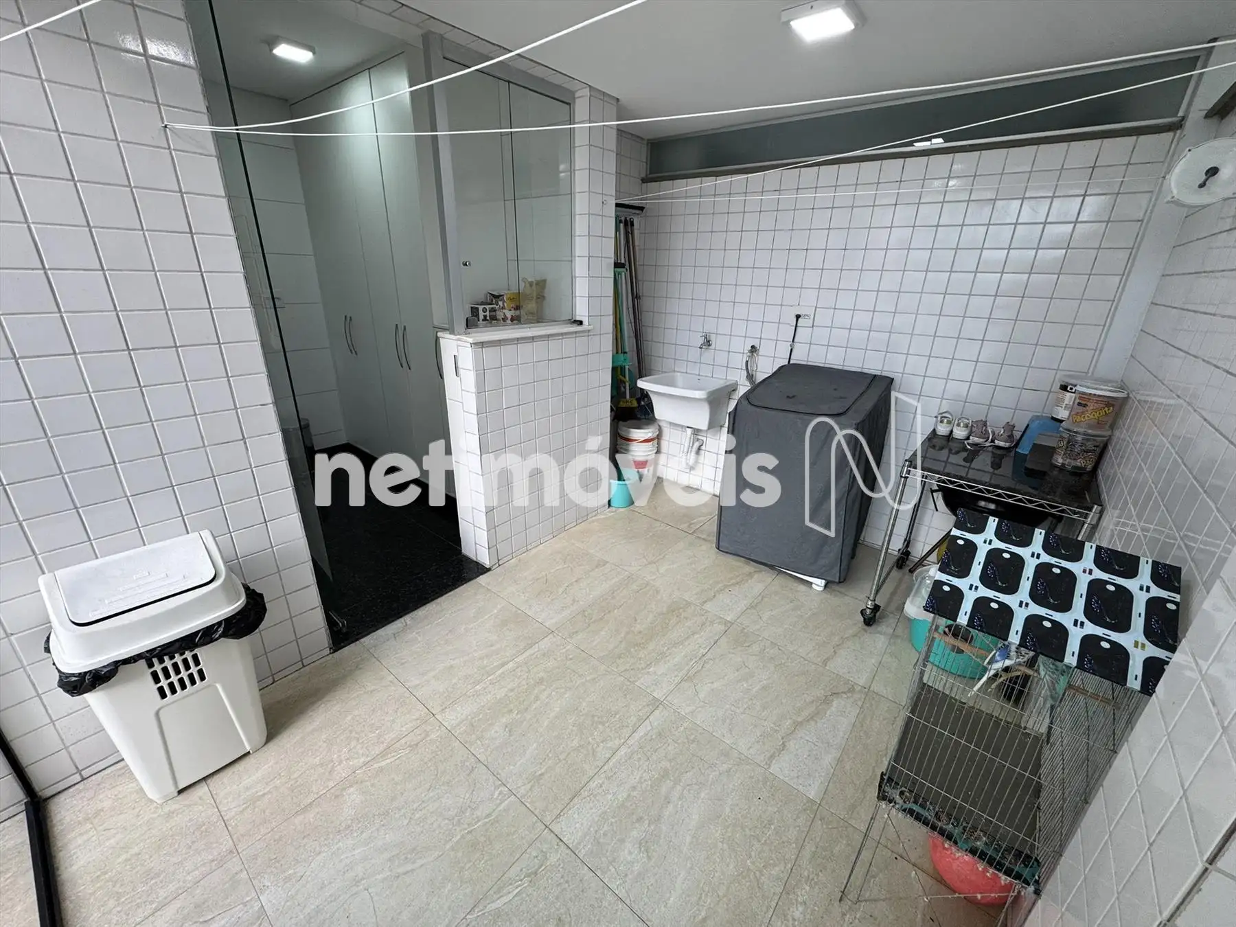 Lavanderia e área privativa com piso em porcelanato fosco.