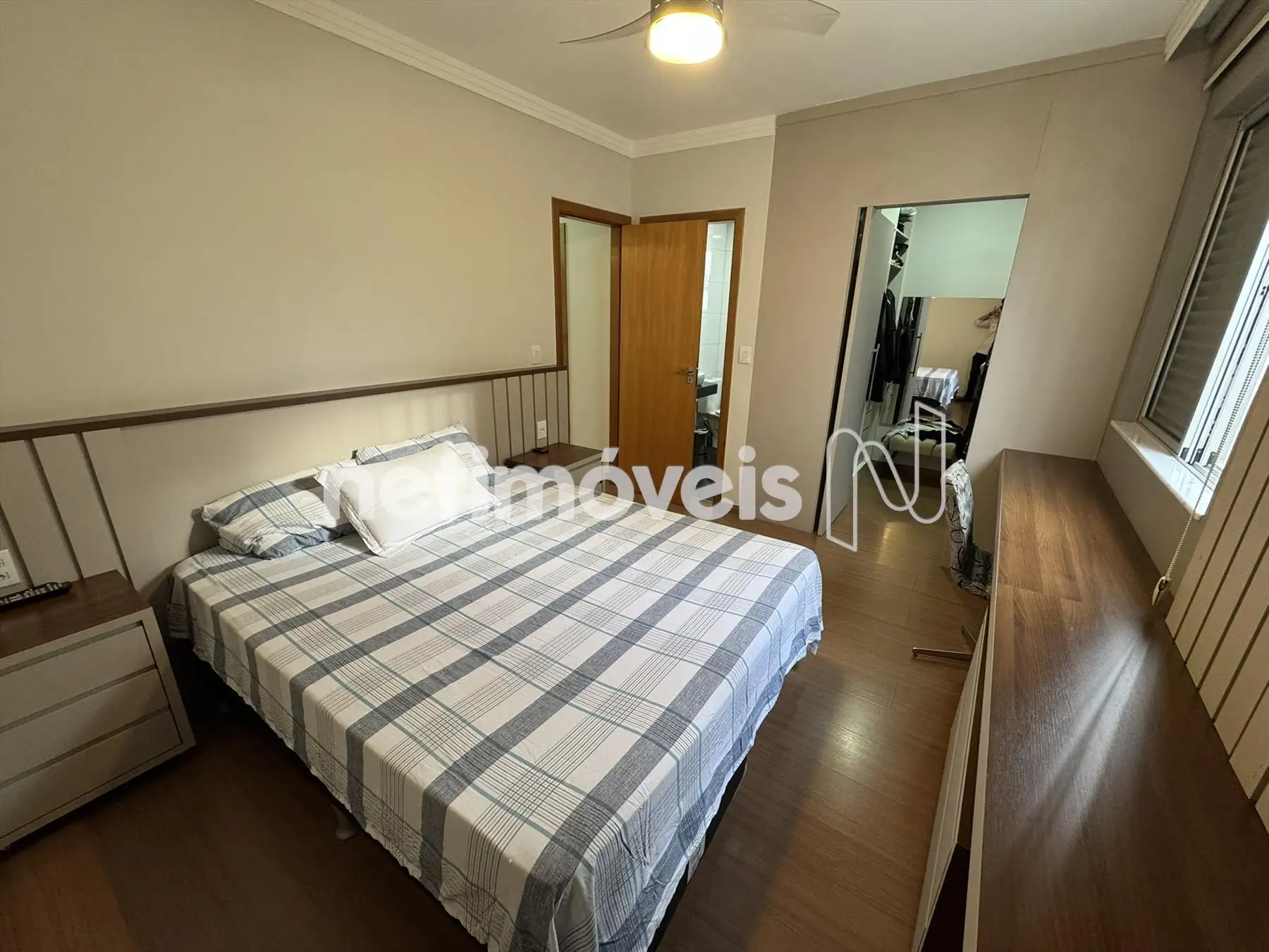03 quartos com armários, piso em laminado, sendo 01 suíte, e um closet.