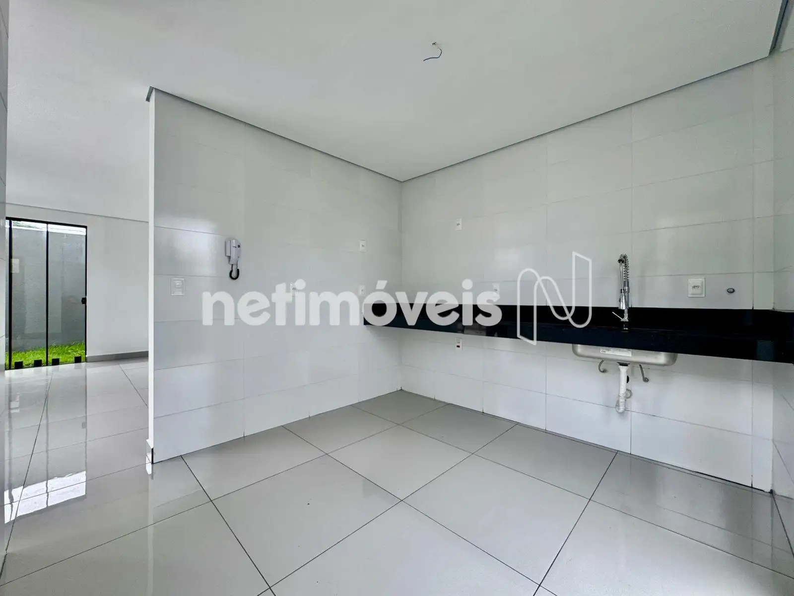 Cozinha com bancada em granito e piso em porcelanato;
