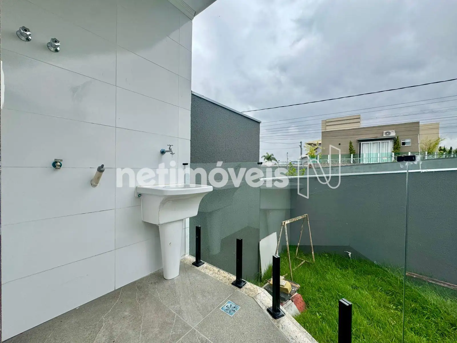 Área de serviço coberta, com bancada em granito;