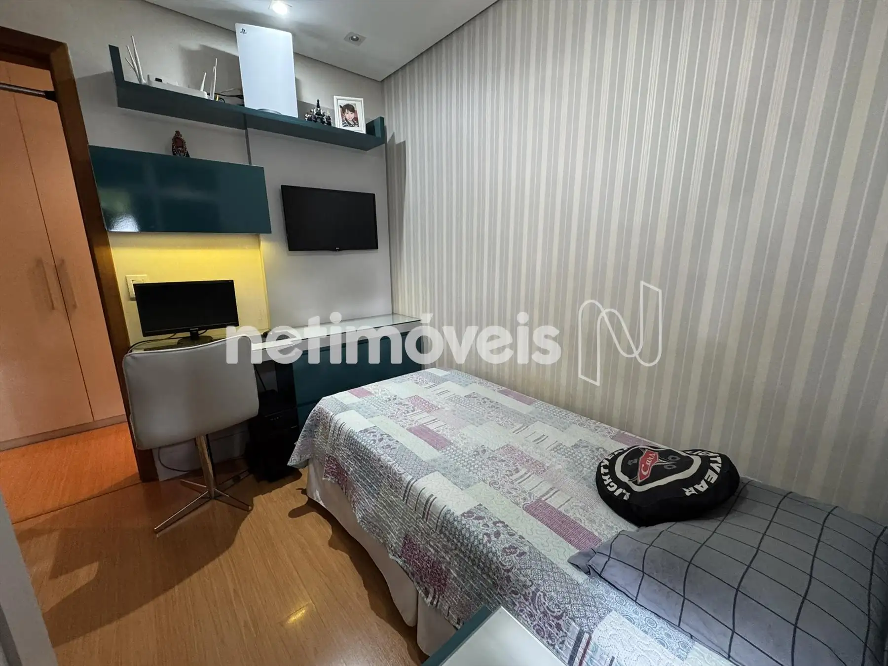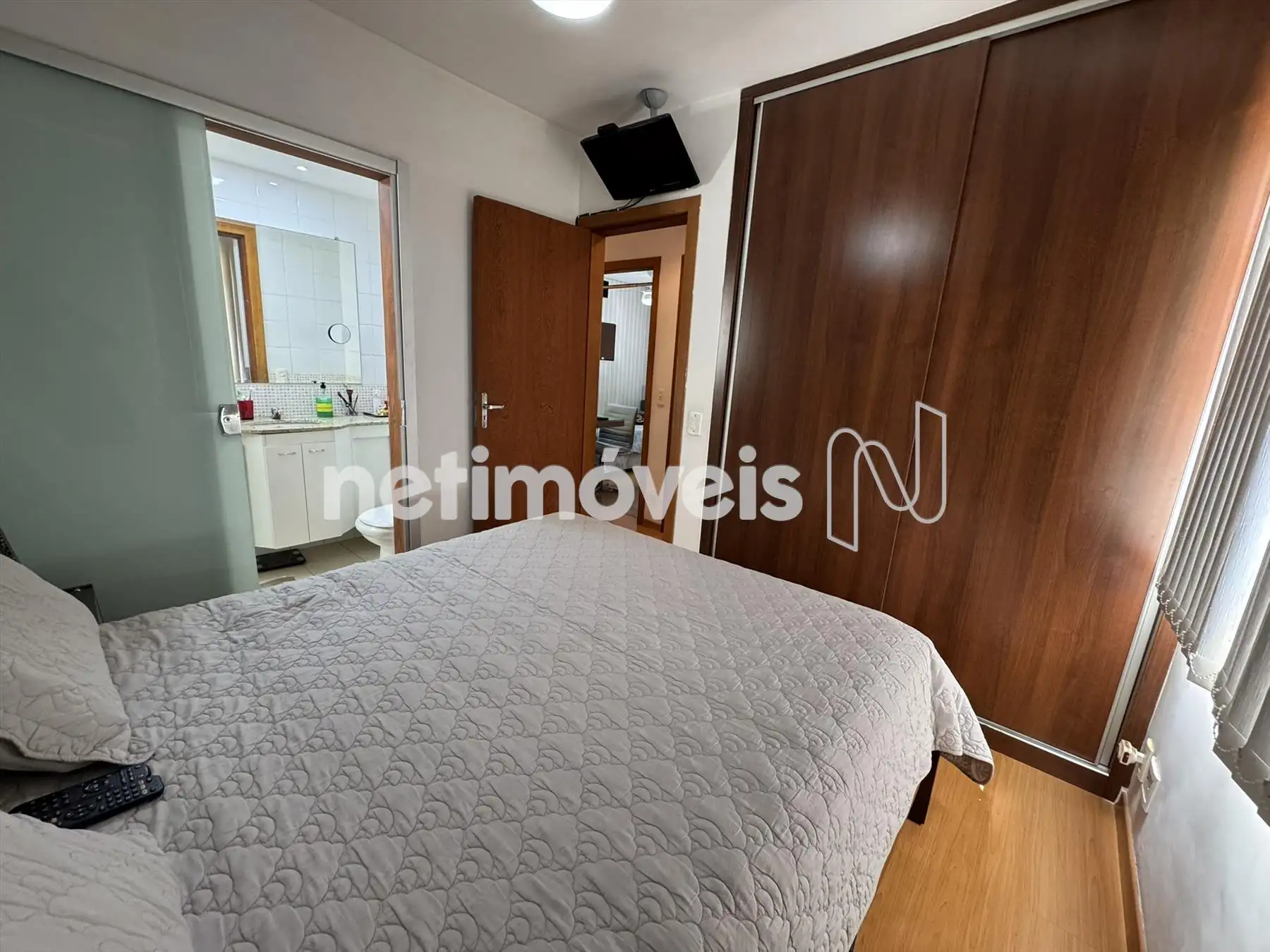 03 quartos com armários, piso em laminado, sendo 01 suíte.
